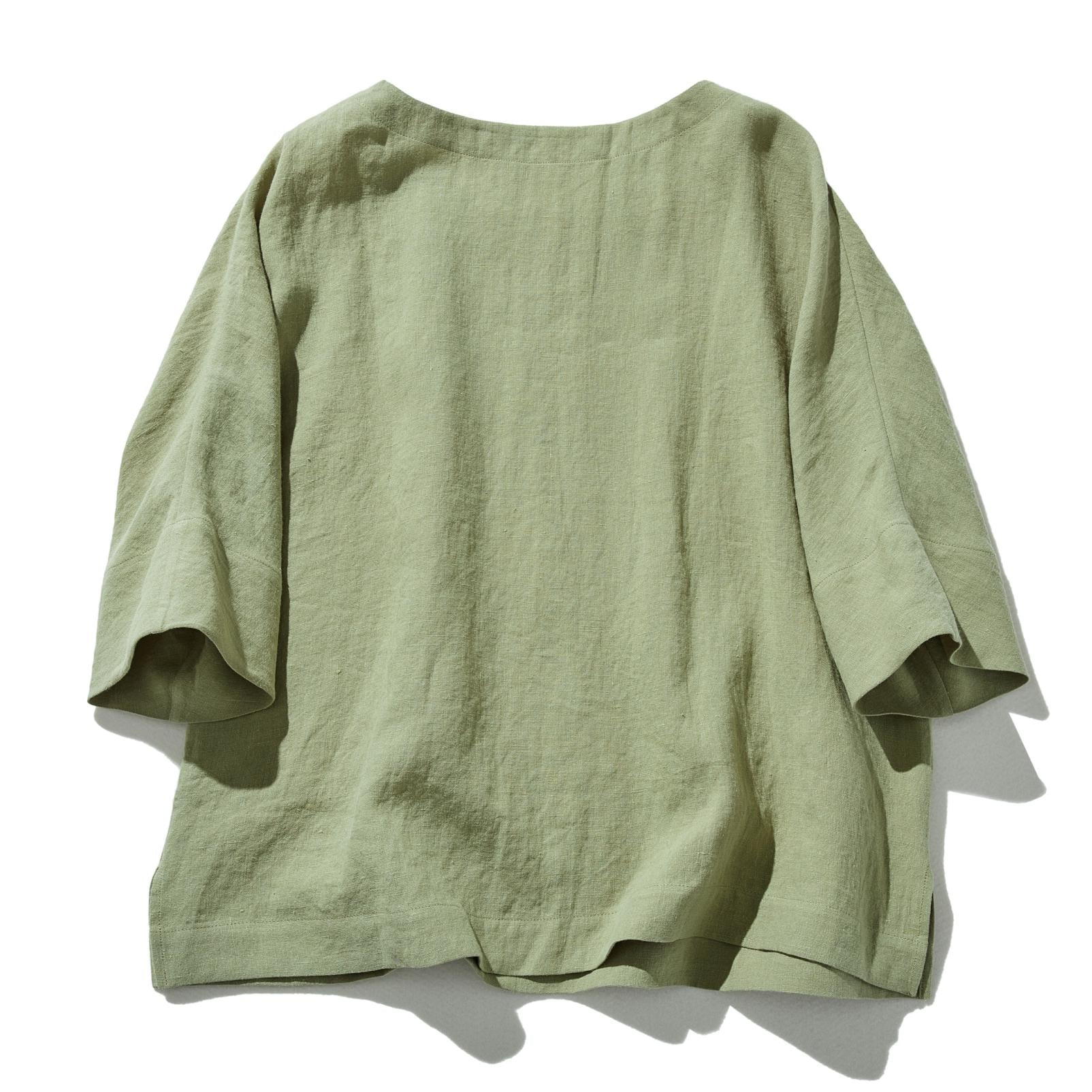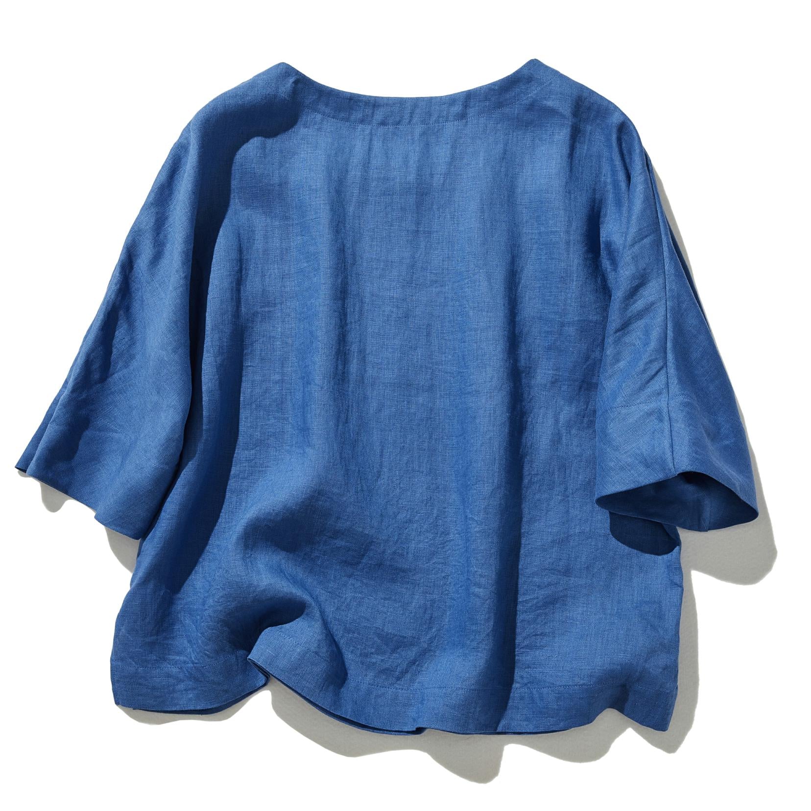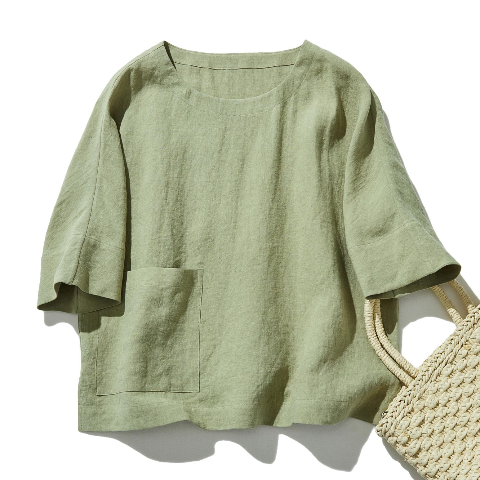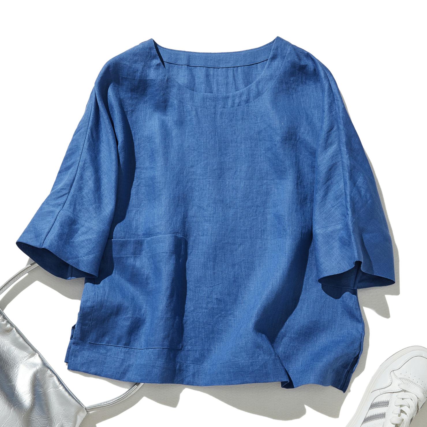 ゆるっと差の付くリネントップス 五分袖ブラウス  230402