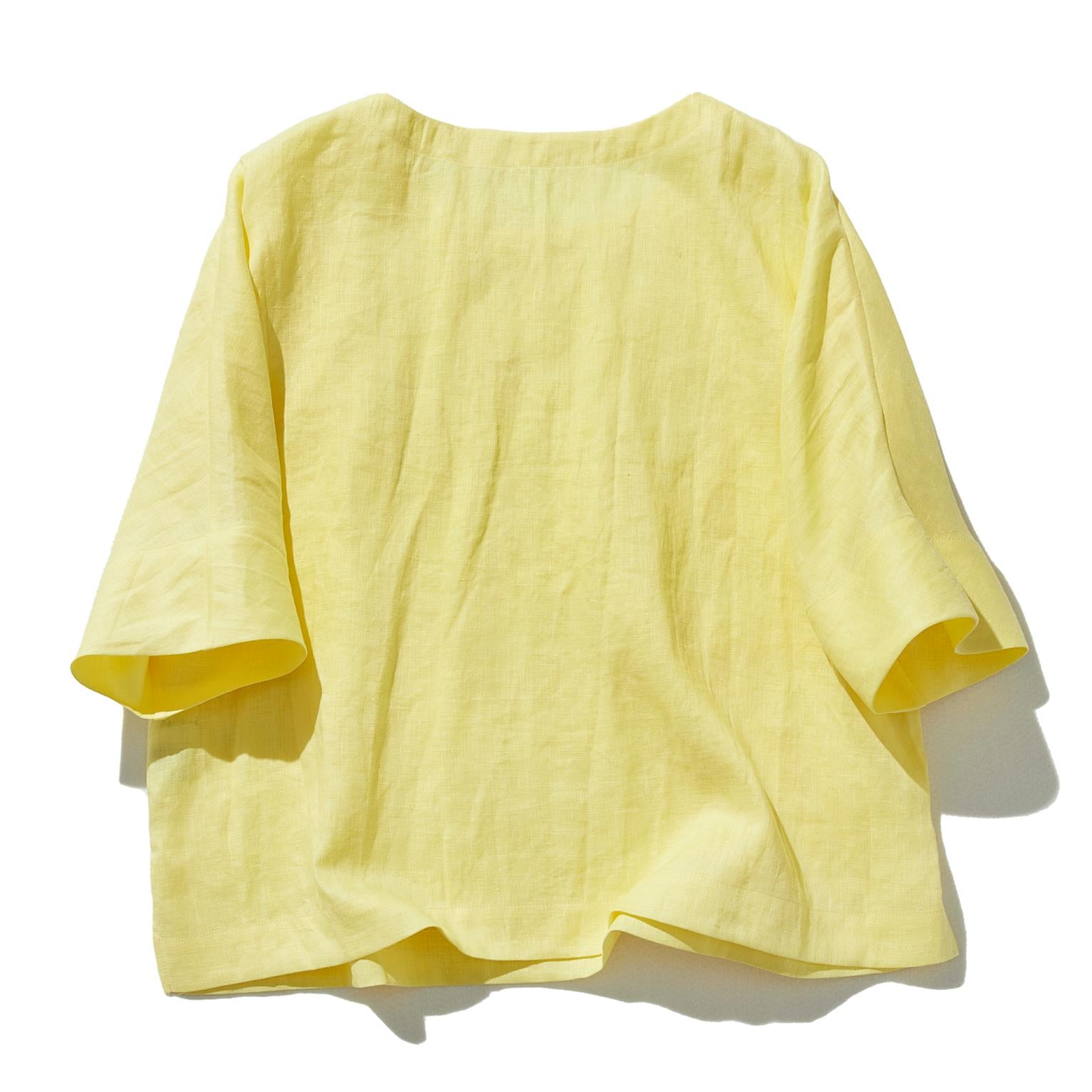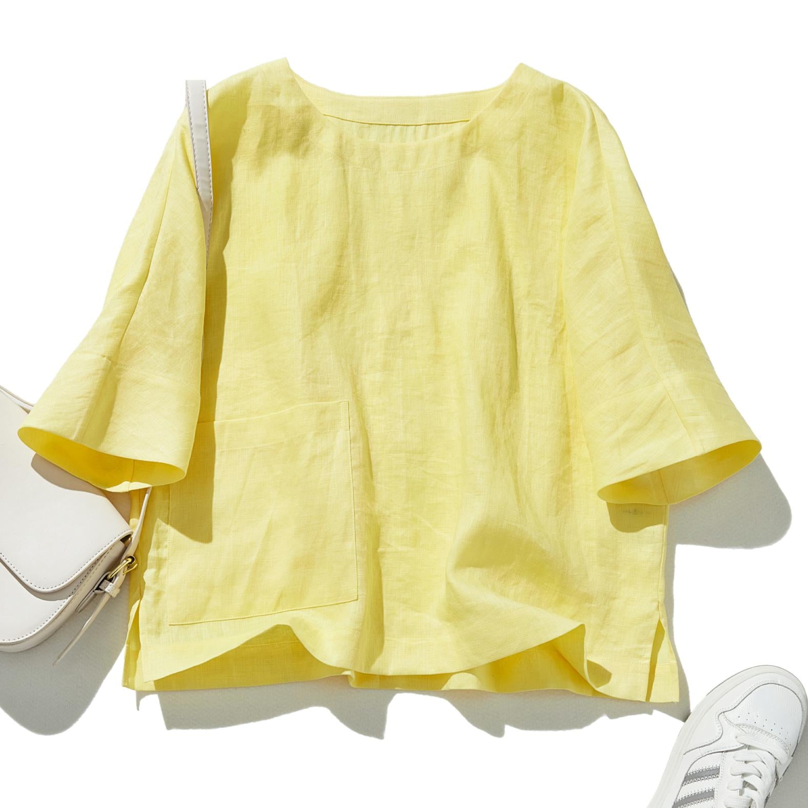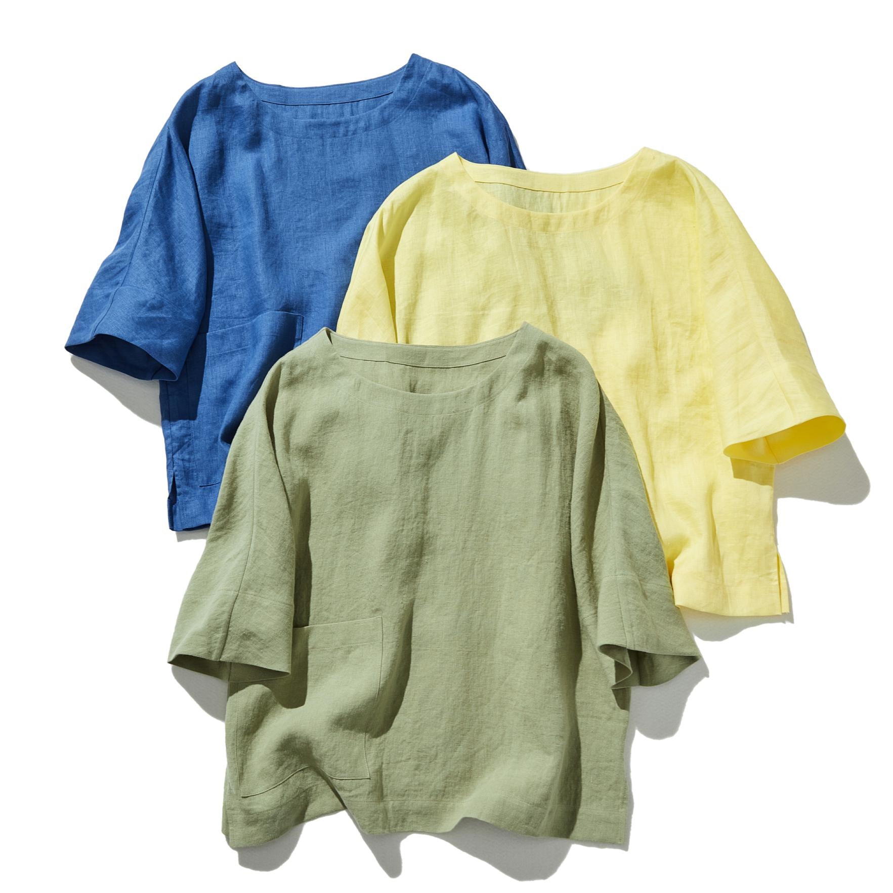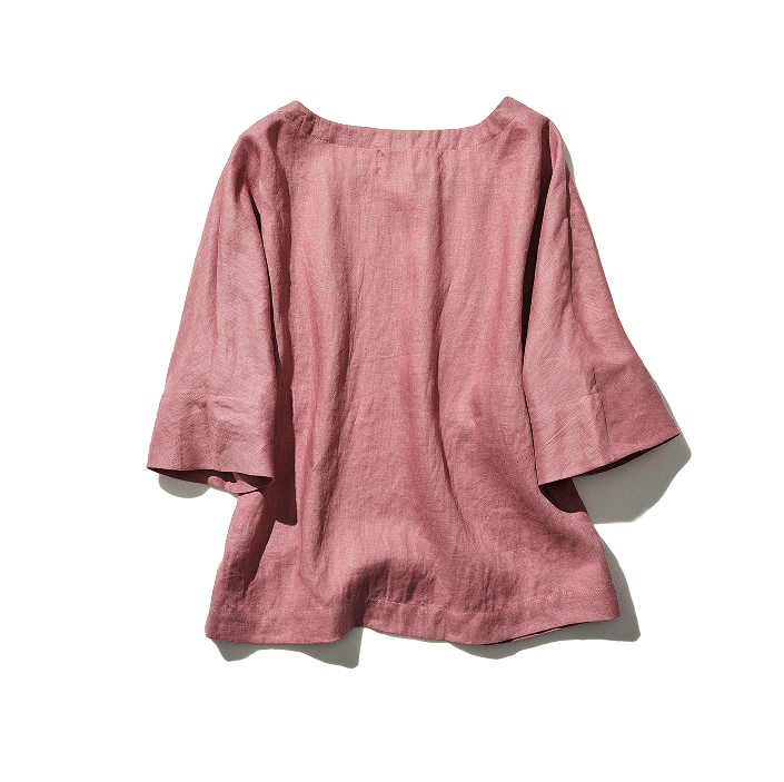 ゆるっと差の付くリネントップス 五分袖ブラウス  230402