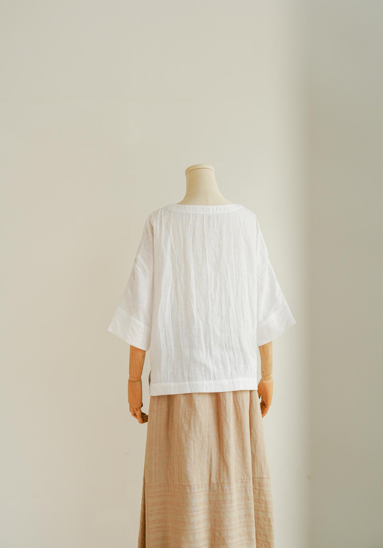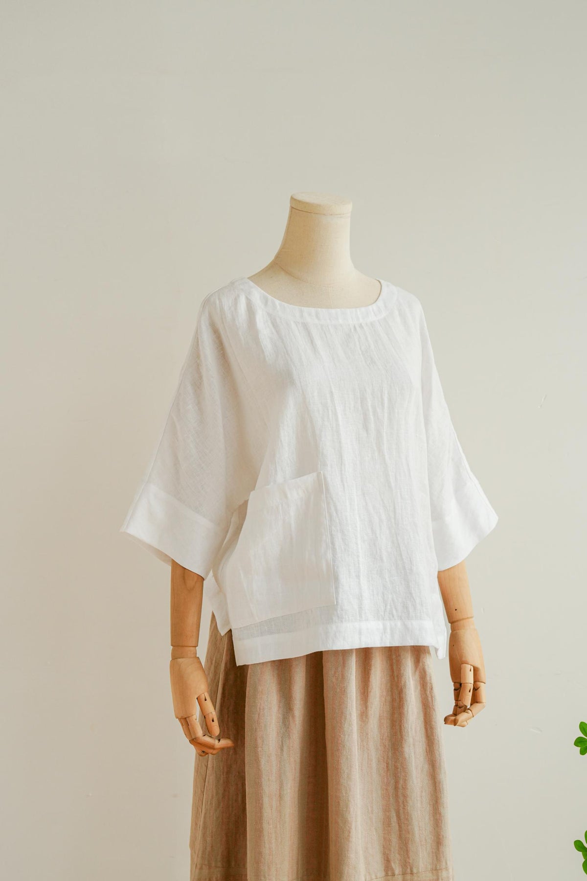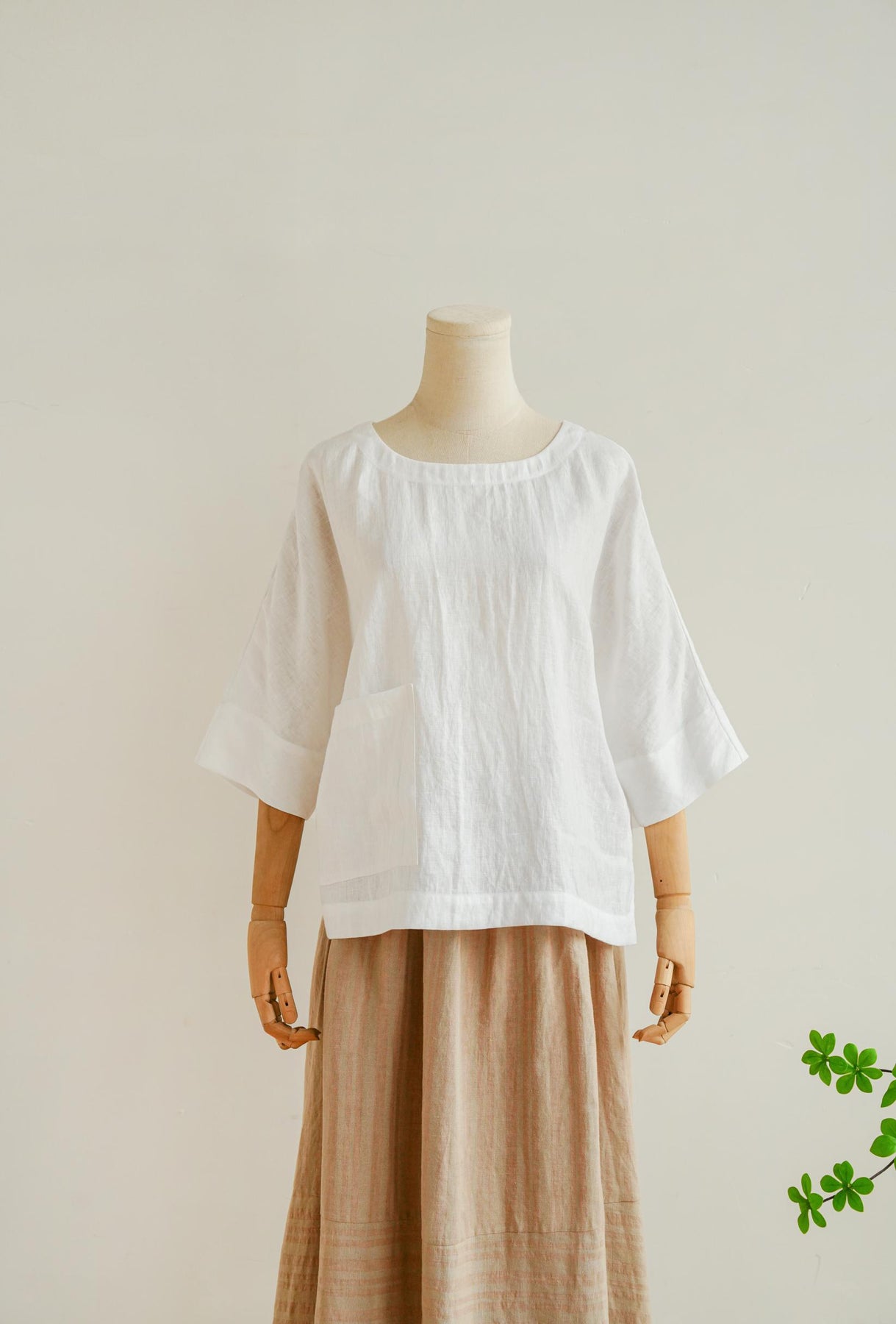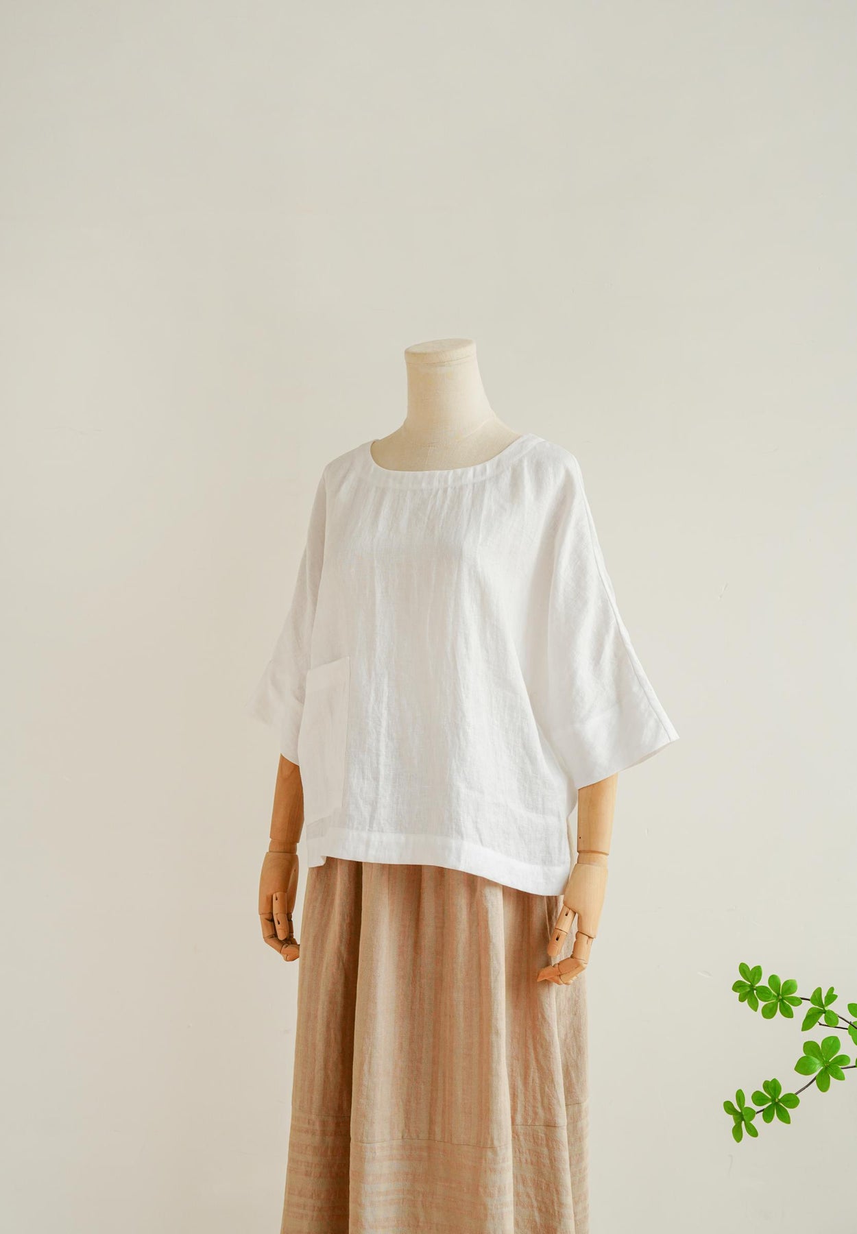 ★5分袖ほどの長さになるサイジングが魅力のリネンビッグベストです。