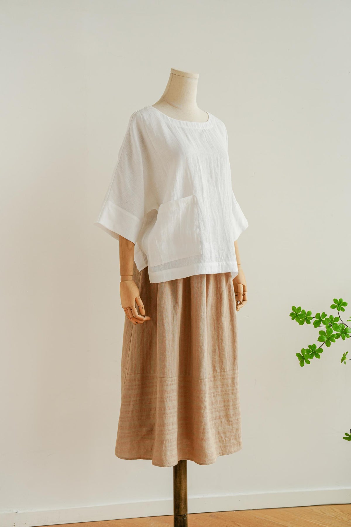 ★植物を染料にした麻生地を使用、さらっとした手触りとハリがあり、ナチュラルな風合いが特徴です。