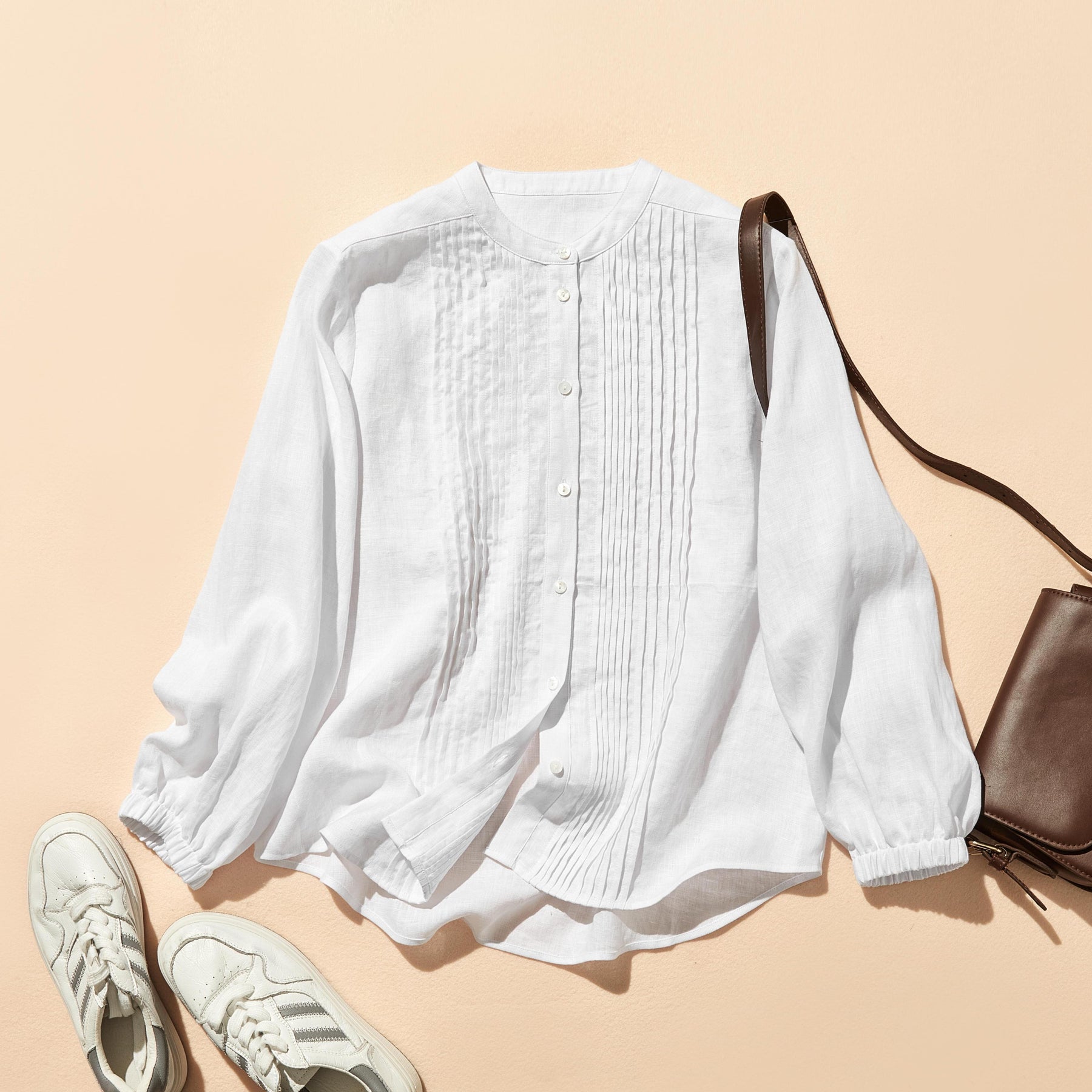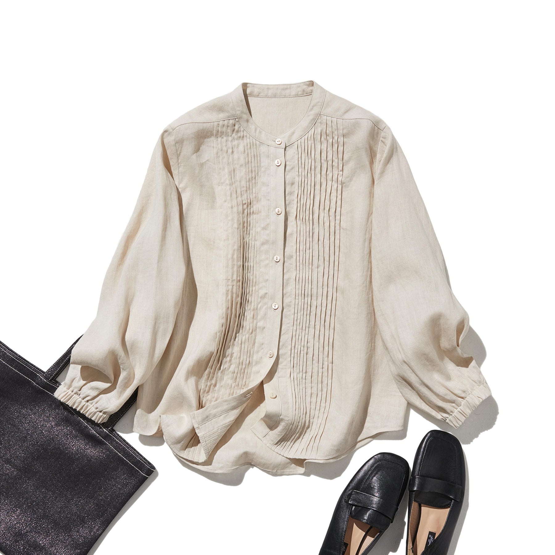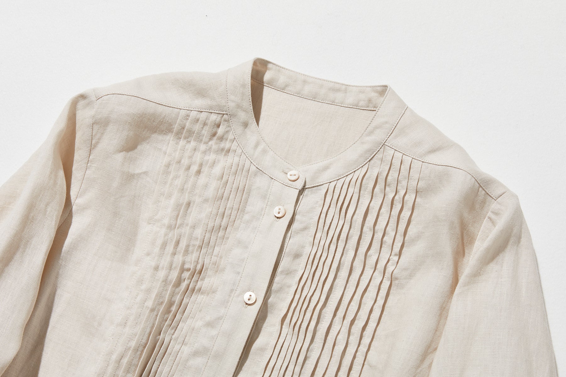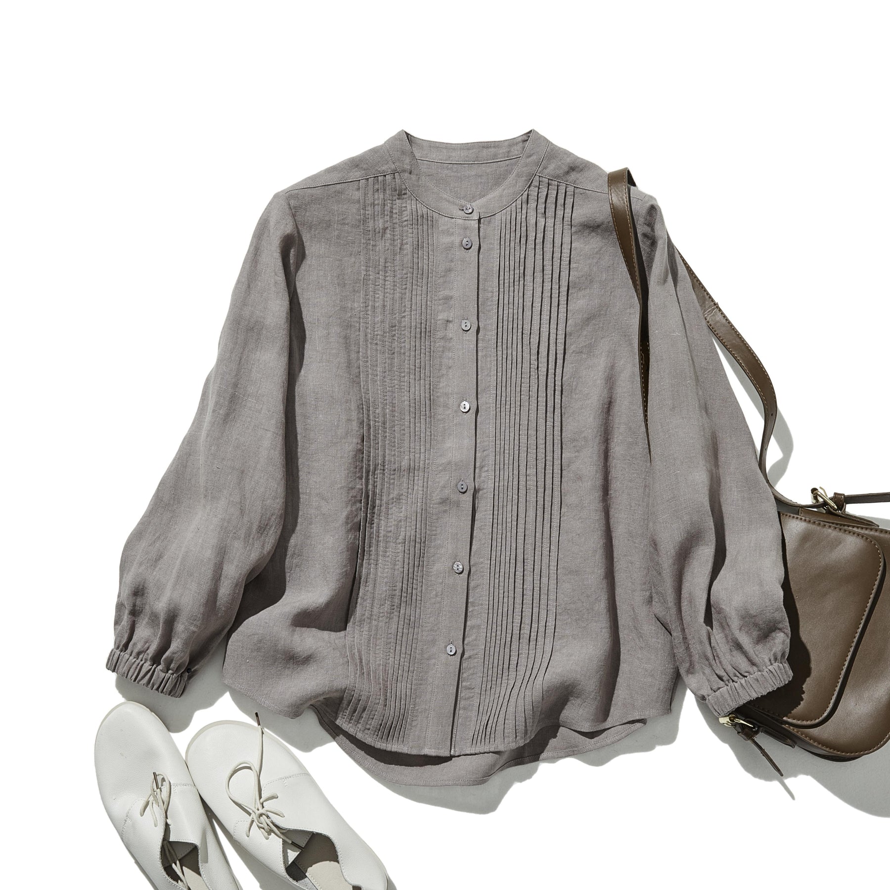 上品な佇まいと、心地よい着心地を兼ね備えた一枚 ピンタックシャツ リネンシャツブラウス 251007