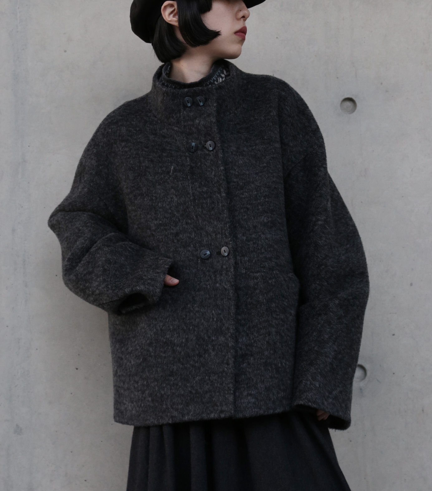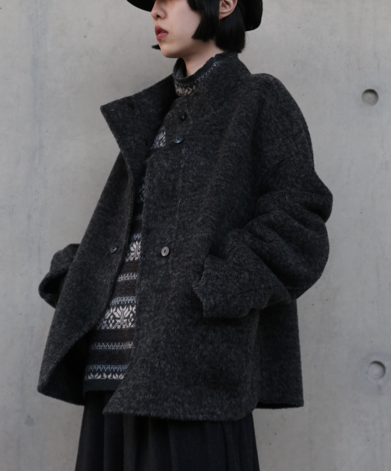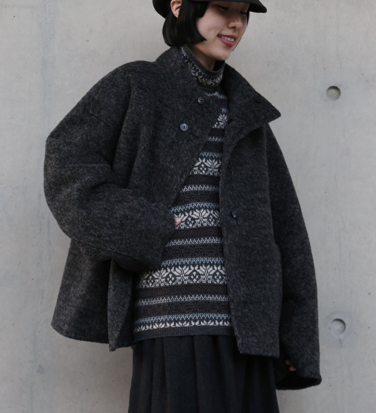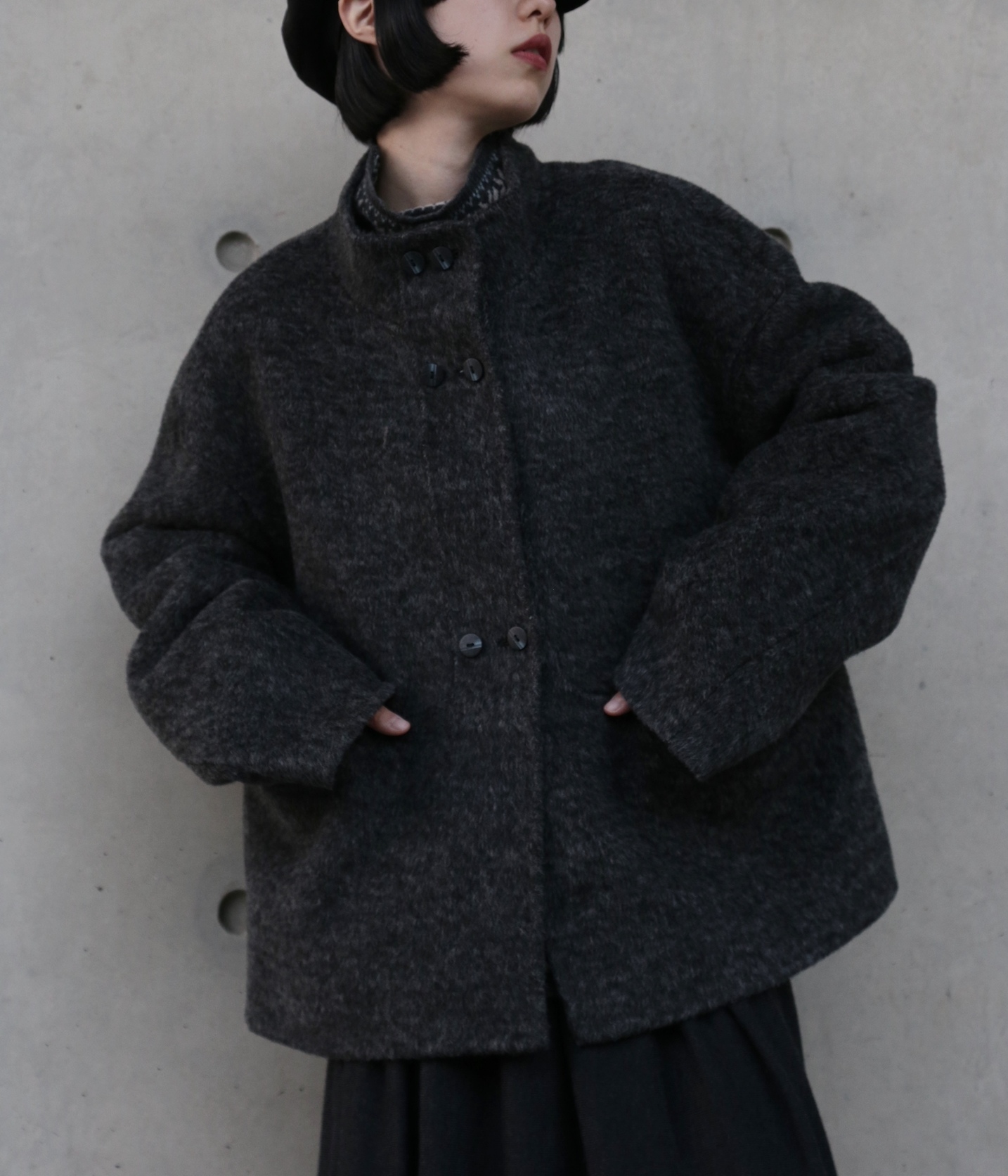 熟練の技が光る、総手縫いウールハイネックコート ウールコートこちらは、上質なウール100%を「総手縫い」で仕立て上げた、ハイネックのショートコートです。寒い季節にうれしい防寒性と上品さを兼ね備え、ゆったりとしたHラインシルエットが、さまざまなスタイルを華やかに彩ります。✦ このコートのこだわり ✦■ 職人の技が光る「総手縫い」最大の特徴は、すべて手作業で仕上げる「総手縫い」にあります。熟練の職人でも一日にわずか2枚しか制作できないこだわりの一品。縫い目の凹凸を抑え、美しいラインを実現する職人の技により、身体にふんわりと馴染む優雅なシルエットと、大量生産では味わえない特別な着心地をお届けします。■ 機能性とスタイルを両立したハイネック寒い日にも首元までしっかり守るハイネックデザインは、防寒性が高いのはもちろん、すっきりと洗練された印象を与えます。シンプルなのに存在感があり、冬の装いの主役として活躍します。■ 体型を選ばない、ゆったりHライン全体的にゆとりのあるHラインシルエットで、さまざまな体型を美しく包み込みます。ショート丈でバランスが取りやすく、すっきりとした着こなしにまとまるため、デイリー使いにぴったりです。■ 軽やかで温かい、上質ウール100%厳選されたウール100%の素材は、軽やかで着心地が良いのはもちろん、冬の寒さをしっかり防ぐ保温性に優れています。一枚あると、冬の防寒対策として大変重宝します。✦ 着こなしの幅が広がる、おすすめスタイリング ✦きちんと感のあるスタイルにハイネックニットとストレートパンツの組み合わせにこのコートを羽織れば、オフィスやちょっとしたオケージョンにもぴったりのスマートなスタイルが完成します。エレガントな装いにワンピースやスカートと合わせると、ゆったりとしたシルエットがより女性らしい柔らかな印象に。カジュアルな日にもデニムやスエット素材のボトムと組み合わせても、上質な素材感とデザインがきちんと感をプラス。トップスにタートルネックを合わせれば、こなれた大人のカジュアルスタイルに。このコートは、冬のファッションを格上げする、そんな特別な一着です。職人が一つ一つ心を込めて仕上げたこだわりの品を、末永くお楽しみいただけましたら幸いです。素材:ウール100%サイズ:身丈63cmバスト120cm肩幅59cm袖丈53cmアームホール54cm首回り52cm袖口36cm裾120cmモデルさんの身長:155cm透け感:なし裏地:なしポケット:あり伸縮性:なし光沢感:なしシーズン:春、秋、冬