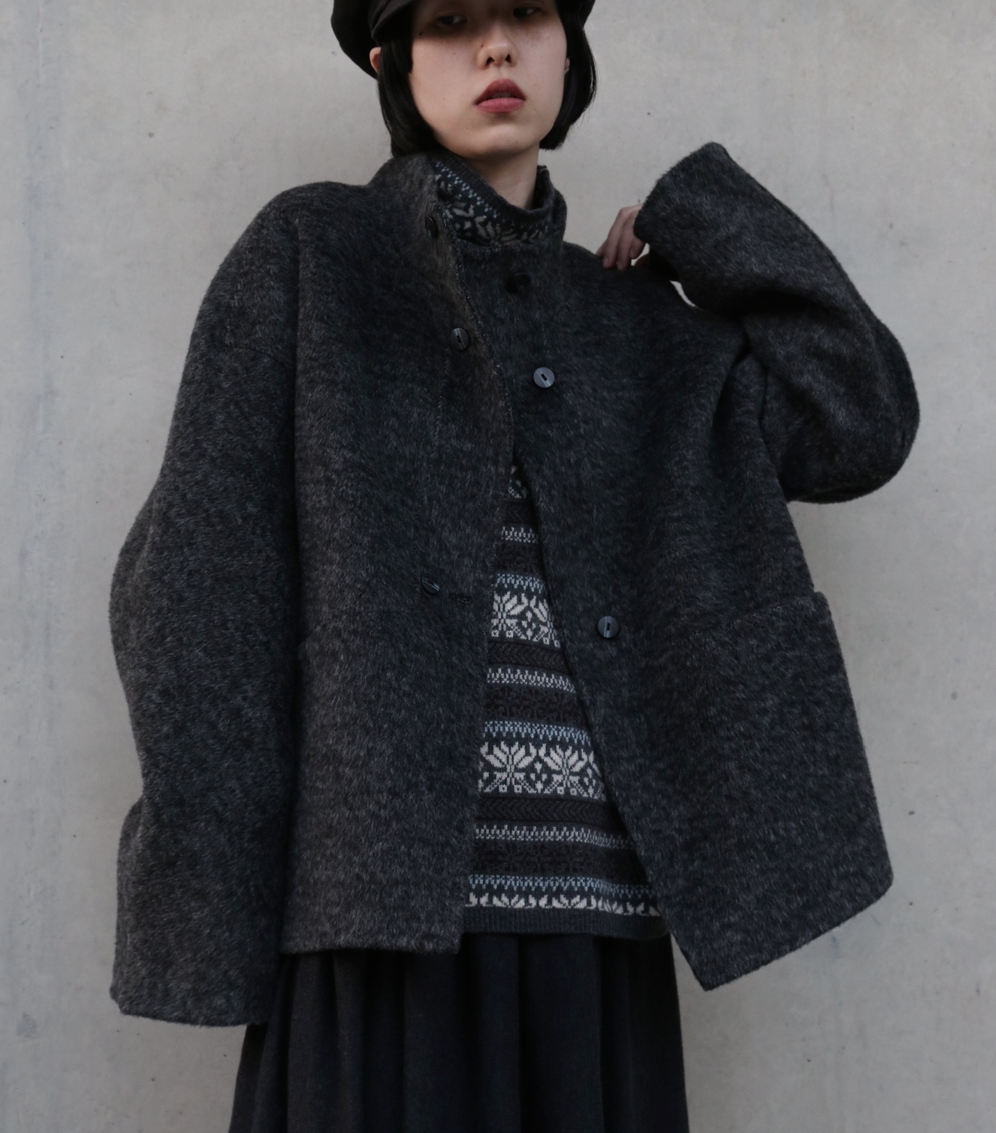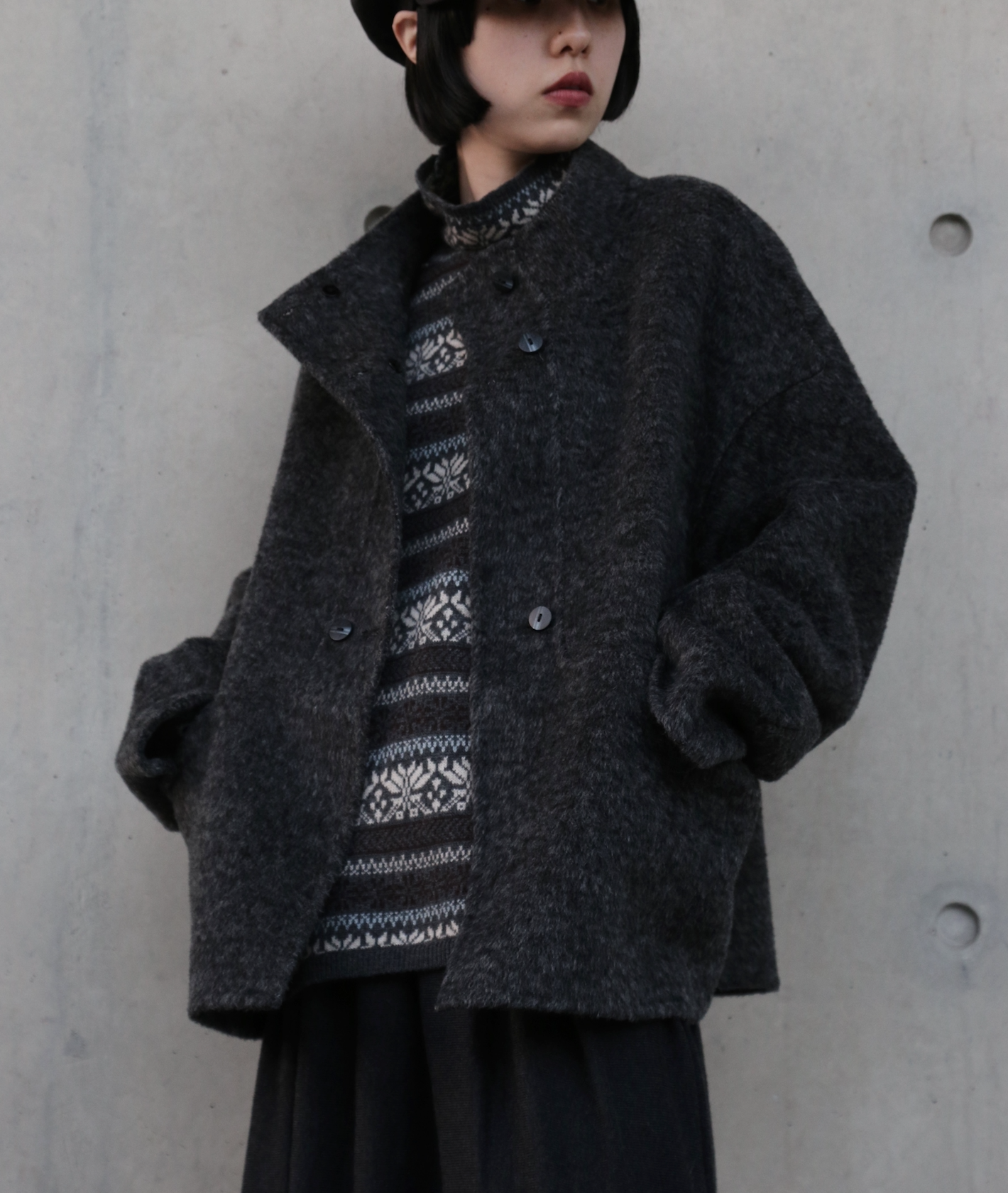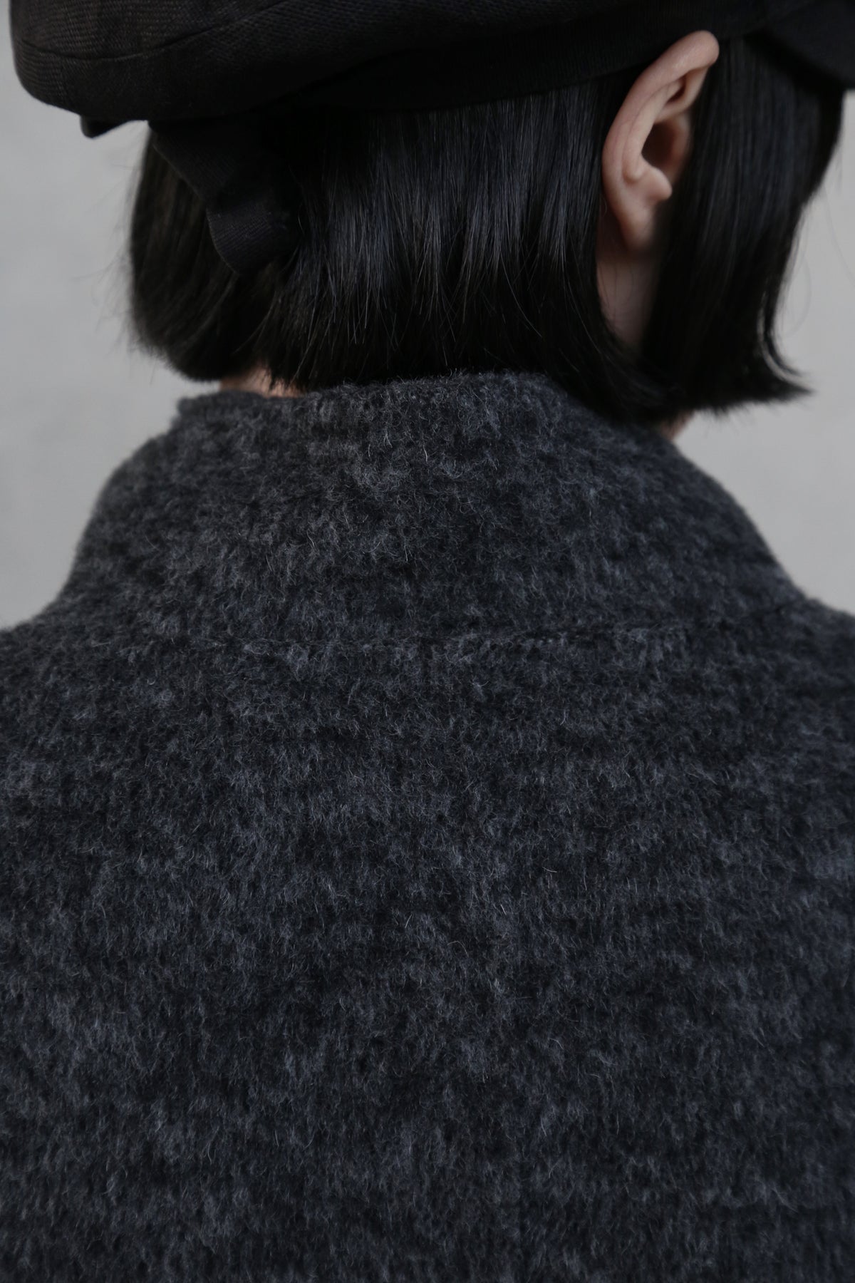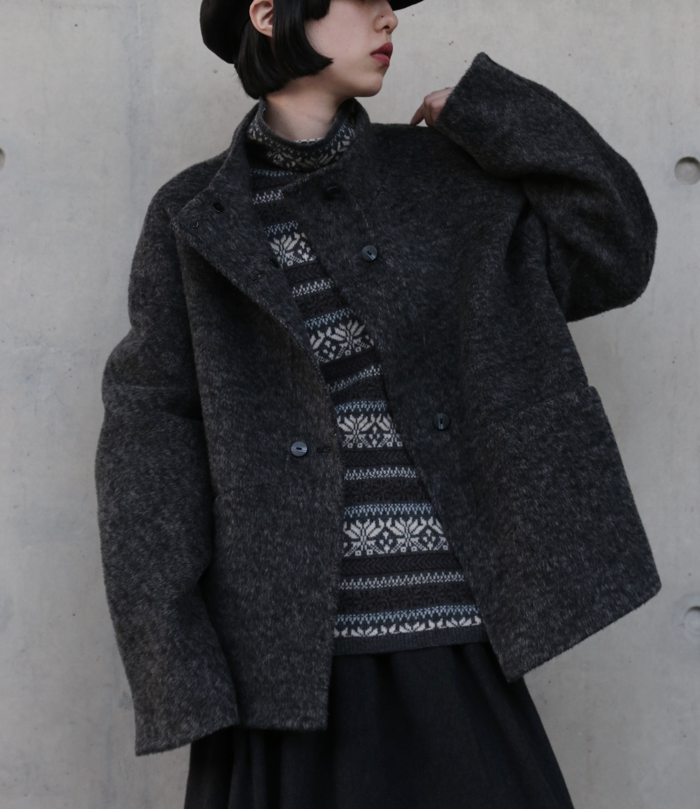熟練の技が光る、総手縫いウールハイネックコート ウールコートこちらは、上質なウール100%を「総手縫い」で仕立て上げた、ハイネックのショートコートです。寒い季節にうれしい防寒性と上品さを兼ね備え、ゆったりとしたHラインシルエットが、さまざまなスタイルを華やかに彩ります。✦ このコートのこだわり ✦■ 職人の技が光る「総手縫い」最大の特徴は、すべて手作業で仕上げる「総手縫い」にあります。熟練の職人でも一日にわずか2枚しか制作できないこだわりの一品。縫い目の凹凸を抑え、美しいラインを実現する職人の技により、身体にふんわりと馴染む優雅なシルエットと、大量生産では味わえない特別な着心地をお届けします。■ 機能性とスタイルを両立したハイネック寒い日にも首元までしっかり守るハイネックデザインは、防寒性が高いのはもちろん、すっきりと洗練された印象を与えます。シンプルなのに存在感があり、冬の装いの主役として活躍します。■ 体型を選ばない、ゆったりHライン全体的にゆとりのあるHラインシルエットで、さまざまな体型を美しく包み込みます。ショート丈でバランスが取りやすく、すっきりとした着こなしにまとまるため、デイリー使いにぴったりです。■ 軽やかで温かい、上質ウール100%厳選されたウール100%の素材は、軽やかで着心地が良いのはもちろん、冬の寒さをしっかり防ぐ保温性に優れています。一枚あると、冬の防寒対策として大変重宝します。✦ 着こなしの幅が広がる、おすすめスタイリング ✦きちんと感のあるスタイルにハイネックニットとストレートパンツの組み合わせにこのコートを羽織れば、オフィスやちょっとしたオケージョンにもぴったりのスマートなスタイルが完成します。エレガントな装いにワンピースやスカートと合わせると、ゆったりとしたシルエットがより女性らしい柔らかな印象に。カジュアルな日にもデニムやスエット素材のボトムと組み合わせても、上質な素材感とデザインがきちんと感をプラス。トップスにタートルネックを合わせれば、こなれた大人のカジュアルスタイルに。このコートは、冬のファッションを格上げする、そんな特別な一着です。職人が一つ一つ心を込めて仕上げたこだわりの品を、末永くお楽しみいただけましたら幸いです。素材:ウール100%サイズ:身丈63cmバスト120cm肩幅59cm袖丈53cmアームホール54cm首回り52cm袖口36cm裾120cmモデルさんの身長:155cm透け感:なし裏地:なしポケット:あり伸縮性:なし光沢感:なしシーズン:春、秋、冬