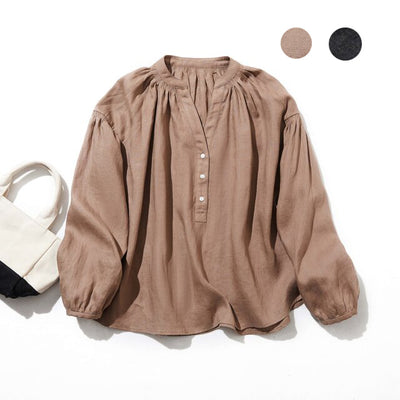 見惚れる、シルエット。フレンチリネンブラウス Vネック ギャザーブラウス 長袖220903