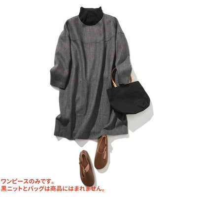 大人気のヴィンテージ風柄 秋冬厚てワンピース ゆったり 裏地付き221002-3