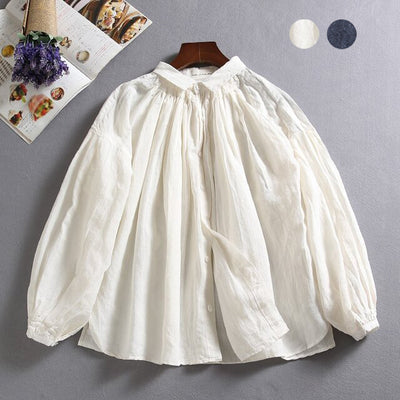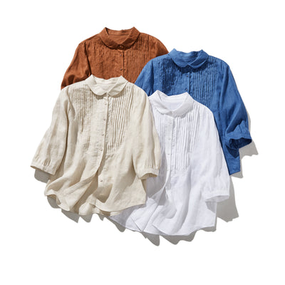 大人可愛いの丸襟シャツブラウス ピンタック入り リネン100% 240512