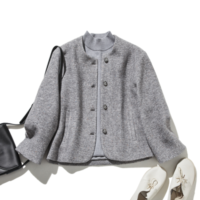 上品な印象のウールジャケット ショートアウター 裏地付き 241103