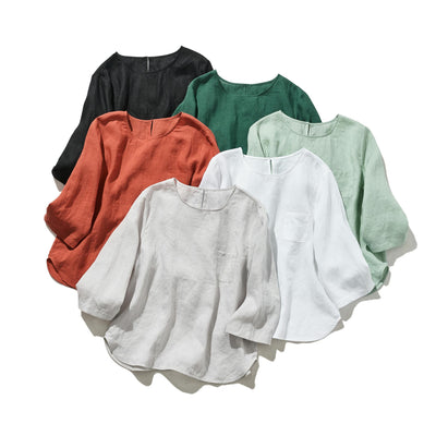 さらりと着心地よい、リネンブラウス 7分袖 240517