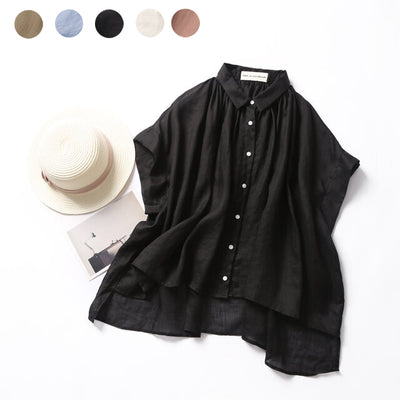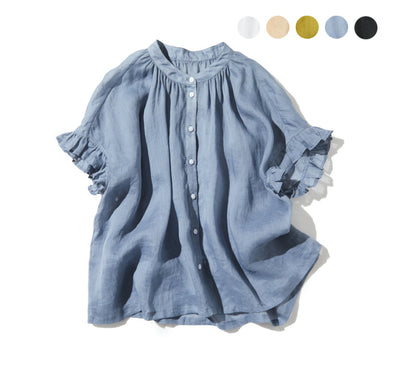 さらりと着心地良い 夏の定番シャツブラウス フリル袖 麻100% 220513