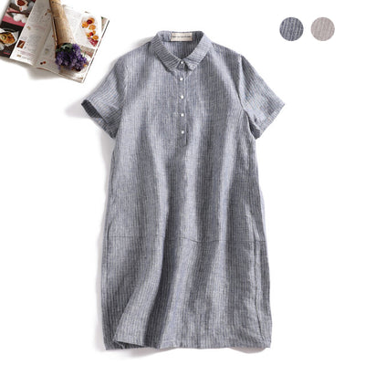 着るほどに愛着がわくストライプワンピース 半袖 麻100% 190709