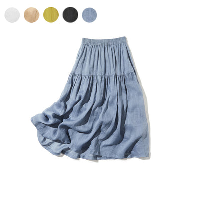優しく揺れる、ゆるふわギャザースカート リネンロングスカート 裏地付き 220512