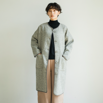 ★Made in Italy★ Collarless Coat, Herringbone Fabric, Perfect for Everyday Wear, 201210-9