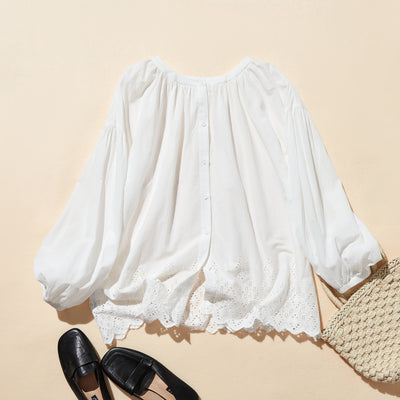 [Gorgeous delicate scrap embroidery] Cotton lace blouse perfect for all seasons. 2-way front and back. 250911