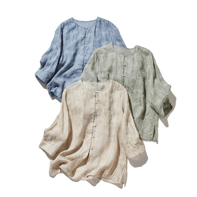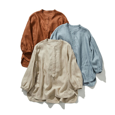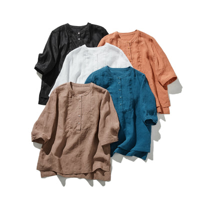 A three-quarter sleeve blouse that can be worn both elegantly and casually. 100% linen. 240511