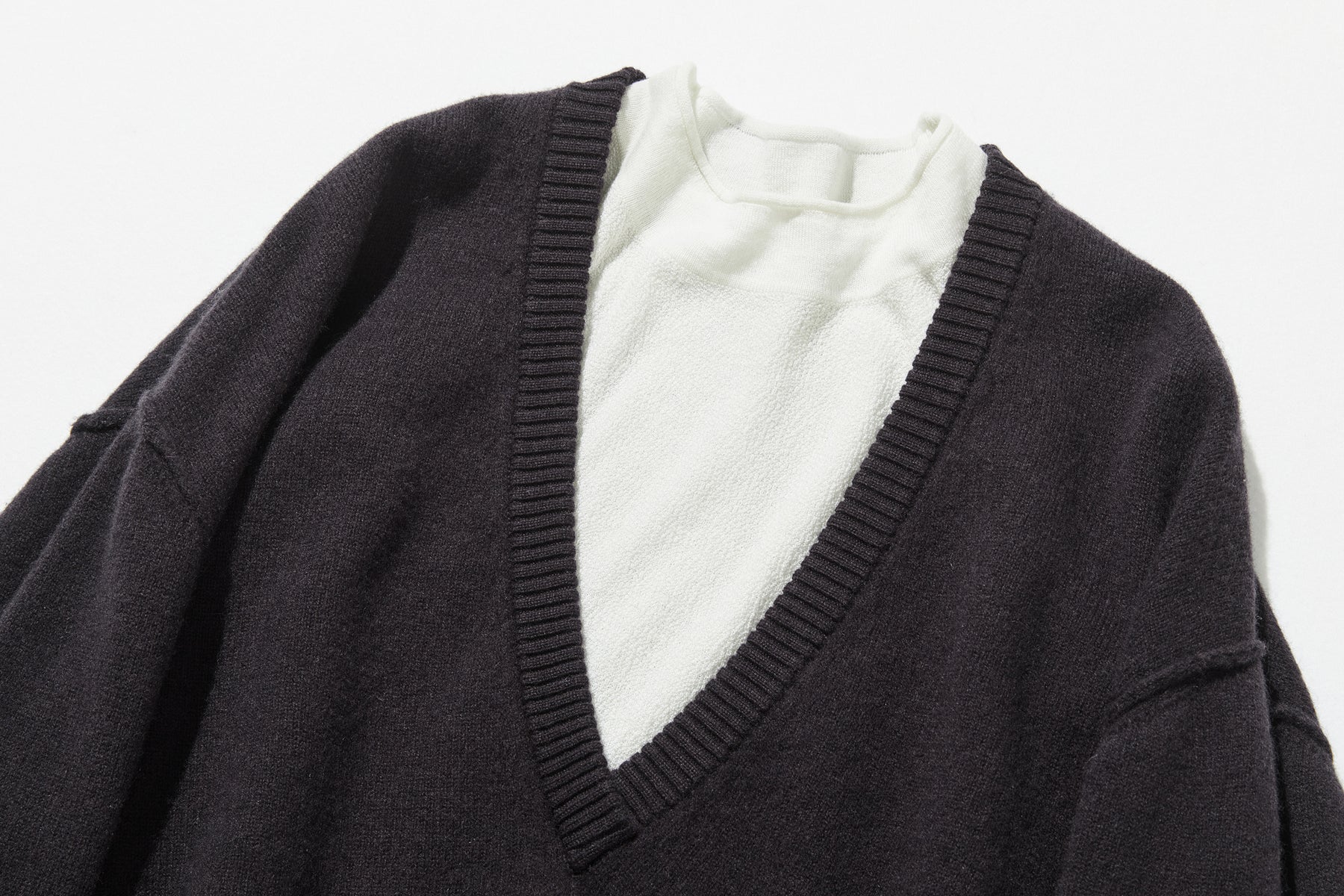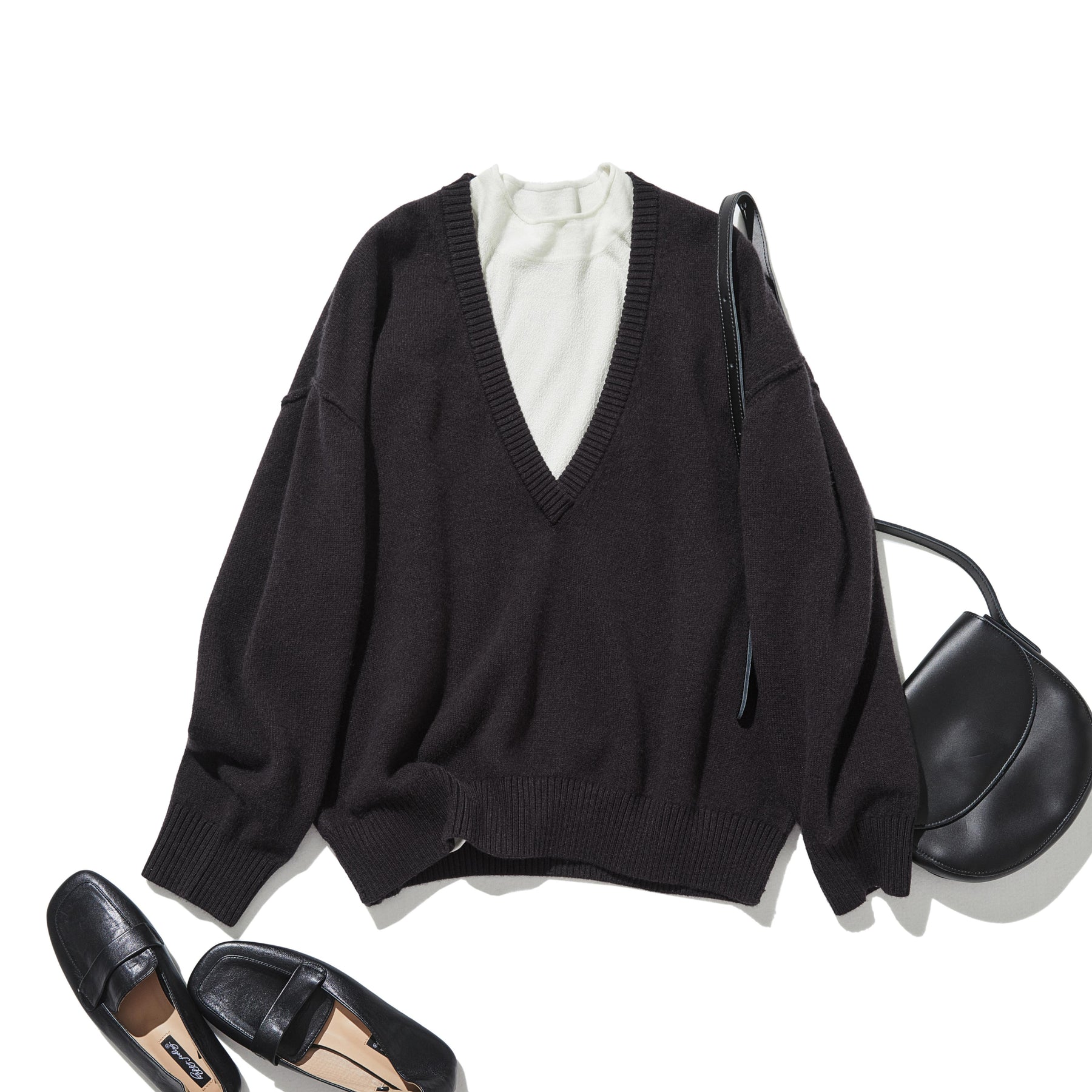 • Relaxed V-neck: The deep V-neck creates a clean look around the neck and flatters the face. This openness allows for layering with a variety of innerwear, expanding your styling options.