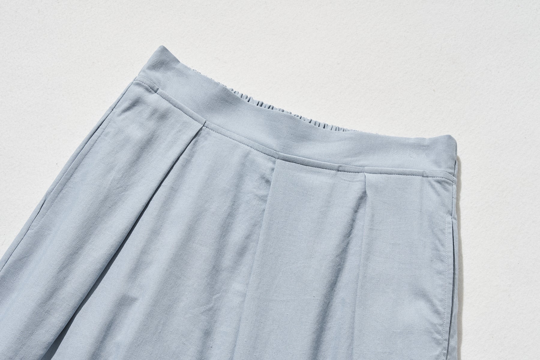 The back half has elastic, making it comfortable to wear. The gathered fabric that spreads from the elastic waist is also beautiful.