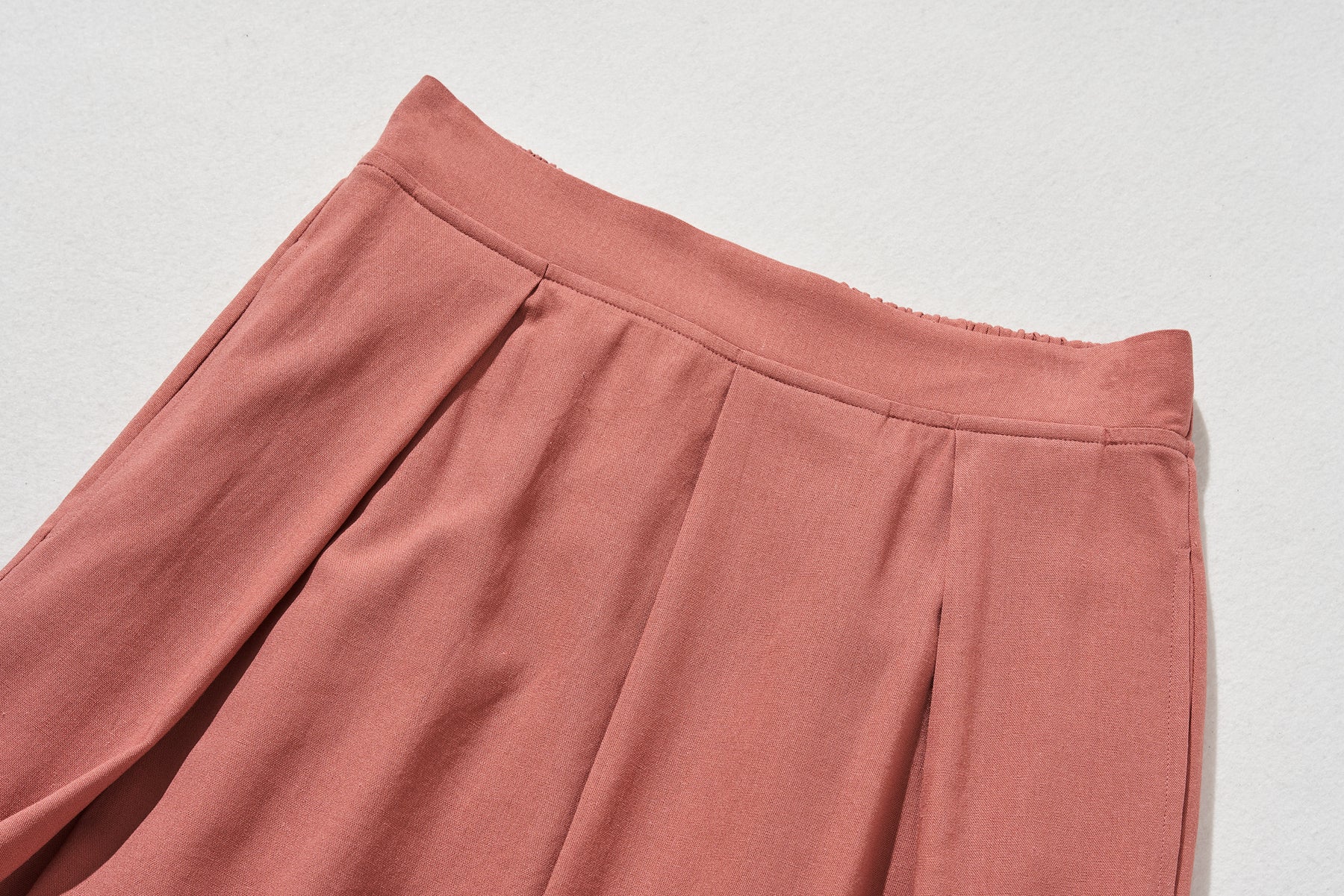 The tucks create a beautiful flared silhouette, and the front waist has a clean design that can be tucked in.