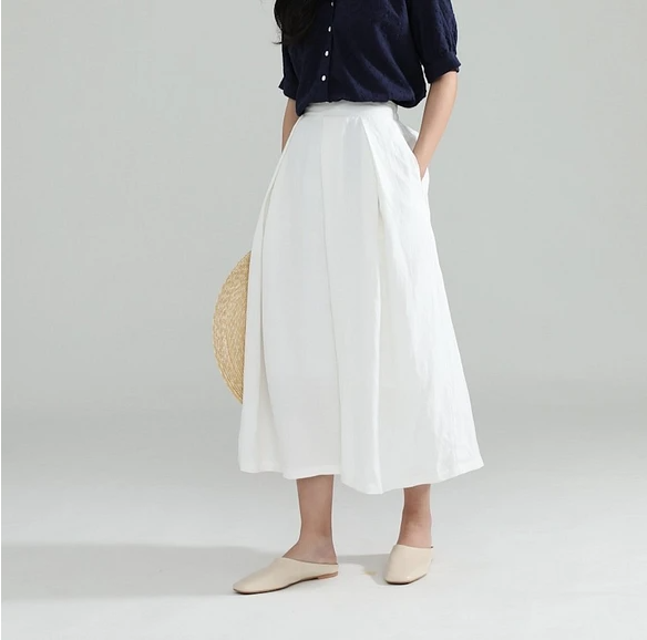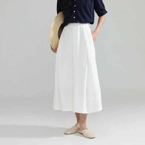 This beautiful skirt is made from the highly popular cotton linen fabric and has a beautiful drape.