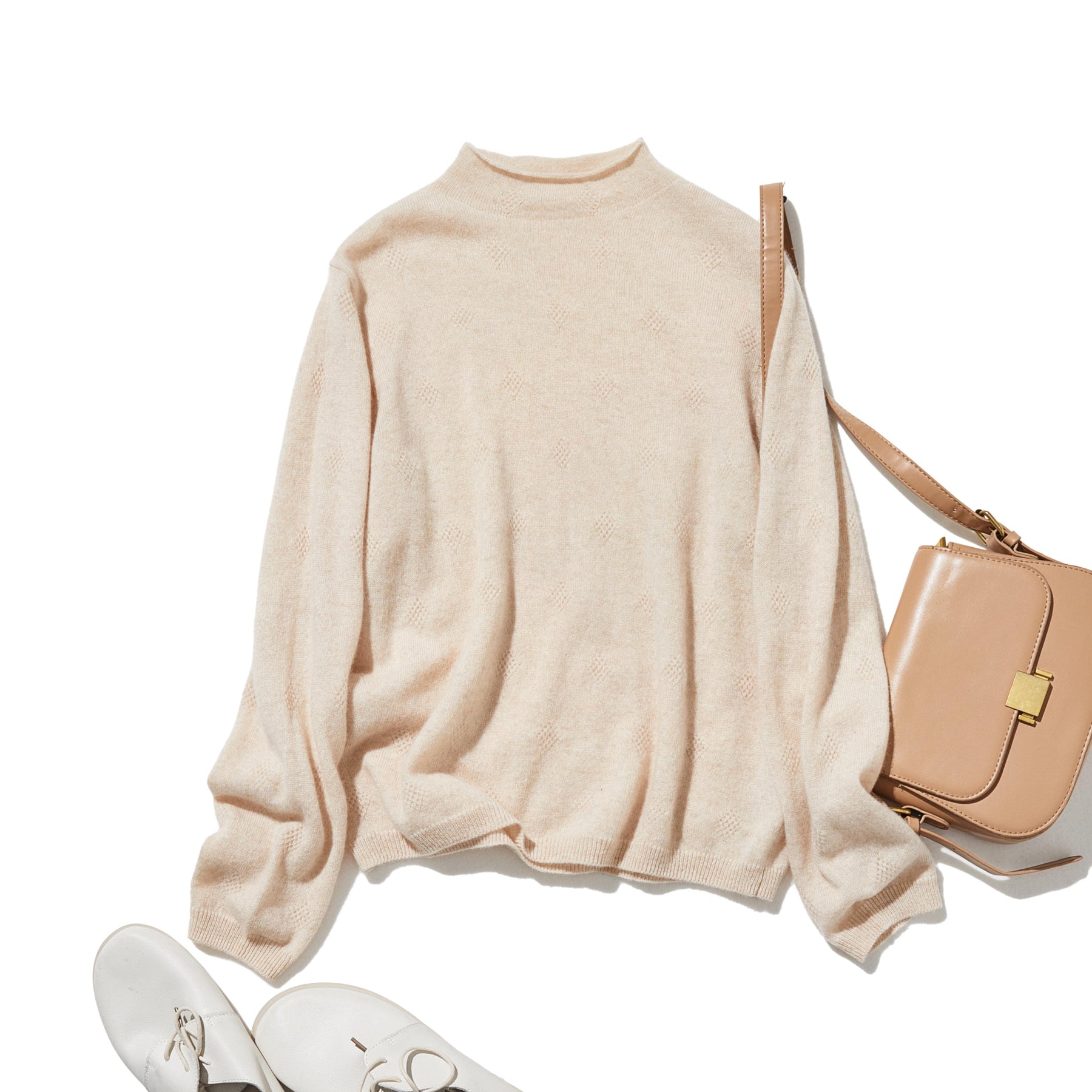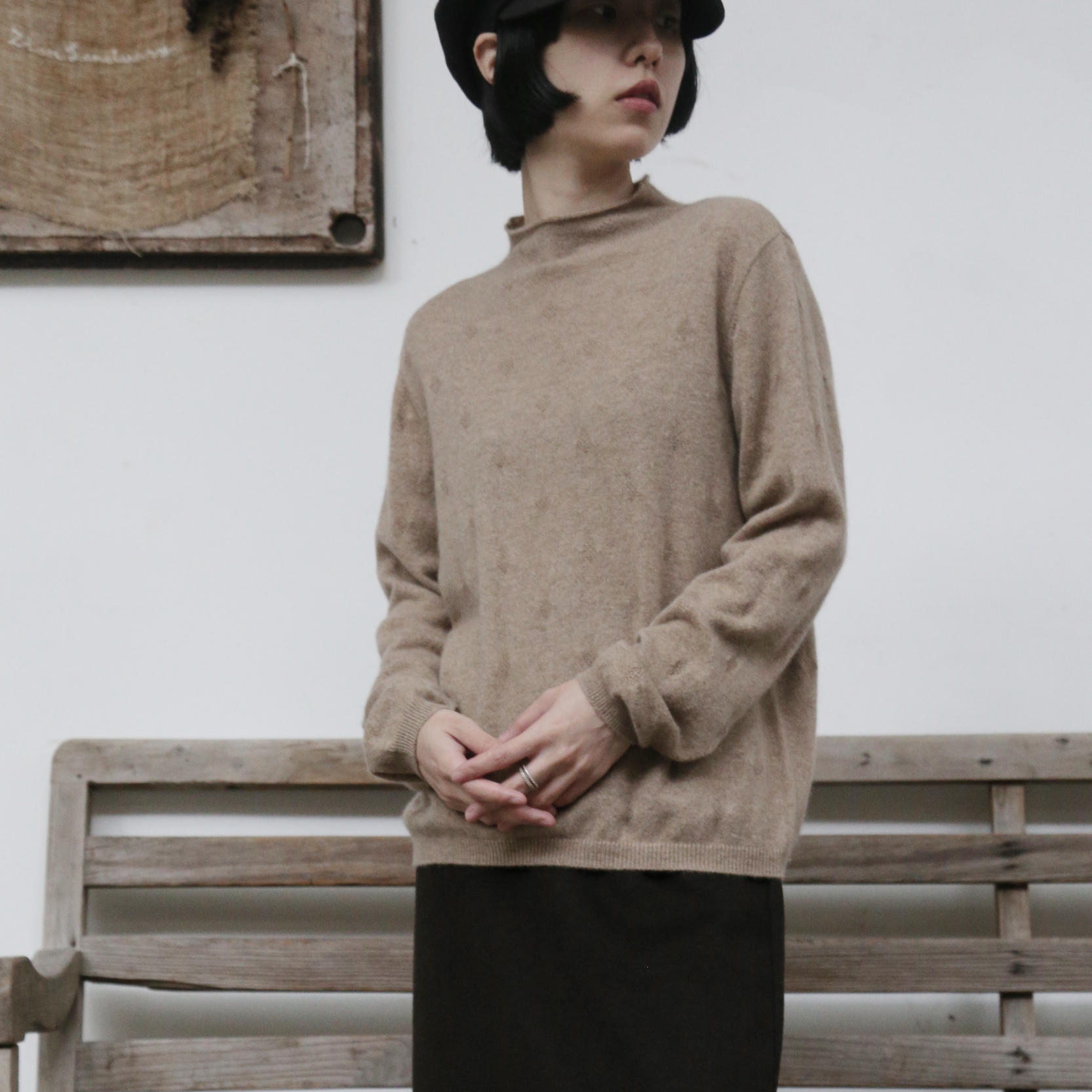 The ultimate comfort born from soft fibers. 100% cashmere high-neck knit 231109