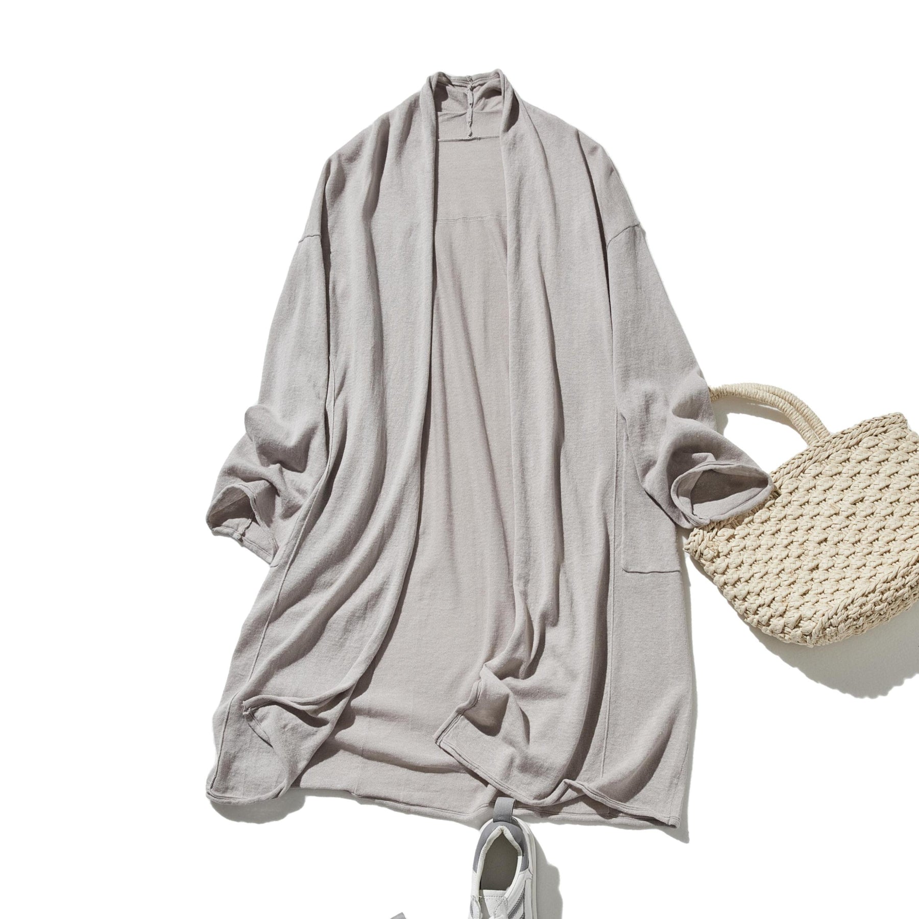 「立体裁断で着やせ!」コットンリネン UV冷房対策 ロングカーディガン  250601