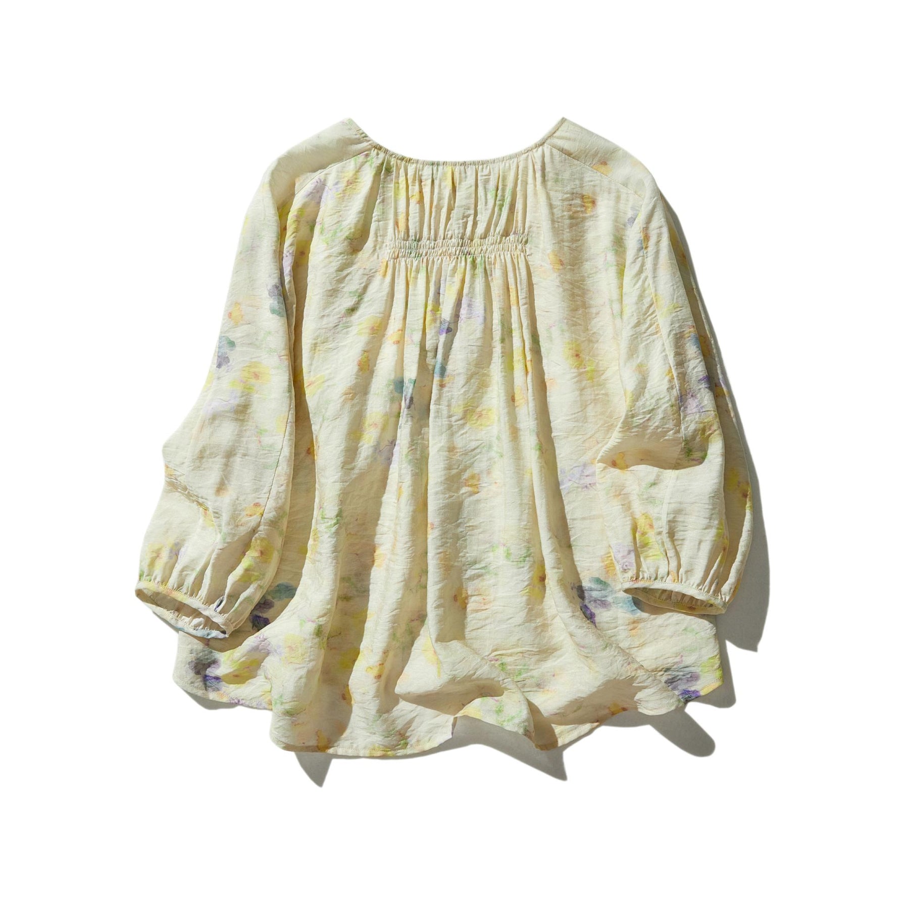 ★パッと明るい表情に導くパステルイエローを基調とした華やかなフラワープリントブラウス。