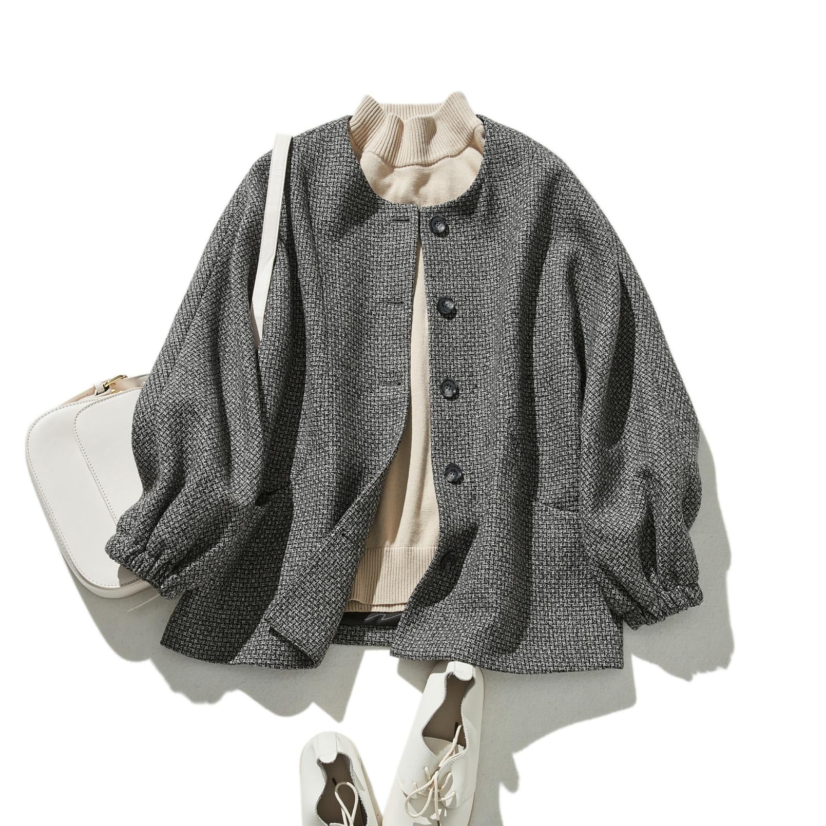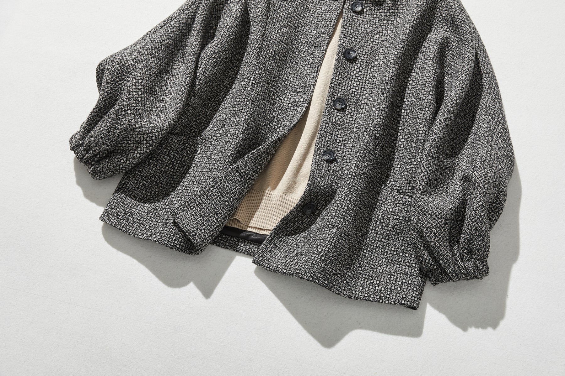 お洒落可愛いを格上げするツイードアウター ジャケット ウール混 裏地付き 231207-1