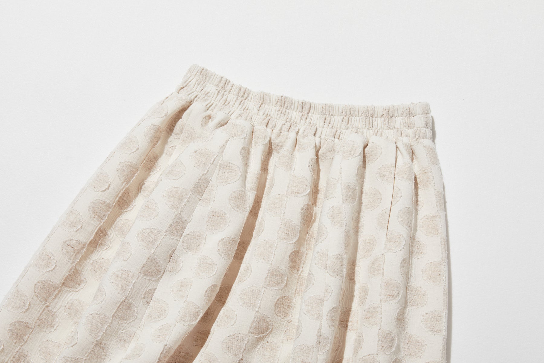 ★腰まわりからたっぷりと寄せたギャザーと、裾に入れたダーツが絶妙に絡み合い、他にはない独特の立体感のあるシルエットを生み出しています。