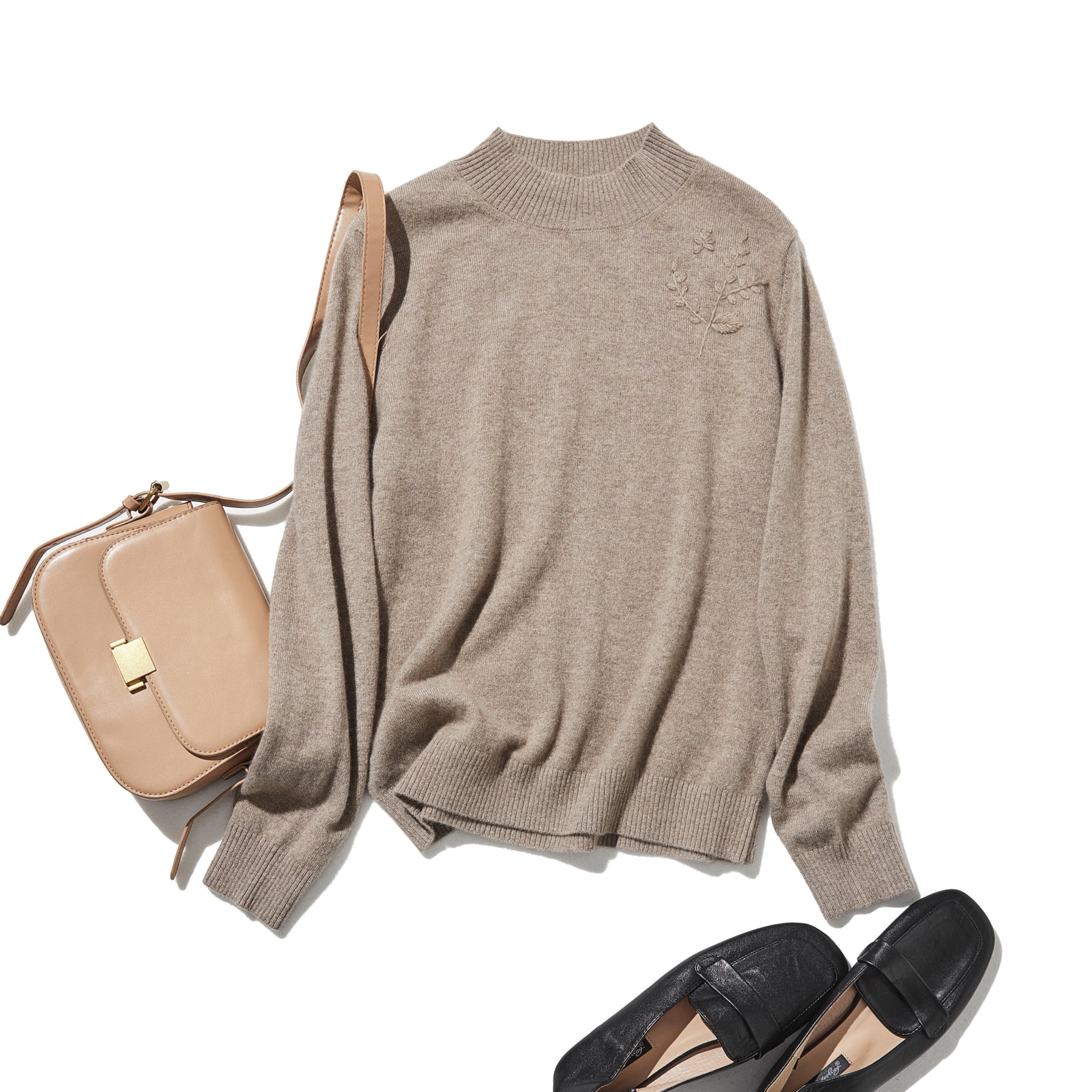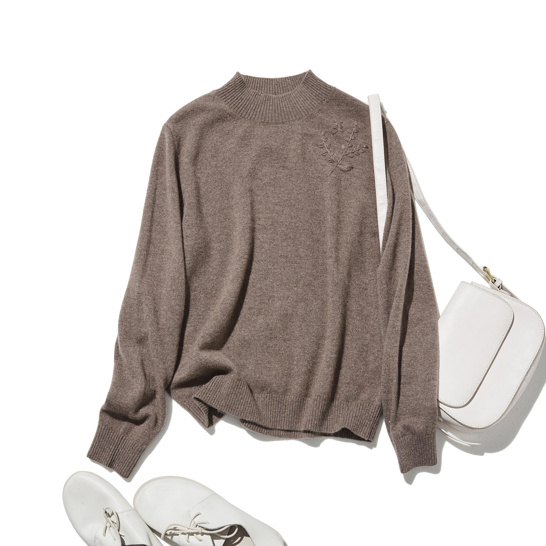 • エレガントな大人カジュアル:茶色のニットに、白いシャツの襟元を覗かせ、ウールのストレートパンツとローファーを合わせれば、洗練されたオフデイスタイルの完成です。