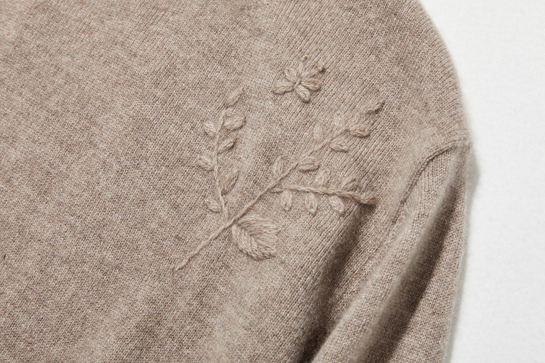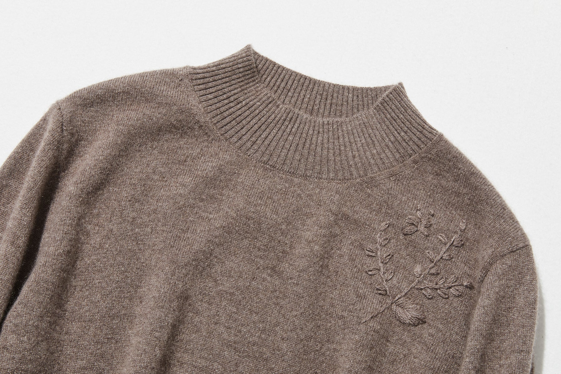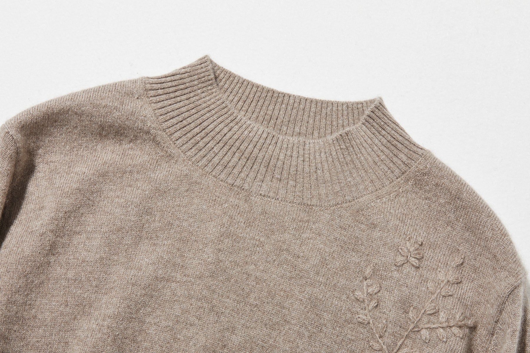手刺繡の葉と蝶が遊び心を添える。至高のカシミヤボルトネックニット カシミヤセーター 251127