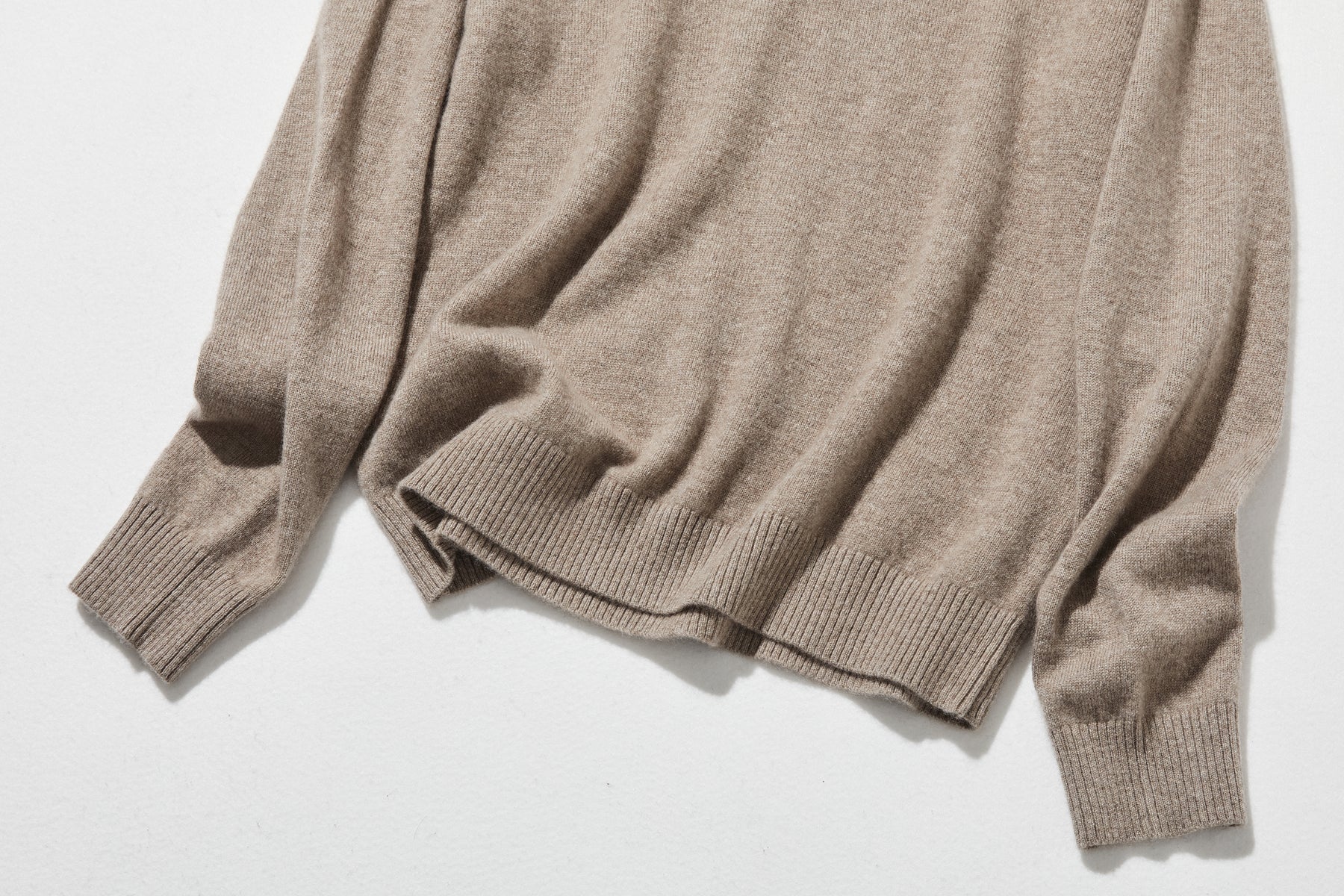 厳しい内モンゴルの自然環境で育まれたカシミヤ山羊。彼らが厳寒の冬を生き抜くために身にまとう、極細の「アンダーコート(産毛)」だけを厳選して使用しています。16マイクロンという極細糸によって生まれるのは、驚くほど軽く、肌に触れた瞬間とろけるような柔らかさと上品な光沢。適度な厚みでありながら着ぶれず、カシミヤ本来の優れた吸湿性により、汗ばんでもチクチクせず、一日中快適な着心地を持続させます。