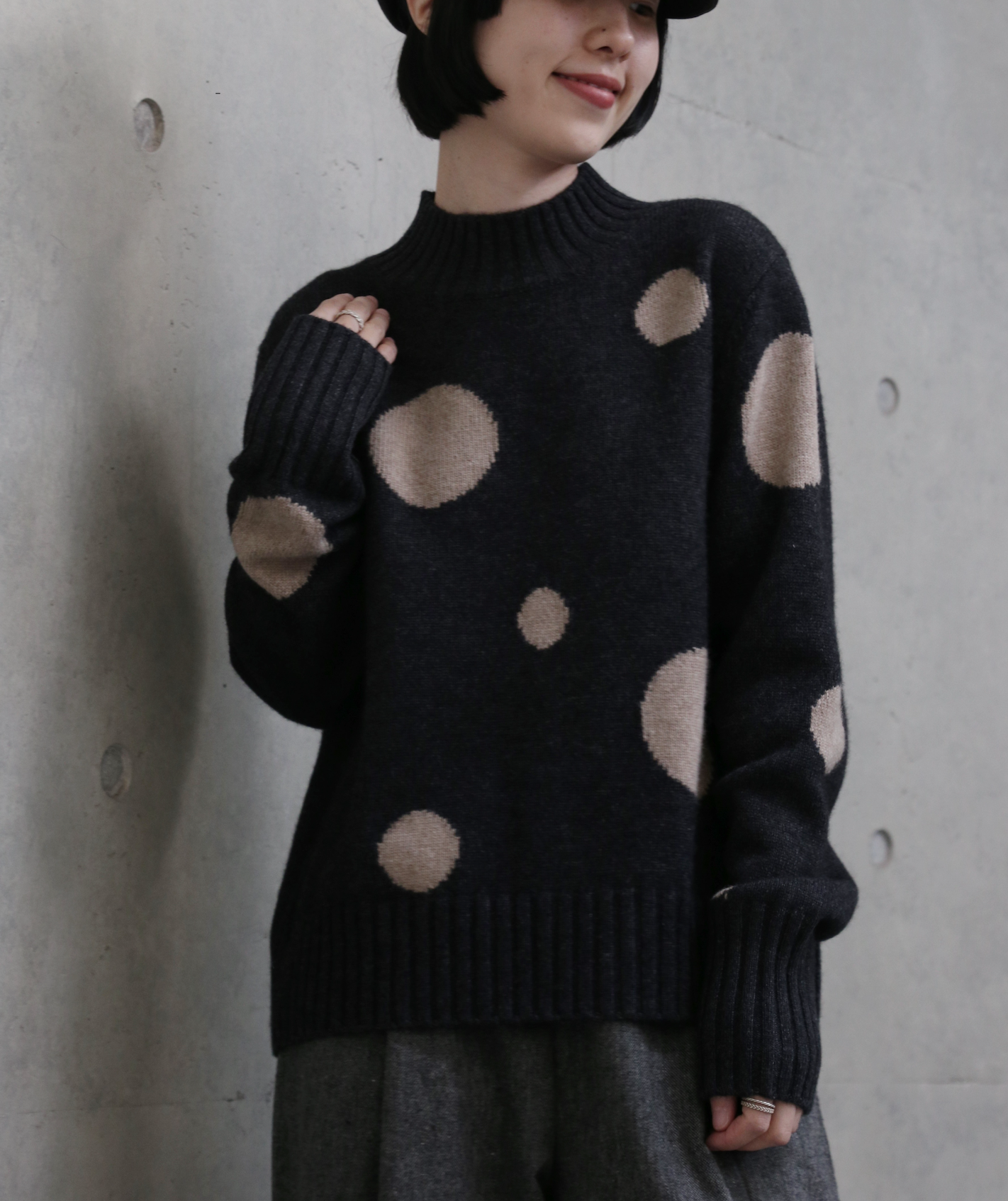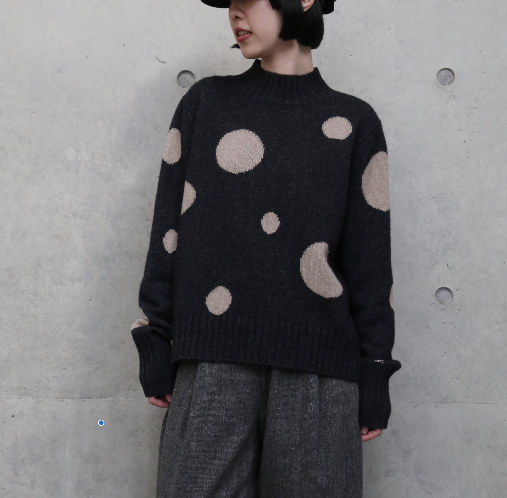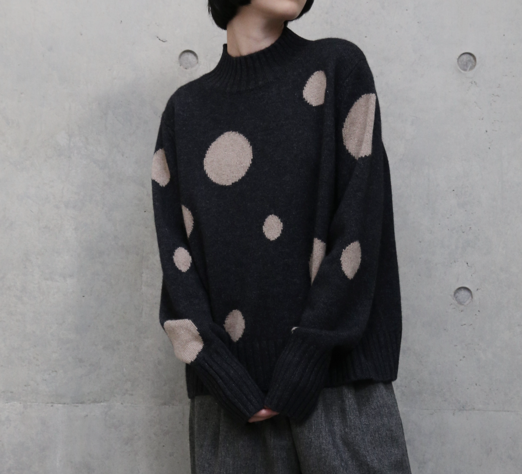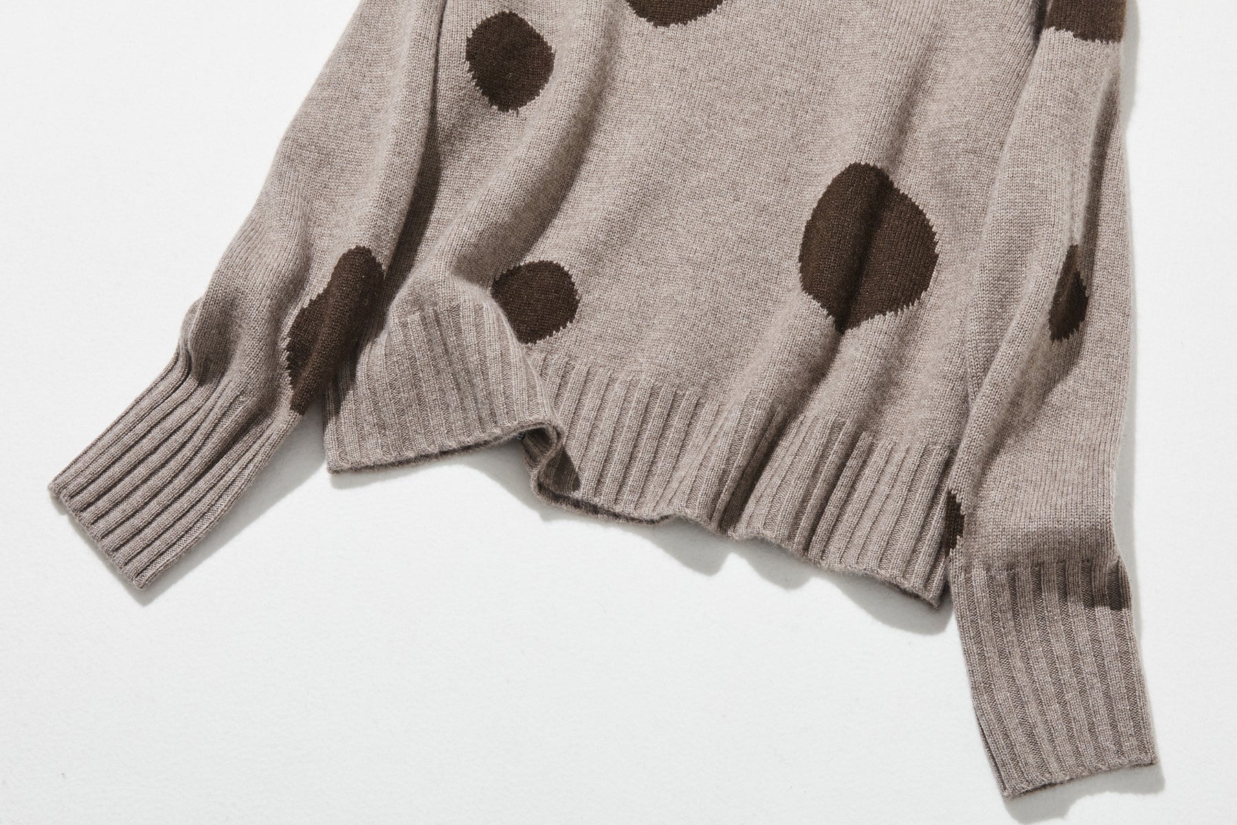 【至高の柔らかさ】ヤクダウン&ウール混紡 ドットニットプルオーバー セーター 251132毎日身に付けたくなる、その驚くべき柔らかさへ。本品は、希少なヤクのダウンと良質なウールを絶妙にブレンドした、ひと際優れた着心地のニットです。ヤクのダウンとは、ヤクの顎や腹部など、限られた部位からしか採取できない、とても繊細な産毛のこと。一般的なウールよりもはるかに柔らかく、なめらかな肌触りが最大の特長です。【他素材と比較したその実力】• 保温性: ウールより約30%高く、カシミアと同等の温かさ。• 通気性: カシミアよりも130%高く、蒸れにくく快適。• その他: 毛玉ができにくいという、嬉しい特長も。「柔らかくて温かいけど、重たくない」まさに理想的な素材を、ぜひその肌でお確かめください。【デザインのこだわり】前面と袖に散りばめられた、大小のフラットなドットが印象的なプルオーバー。どこかレトロで遊び心のあるデザインながら、シンプルな色合いが品の良さをアップします。ゆったりめのシルエットで、身体を包み込むようなリラックスした着心地も魅力のひとつ。甘すぎず、おしゃれな大人の雰囲気を叶えます。【コーディネート例】• 定番スタイル: シンプルな色のデニムやチノパンと合わせて、カジュアルでありながら上品な印象に。• レディースなら: スキニーパンツやスカートにインして、ゆとり感のあるシルエットを活かした「ゆるカジ」スタイルがおすすめ。• レイヤードスタイル: 襟元から色や柄がのぞくように、ワイシャツやタイトなタートルネックの上から着るのもおしゃれです。このニット一枚で、春・秋・冬と、三シーズンを通して快適な着心地をお楽しみいただけます。プレミアムな素材感と、飽きの来ないデザイン。ぜひ、お手元に迎えていただきたい一枚です。素材:ヤクダウン49.1%ウール31.7%ナイロン9.8%アクリル9.4%サイズ:身丈55cm肩幅40cmバスト102cm袖丈61cmアームホール46cm首回り37cm袖口17cm裾98cmモデルさんの身長:155cm透け感:なし裏地:なしポケット:なし伸縮性:あり光沢感:なしシーズン:春、秋、冬