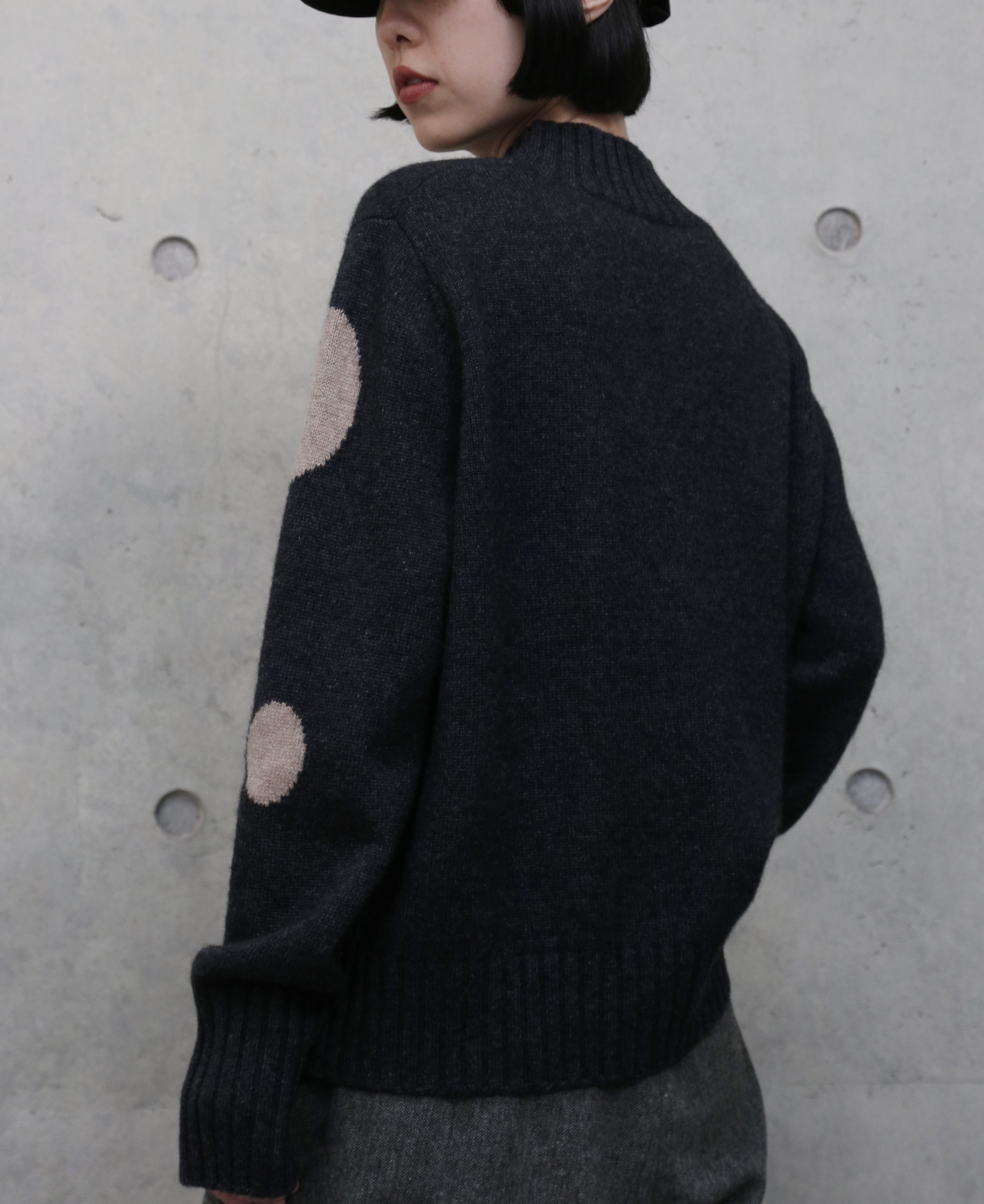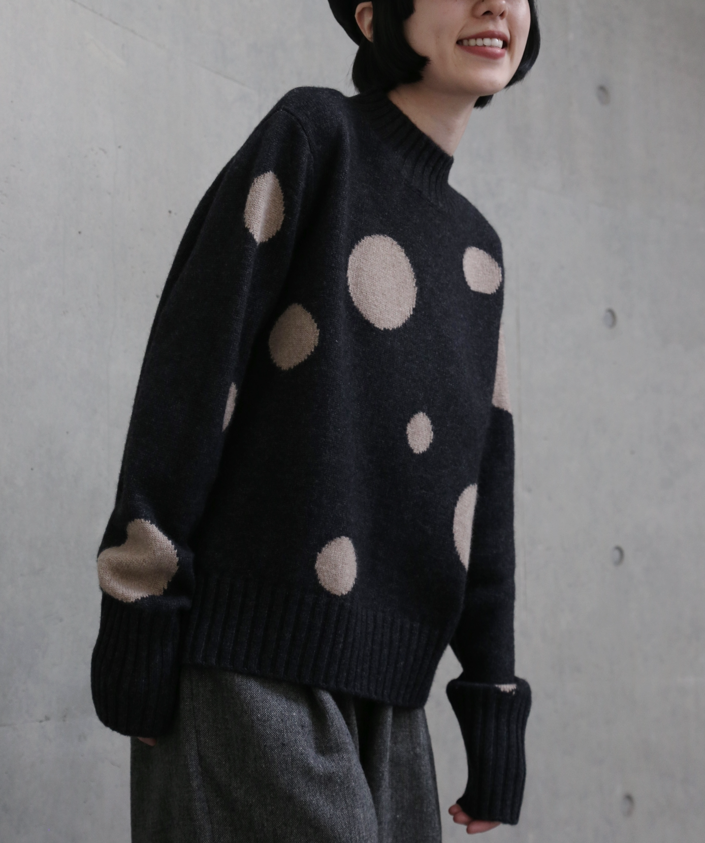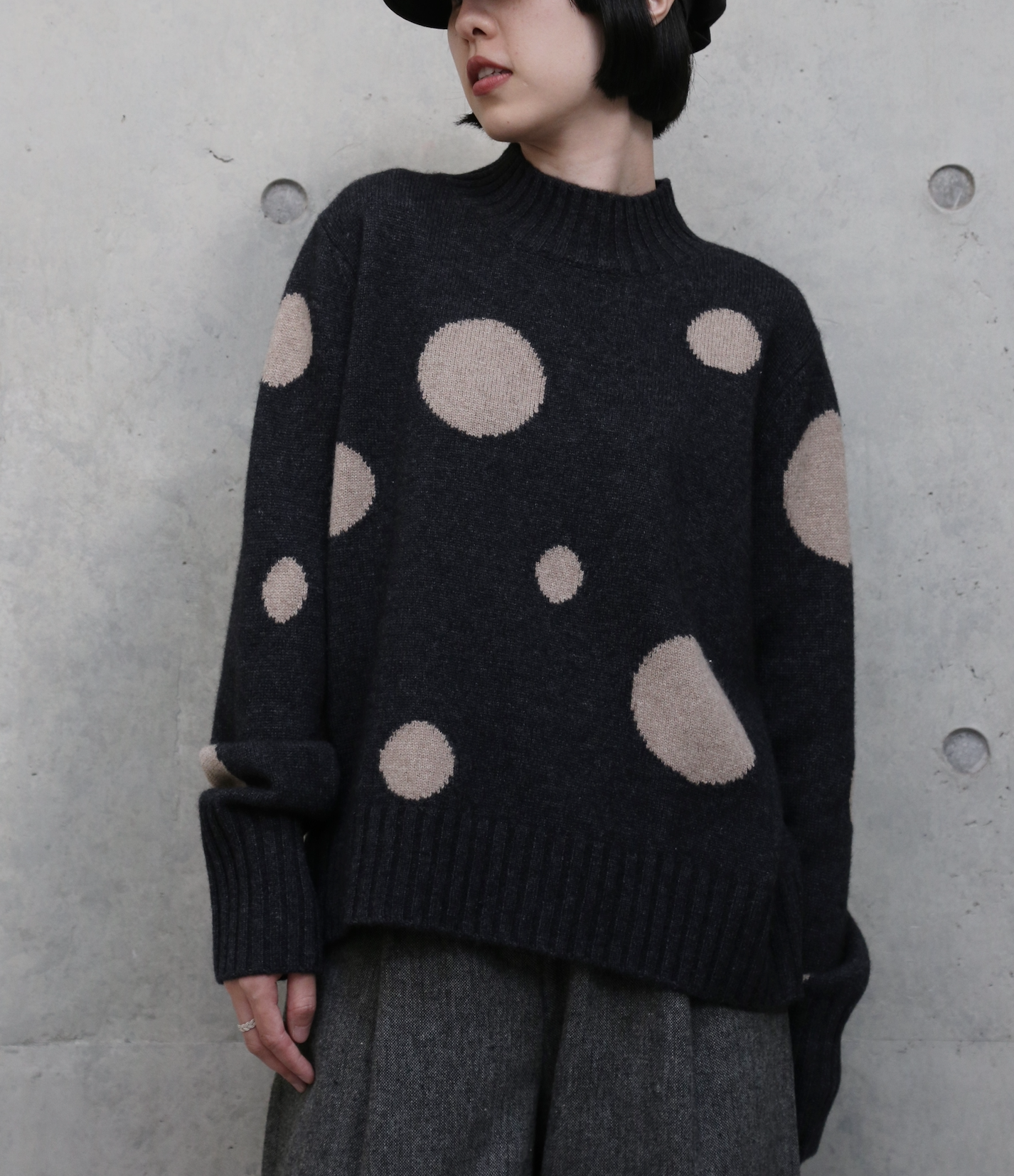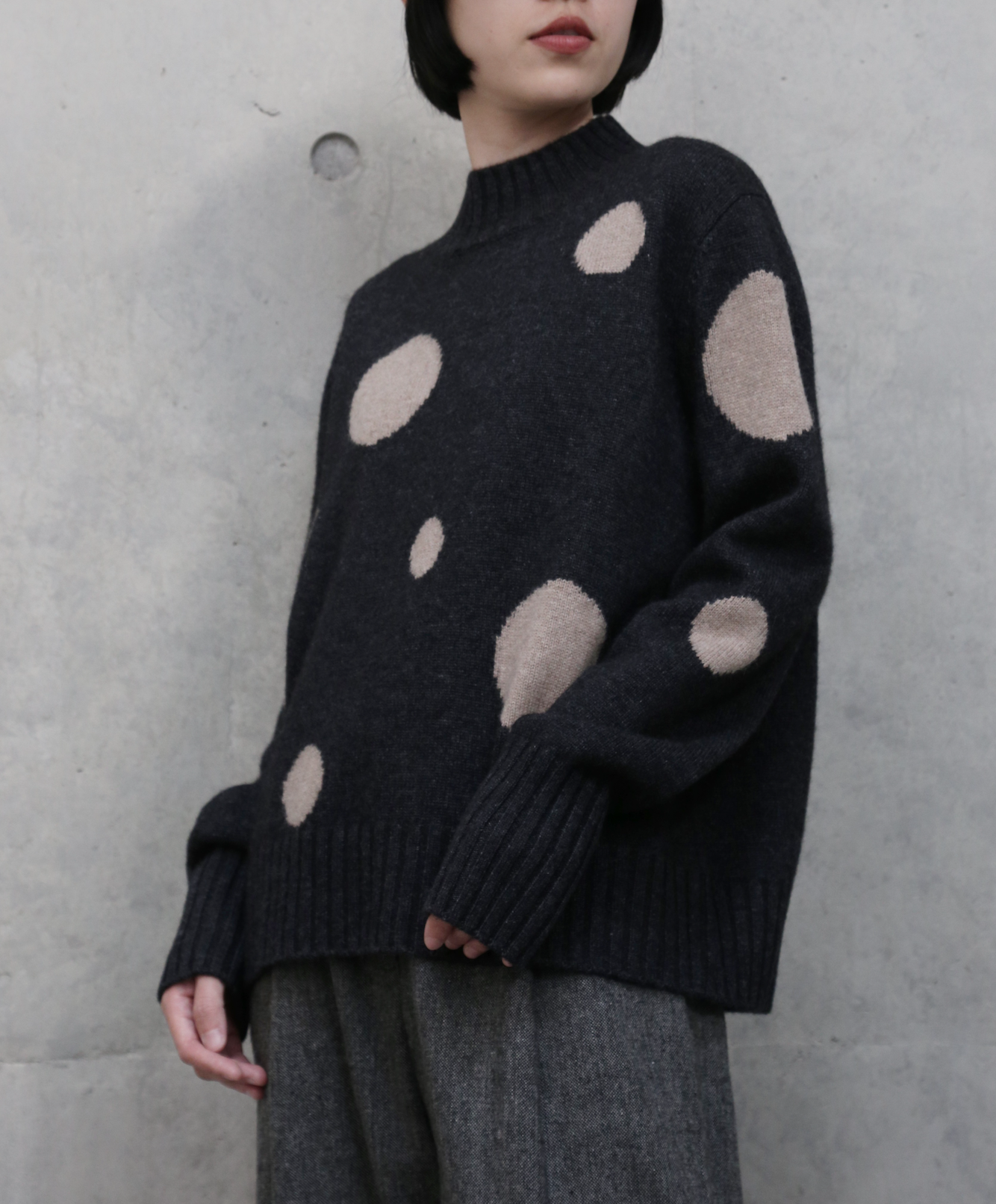 【至高の柔らかさ】ヤクダウン&ウール混紡 ドットニットプルオーバー セーター 251132毎日身に付けたくなる、その驚くべき柔らかさへ。本品は、希少なヤクのダウンと良質なウールを絶妙にブレンドした、ひと際優れた着心地のニットです。ヤクのダウンとは、ヤクの顎や腹部など、限られた部位からしか採取できない、とても繊細な産毛のこと。一般的なウールよりもはるかに柔らかく、なめらかな肌触りが最大の特長です。【他素材と比較したその実力】• 保温性: ウールより約30%高く、カシミアと同等の温かさ。• 通気性: カシミアよりも130%高く、蒸れにくく快適。• その他: 毛玉ができにくいという、嬉しい特長も。「柔らかくて温かいけど、重たくない」まさに理想的な素材を、ぜひその肌でお確かめください。【デザインのこだわり】前面と袖に散りばめられた、大小のフラットなドットが印象的なプルオーバー。どこかレトロで遊び心のあるデザインながら、シンプルな色合いが品の良さをアップします。ゆったりめのシルエットで、身体を包み込むようなリラックスした着心地も魅力のひとつ。甘すぎず、おしゃれな大人の雰囲気を叶えます。【コーディネート例】• 定番スタイル: シンプルな色のデニムやチノパンと合わせて、カジュアルでありながら上品な印象に。• レディースなら: スキニーパンツやスカートにインして、ゆとり感のあるシルエットを活かした「ゆるカジ」スタイルがおすすめ。• レイヤードスタイル: 襟元から色や柄がのぞくように、ワイシャツやタイトなタートルネックの上から着るのもおしゃれです。このニット一枚で、春・秋・冬と、三シーズンを通して快適な着心地をお楽しみいただけます。プレミアムな素材感と、飽きの来ないデザイン。ぜひ、お手元に迎えていただきたい一枚です。素材:ヤクダウン49.1%ウール31.7%ナイロン9.8%アクリル9.4%サイズ:身丈55cm肩幅40cmバスト102cm袖丈61cmアームホール46cm首回り37cm袖口17cm裾98cmモデルさんの身長:155cm透け感:なし裏地:なしポケット:なし伸縮性:あり光沢感:なしシーズン:春、秋、冬