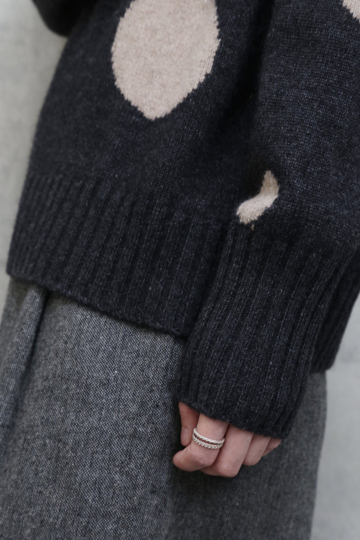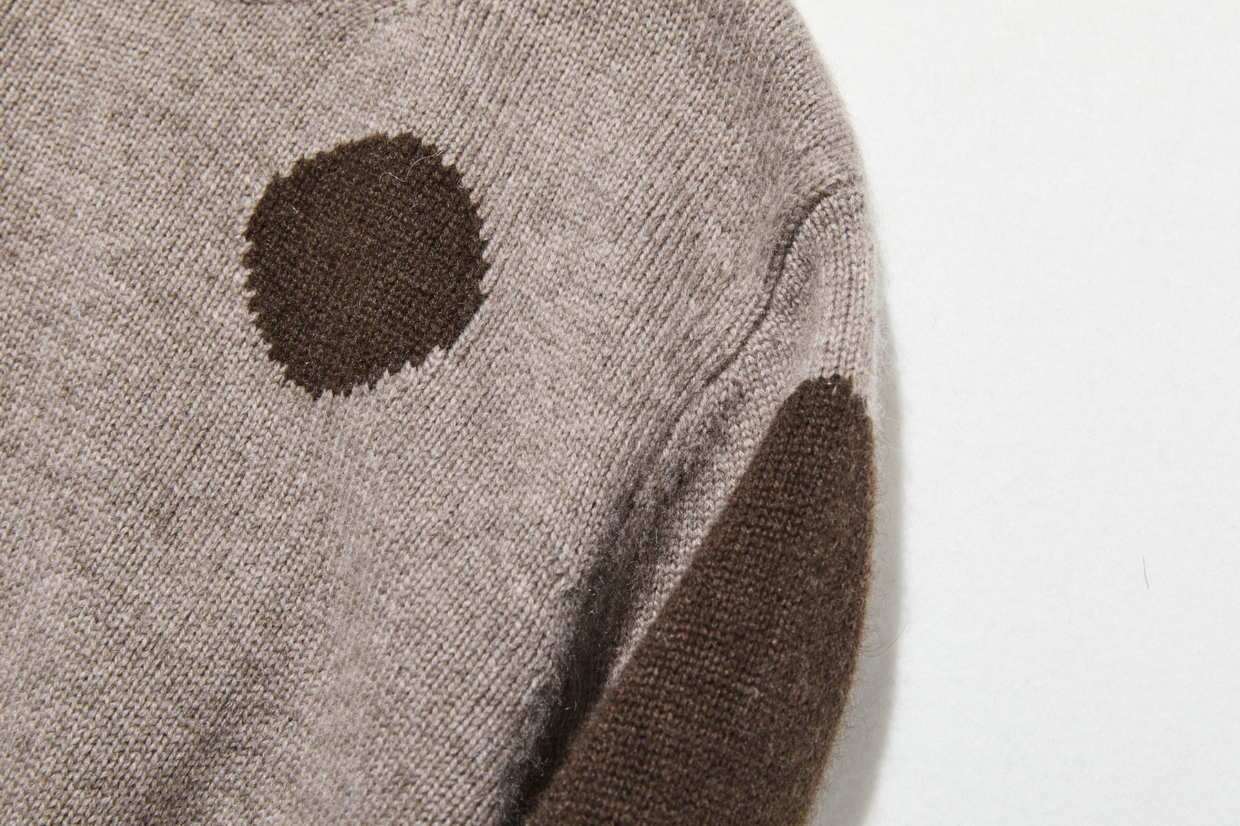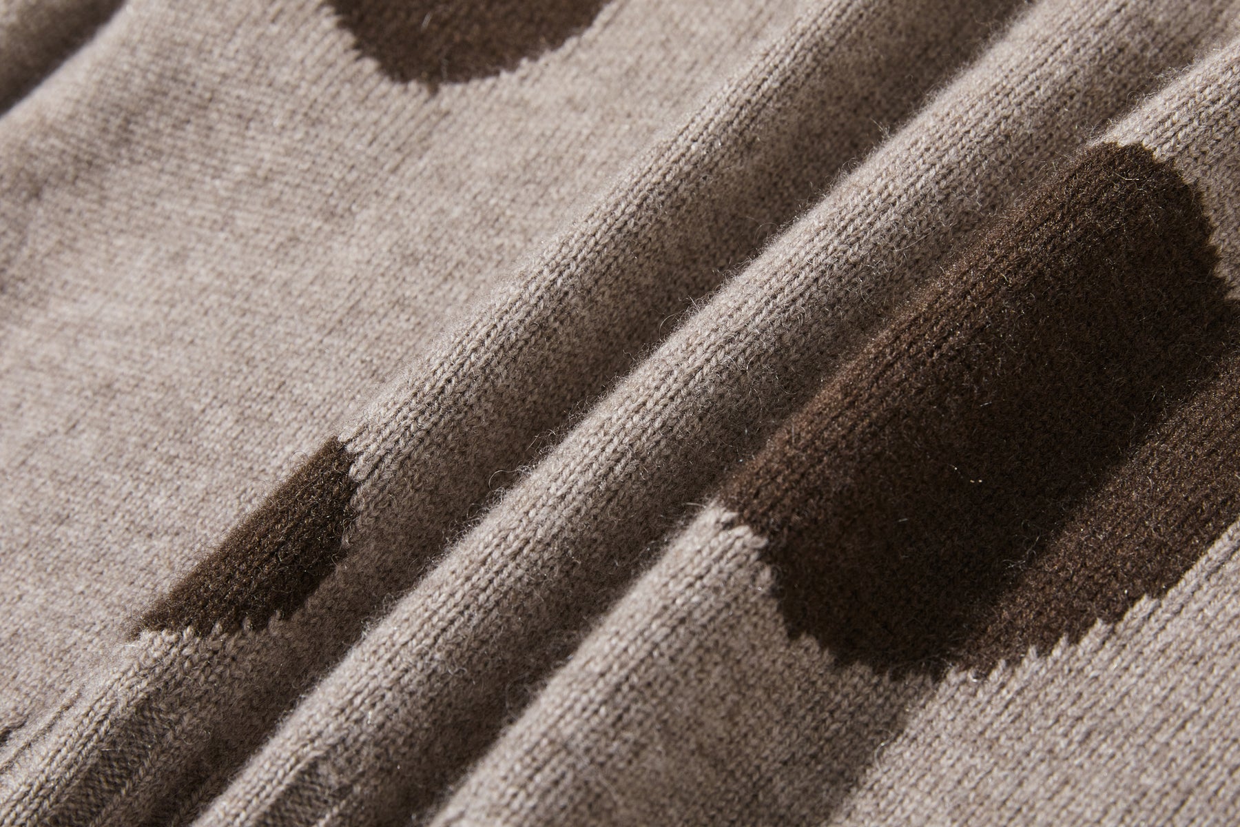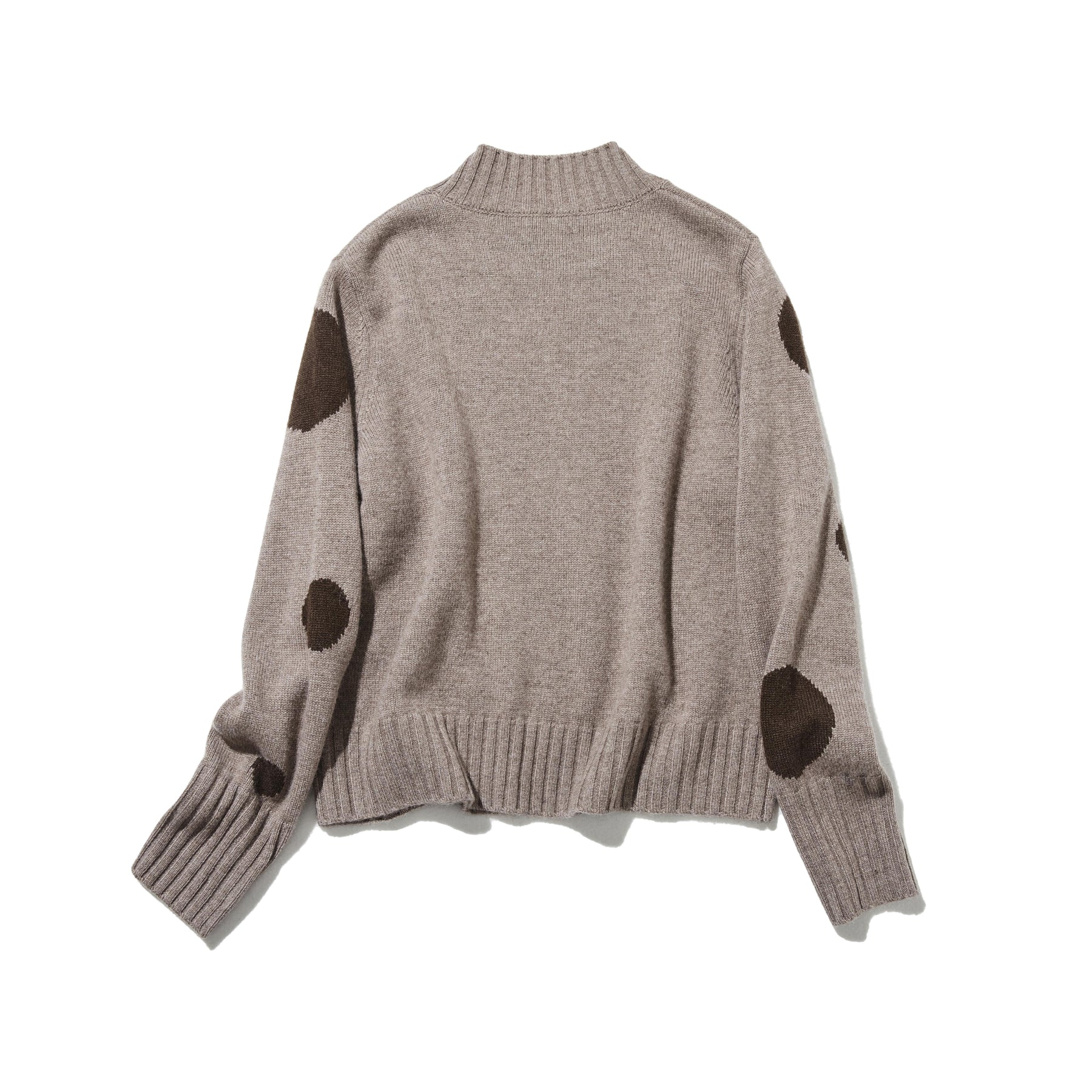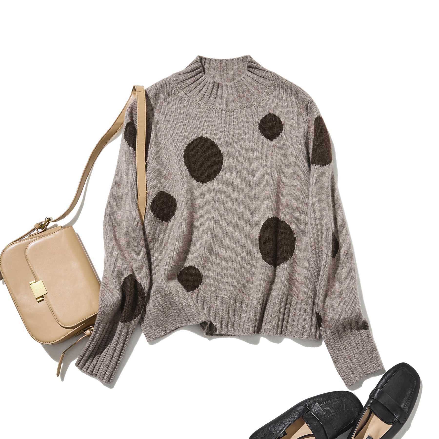 【至高の柔らかさ】ヤクダウン&ウール混紡 ドットニットプルオーバー セーター 251132毎日身に付けたくなる、その驚くべき柔らかさへ。本品は、希少なヤクのダウンと良質なウールを絶妙にブレンドした、ひと際優れた着心地のニットです。ヤクのダウンとは、ヤクの顎や腹部など、限られた部位からしか採取できない、とても繊細な産毛のこと。一般的なウールよりもはるかに柔らかく、なめらかな肌触りが最大の特長です。【他素材と比較したその実力】• 保温性: ウールより約30%高く、カシミアと同等の温かさ。• 通気性: カシミアよりも130%高く、蒸れにくく快適。• その他: 毛玉ができにくいという、嬉しい特長も。「柔らかくて温かいけど、重たくない」まさに理想的な素材を、ぜひその肌でお確かめください。【デザインのこだわり】前面と袖に散りばめられた、大小のフラットなドットが印象的なプルオーバー。どこかレトロで遊び心のあるデザインながら、シンプルな色合いが品の良さをアップします。ゆったりめのシルエットで、身体を包み込むようなリラックスした着心地も魅力のひとつ。甘すぎず、おしゃれな大人の雰囲気を叶えます。【コーディネート例】• 定番スタイル: シンプルな色のデニムやチノパンと合わせて、カジュアルでありながら上品な印象に。• レディースなら: スキニーパンツやスカートにインして、ゆとり感のあるシルエットを活かした「ゆるカジ」スタイルがおすすめ。• レイヤードスタイル: 襟元から色や柄がのぞくように、ワイシャツやタイトなタートルネックの上から着るのもおしゃれです。このニット一枚で、春・秋・冬と、三シーズンを通して快適な着心地をお楽しみいただけます。プレミアムな素材感と、飽きの来ないデザイン。ぜひ、お手元に迎えていただきたい一枚です。素材:ヤクダウン49.1%ウール31.7%ナイロン9.8%アクリル9.4%サイズ:身丈55cm肩幅40cmバスト102cm袖丈61cmアームホール46cm首回り37cm袖口17cm裾98cmモデルさんの身長:155cm透け感:なし裏地:なしポケット:なし伸縮性:あり光沢感:なしシーズン:春、秋、冬