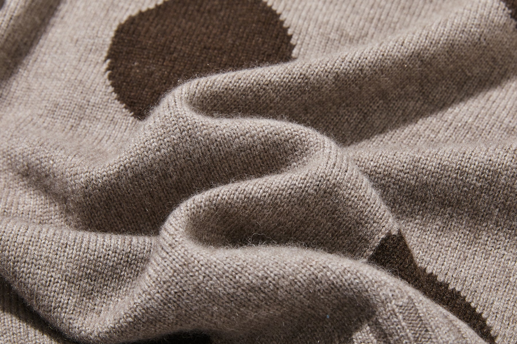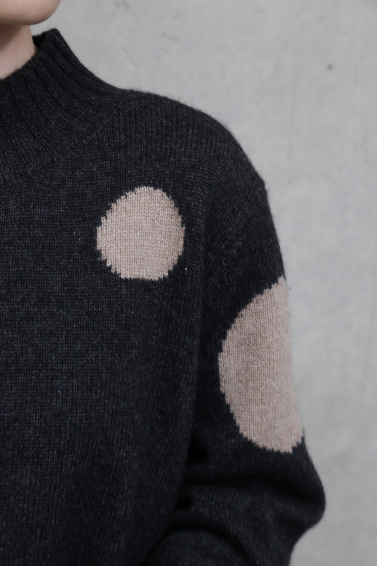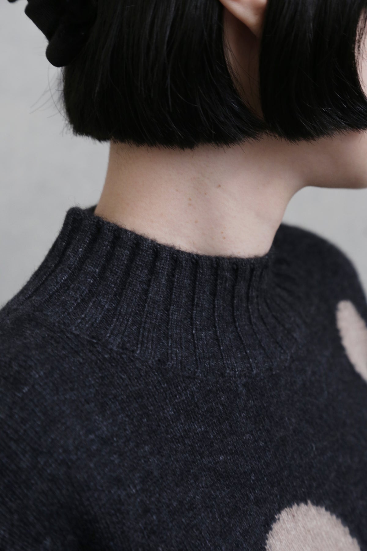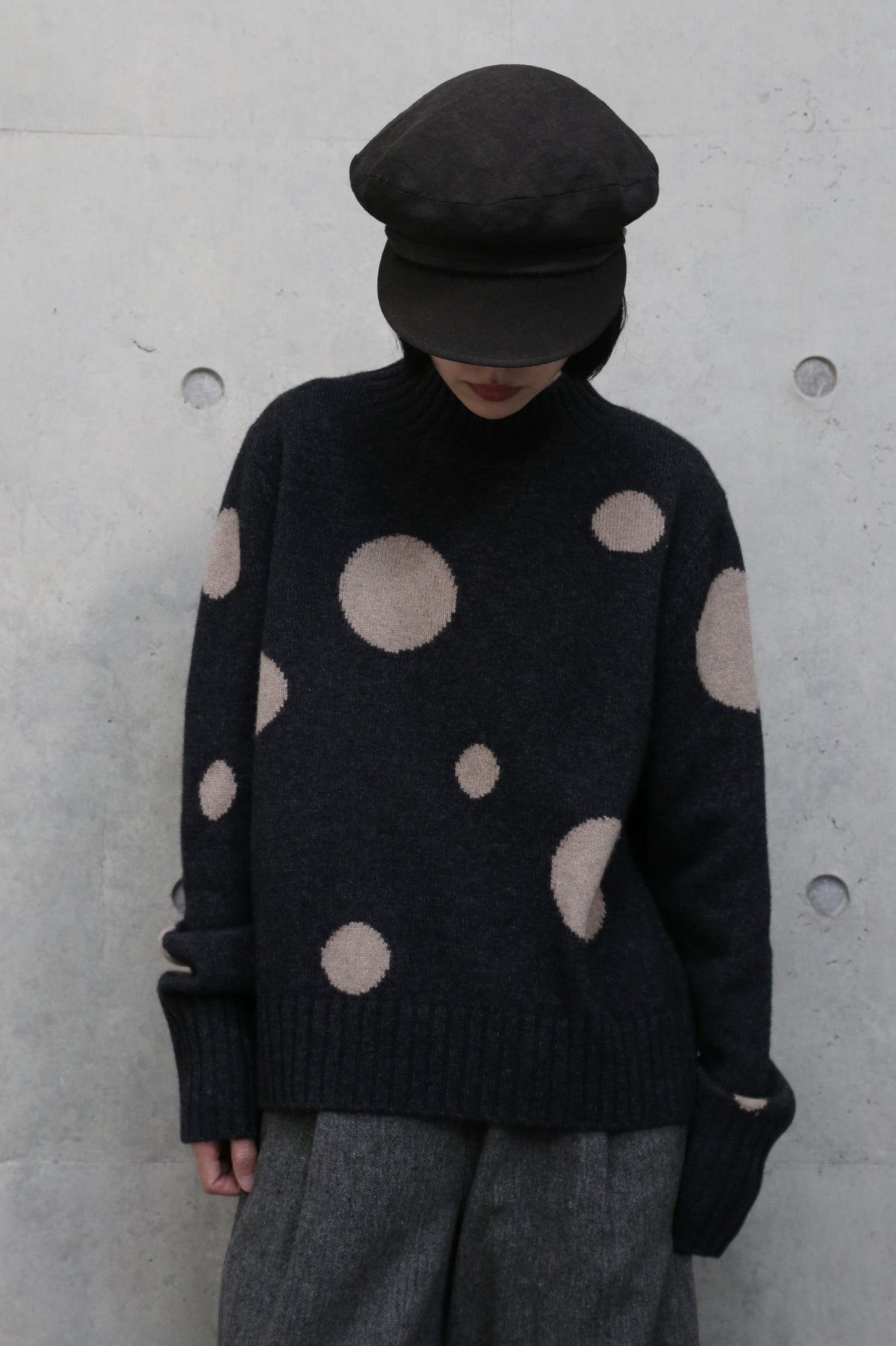 【至高の柔らかさ】ヤクダウン&ウール混紡 ドットニットプルオーバー セーター 251132毎日身に付けたくなる、その驚くべき柔らかさへ。本品は、希少なヤクのダウンと良質なウールを絶妙にブレンドした、ひと際優れた着心地のニットです。ヤクのダウンとは、ヤクの顎や腹部など、限られた部位からしか採取できない、とても繊細な産毛のこと。一般的なウールよりもはるかに柔らかく、なめらかな肌触りが最大の特長です。【他素材と比較したその実力】• 保温性: ウールより約30%高く、カシミアと同等の温かさ。• 通気性: カシミアよりも130%高く、蒸れにくく快適。• その他: 毛玉ができにくいという、嬉しい特長も。「柔らかくて温かいけど、重たくない」まさに理想的な素材を、ぜひその肌でお確かめください。【デザインのこだわり】前面と袖に散りばめられた、大小のフラットなドットが印象的なプルオーバー。どこかレトロで遊び心のあるデザインながら、シンプルな色合いが品の良さをアップします。ゆったりめのシルエットで、身体を包み込むようなリラックスした着心地も魅力のひとつ。甘すぎず、おしゃれな大人の雰囲気を叶えます。【コーディネート例】• 定番スタイル: シンプルな色のデニムやチノパンと合わせて、カジュアルでありながら上品な印象に。• レディースなら: スキニーパンツやスカートにインして、ゆとり感のあるシルエットを活かした「ゆるカジ」スタイルがおすすめ。• レイヤードスタイル: 襟元から色や柄がのぞくように、ワイシャツやタイトなタートルネックの上から着るのもおしゃれです。このニット一枚で、春・秋・冬と、三シーズンを通して快適な着心地をお楽しみいただけます。プレミアムな素材感と、飽きの来ないデザイン。ぜひ、お手元に迎えていただきたい一枚です。素材:ヤクダウン49.1%ウール31.7%ナイロン9.8%アクリル9.4%サイズ:身丈55cm肩幅40cmバスト102cm袖丈61cmアームホール46cm首回り37cm袖口17cm裾98cmモデルさんの身長:155cm透け感:なし裏地:なしポケット:なし伸縮性:あり光沢感:なしシーズン:春、秋、冬