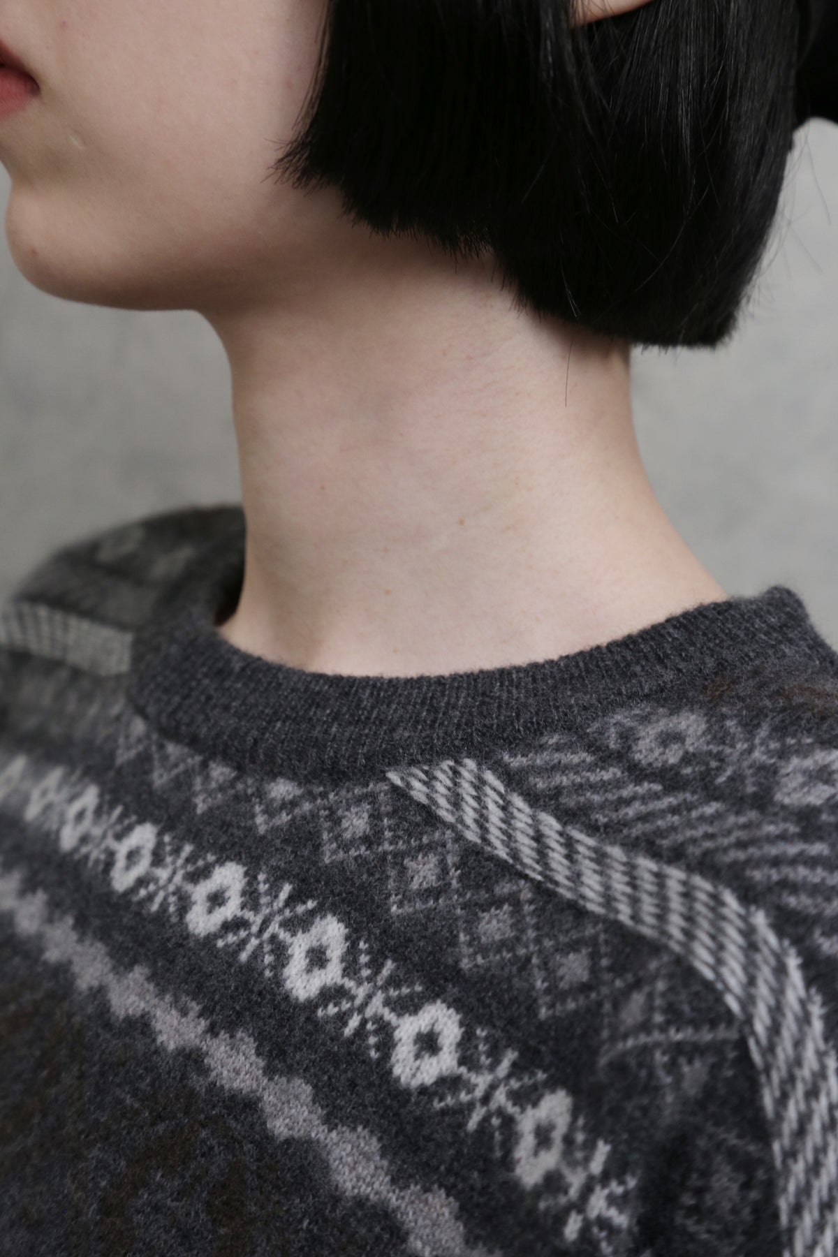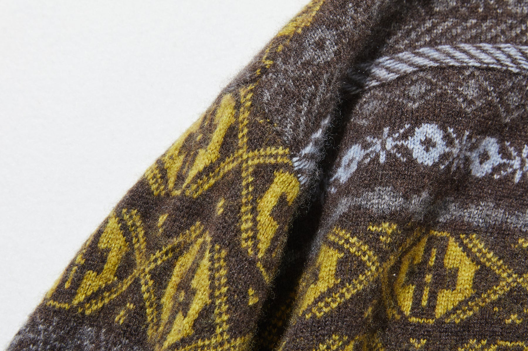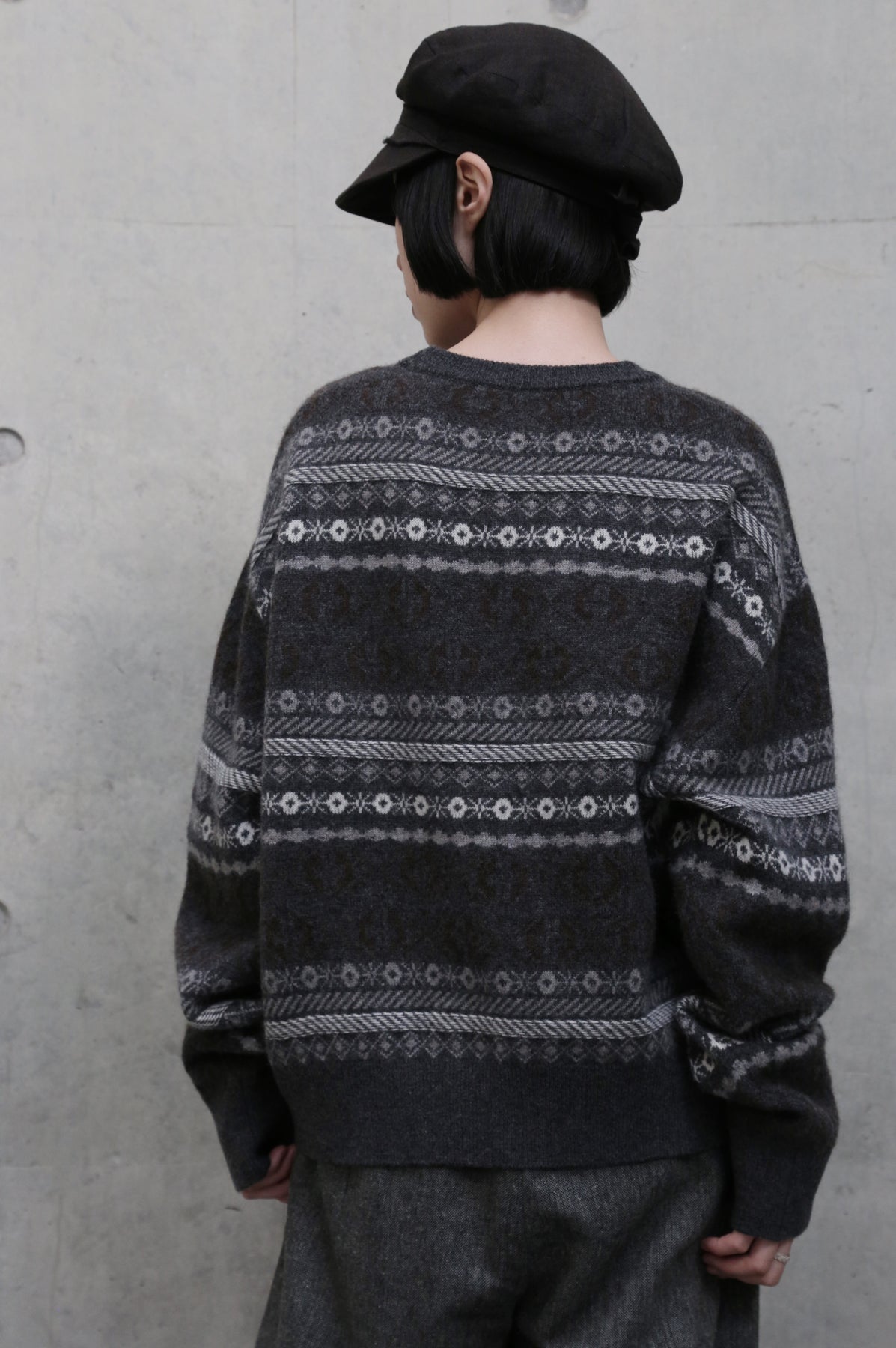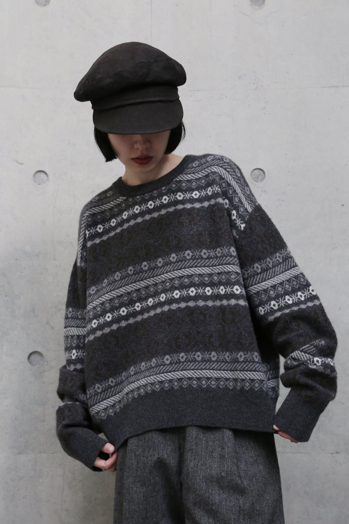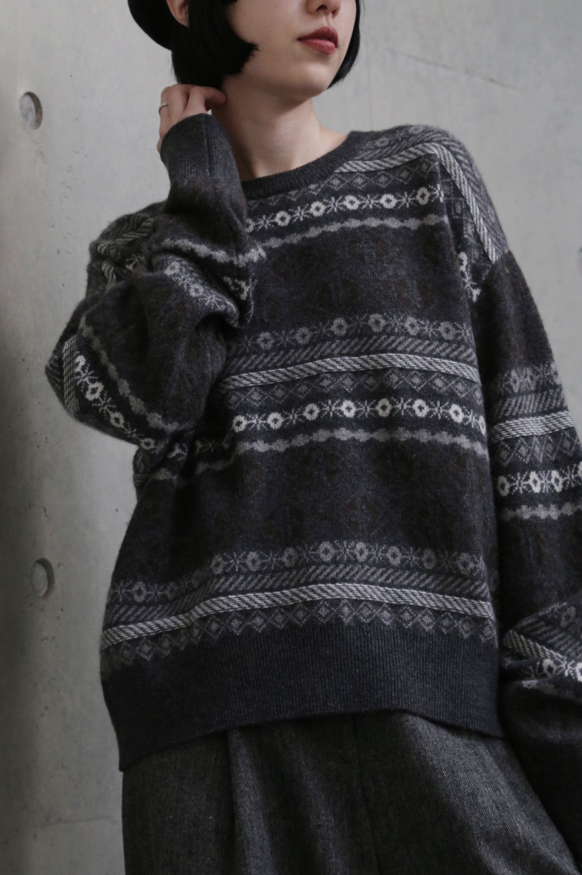 一枚であたたかく、華やか。北欧風ジャガードが彩る、ウールとカシミヤ混紡ニット セーター 251205寒い季節に、あたたかさと上質な「着映え」を一枚で叶えてくれる、特別なニットをご紹介します。クラシックで洗練された北欧風のフェアアイル柄が、日常にほんのりとした華やぎと温もりをプラスします。◆ クラシックで上品な「ジャガード・ボーダー柄」一目を引くのは、色とりどりの糸で織りなされる北欧風のフェアアイルボーダー柄です。一つひとつの配色にこだわり、古風すぎずモダンな印象に仕上げました。シンプルなコーディネートにさりげなく加えれば、それだけで華やかなアクセントに。どこか懐かしく、どこか新しい、特別感のあるデザインです。◆ 着るだけでこなれ感が生まれる、リラックスシルエット肩の力が抜けたこなれた印象を生むのは、ゆったりとしたドロップショルダーデザイン。柔らかな風合いの糸が、ふっくらとした柔らかなボリューム感を作り出し、身体を優しく包み込みます。適度な厚みで保温性も抜群。着込むほどに味わいが増す、愛着のわく一枚です。◆ 着回しを考えた、絶妙なデザインバランスやや短めの丈:ボトムスのウエストラインをすっきり見せ、バランスの良いプロポーションを作ります。重ね着にも対応:シャツの襟元を覗かせたり、スカートの上から着るなど、季節に合わせたレイヤードスタイルも自由自在。◆ スタイリング提案:あなたの「日常」を少し特別にナチュラルで優しい雰囲気にデニムやコーデュロイのパンツ、Aラインのスカートと合わせると、柔らかで親しみやすい日常スタイルが完成。ナチュラルカラーの小物を合わせて、ほっこりとした印象に。こなれたスマートカジュアルにレザースカートやスラックス、ウールのストレートパンツと組み合わせれば、きれいめになりすぎない、洗練された大人のカジュアルスタイルが叶います。少しモードな小物を加えると、さらに印象的です。レイヤードのアクセントにシャツやブラウスの上から着て、襟や袖口を出せば、立体感と彩りが加わり、重ね着の面白さが広がります。アウターの下に着込んでも、首元の華やかさがアクセントになります。素材の柔らかさ、シルエットのこなれ感、そしてどこか懐かしい特別な柄。この冬、あなたの「普段着」に新しい彩りとあたたかさを届ける、頼もしい一枚です。素材:ウール58.5%カシミヤ10.3%ナイロン31.2%サイズ:身丈56cm肩幅55cm袖丈59cmバスト118cm首回り52cm袖口20cm裾92cmモデルさんの身長:155cm透け感:なし裏地:なしポケット:なし伸縮性:あり光沢感:なしシーズン:春、秋、冬