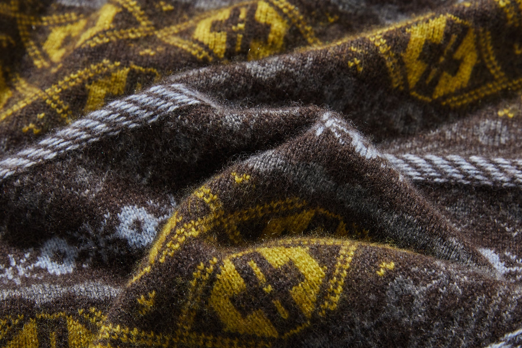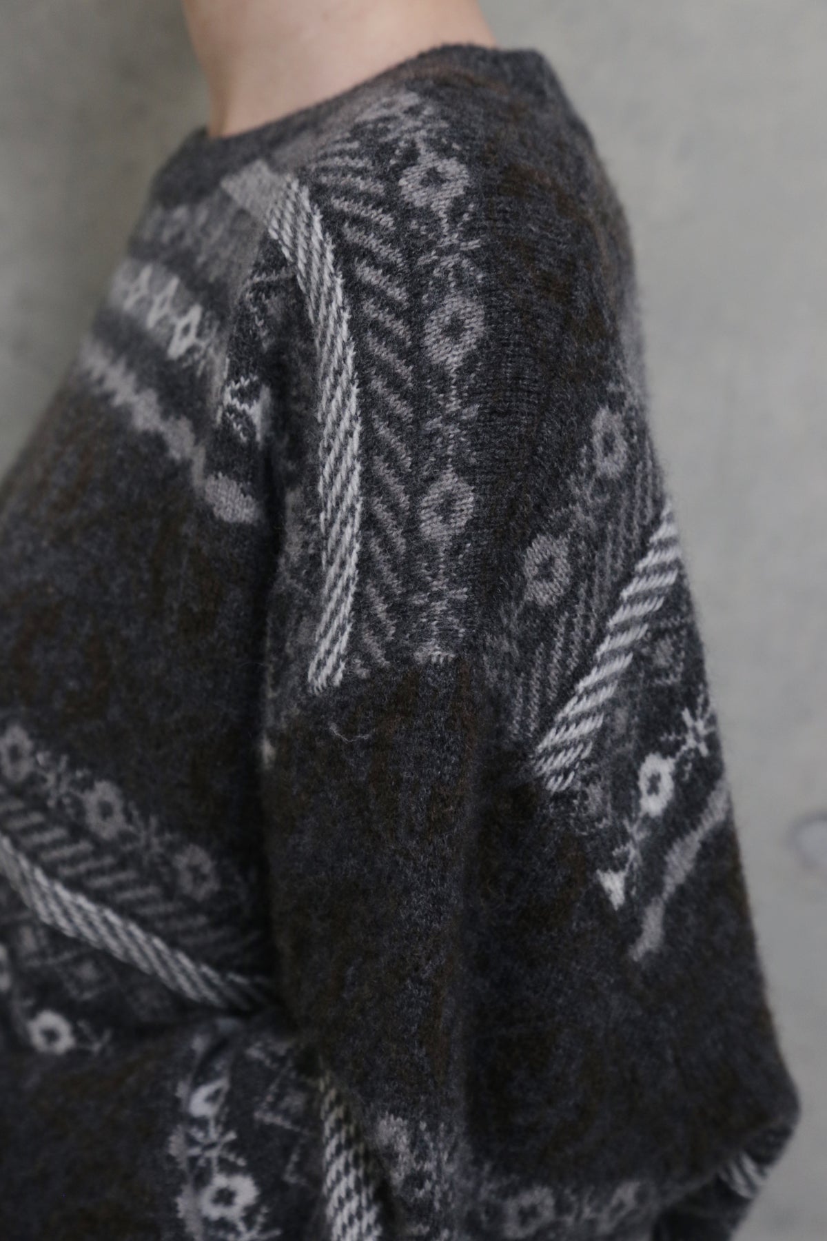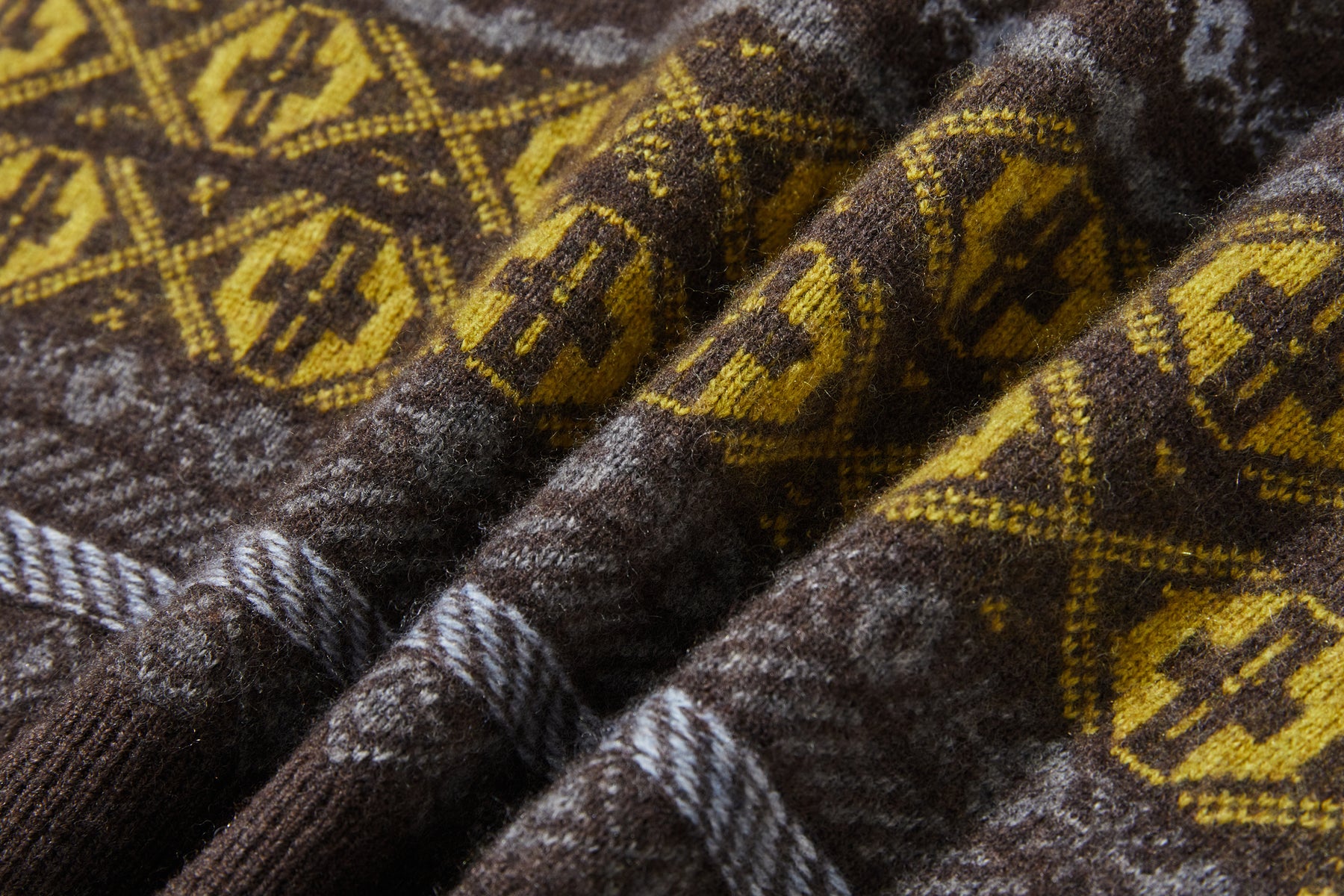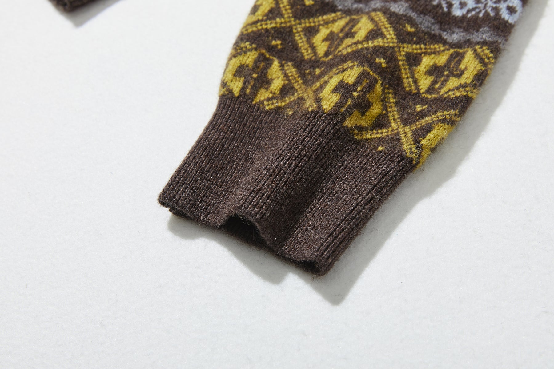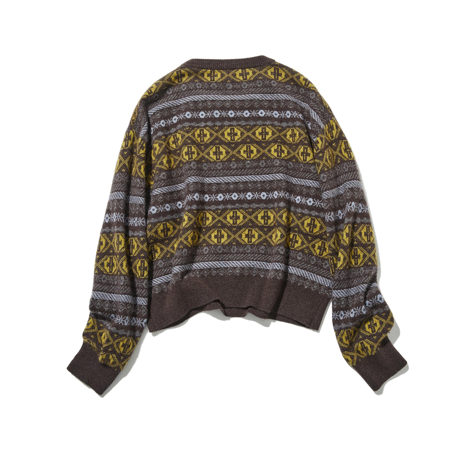 一枚であたたかく、華やか。北欧風ジャガードが彩る、ウールとカシミヤ混紡ニット セーター 251205寒い季節に、あたたかさと上質な「着映え」を一枚で叶えてくれる、特別なニットをご紹介します。クラシックで洗練された北欧風のフェアアイル柄が、日常にほんのりとした華やぎと温もりをプラスします。◆ クラシックで上品な「ジャガード・ボーダー柄」一目を引くのは、色とりどりの糸で織りなされる北欧風のフェアアイルボーダー柄です。一つひとつの配色にこだわり、古風すぎずモダンな印象に仕上げました。シンプルなコーディネートにさりげなく加えれば、それだけで華やかなアクセントに。どこか懐かしく、どこか新しい、特別感のあるデザインです。◆ 着るだけでこなれ感が生まれる、リラックスシルエット肩の力が抜けたこなれた印象を生むのは、ゆったりとしたドロップショルダーデザイン。柔らかな風合いの糸が、ふっくらとした柔らかなボリューム感を作り出し、身体を優しく包み込みます。適度な厚みで保温性も抜群。着込むほどに味わいが増す、愛着のわく一枚です。◆ 着回しを考えた、絶妙なデザインバランスやや短めの丈:ボトムスのウエストラインをすっきり見せ、バランスの良いプロポーションを作ります。重ね着にも対応:シャツの襟元を覗かせたり、スカートの上から着るなど、季節に合わせたレイヤードスタイルも自由自在。◆ スタイリング提案:あなたの「日常」を少し特別にナチュラルで優しい雰囲気にデニムやコーデュロイのパンツ、Aラインのスカートと合わせると、柔らかで親しみやすい日常スタイルが完成。ナチュラルカラーの小物を合わせて、ほっこりとした印象に。こなれたスマートカジュアルにレザースカートやスラックス、ウールのストレートパンツと組み合わせれば、きれいめになりすぎない、洗練された大人のカジュアルスタイルが叶います。少しモードな小物を加えると、さらに印象的です。レイヤードのアクセントにシャツやブラウスの上から着て、襟や袖口を出せば、立体感と彩りが加わり、重ね着の面白さが広がります。アウターの下に着込んでも、首元の華やかさがアクセントになります。素材の柔らかさ、シルエットのこなれ感、そしてどこか懐かしい特別な柄。この冬、あなたの「普段着」に新しい彩りとあたたかさを届ける、頼もしい一枚です。素材:ウール58.5%カシミヤ10.3%ナイロン31.2%サイズ:身丈56cm肩幅55cm袖丈59cmバスト118cm首回り52cm袖口20cm裾92cmモデルさんの身長:155cm透け感:なし裏地:なしポケット:なし伸縮性:あり光沢感:なしシーズン:春、秋、冬