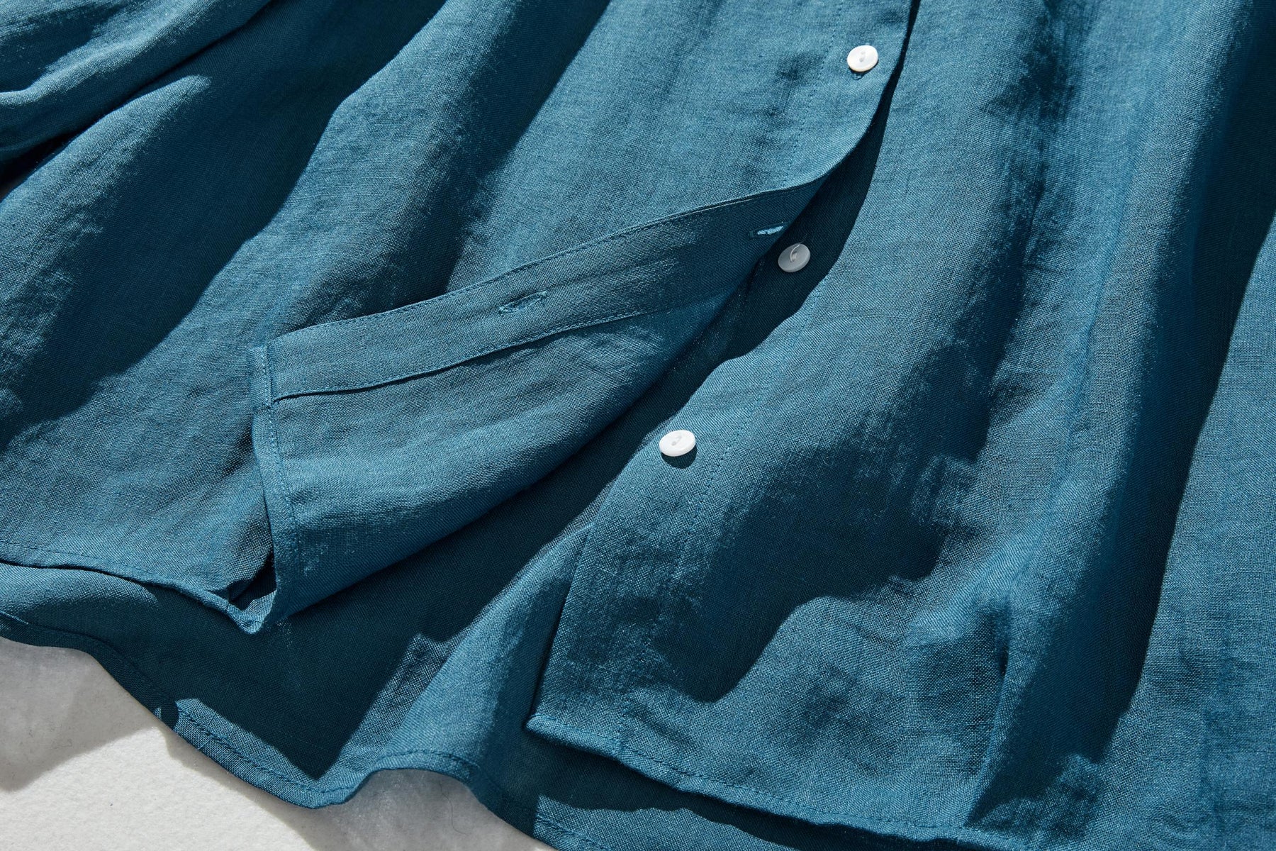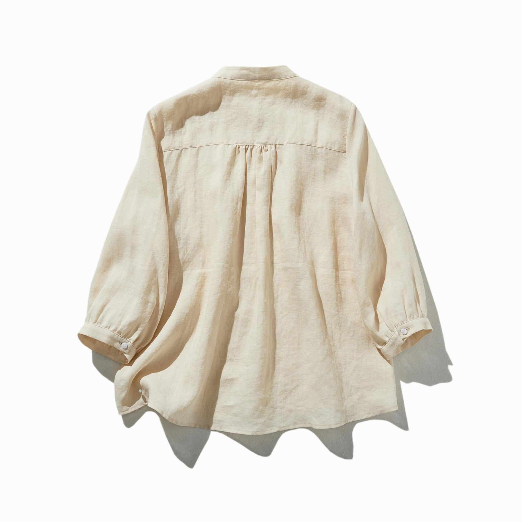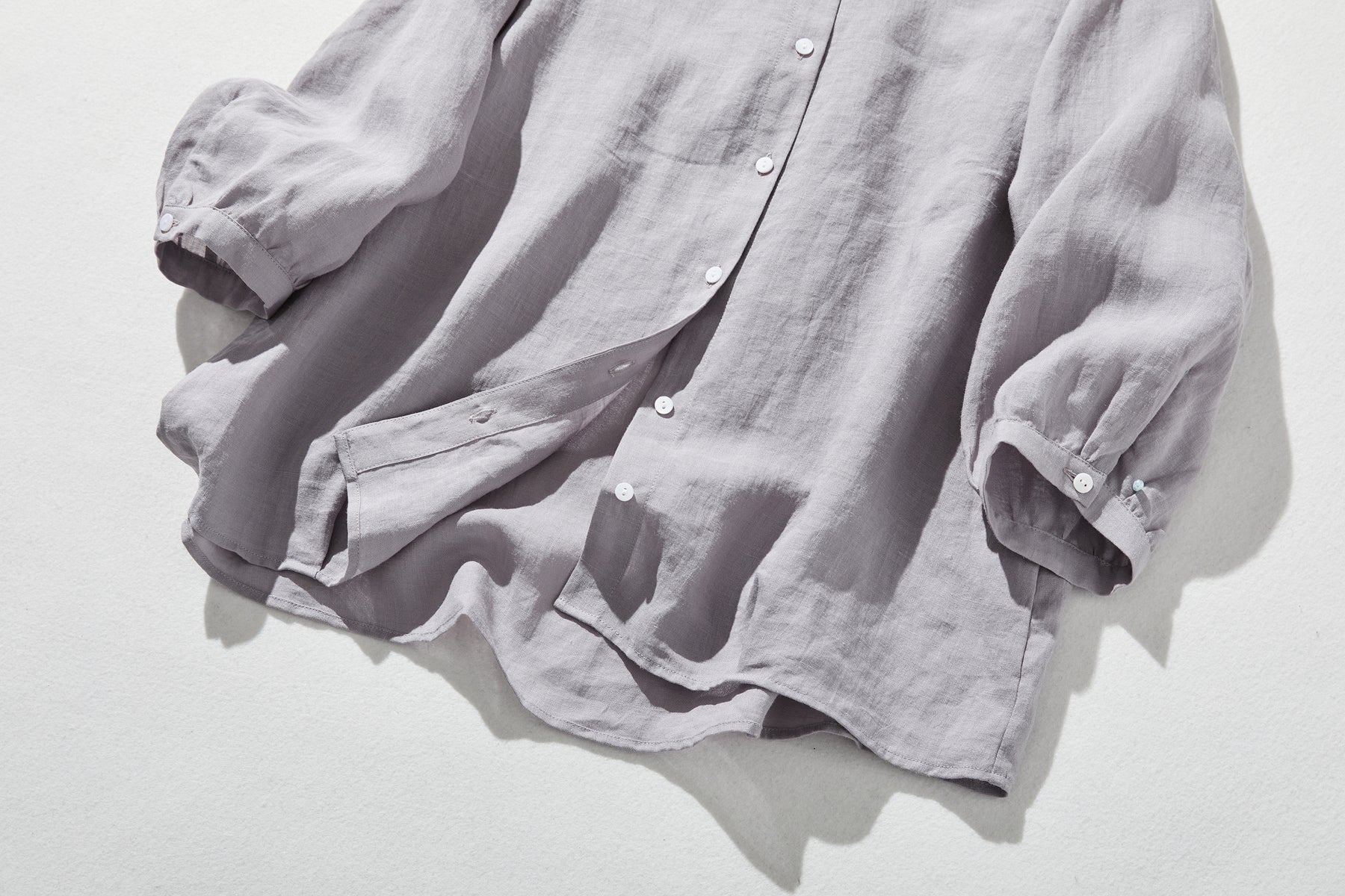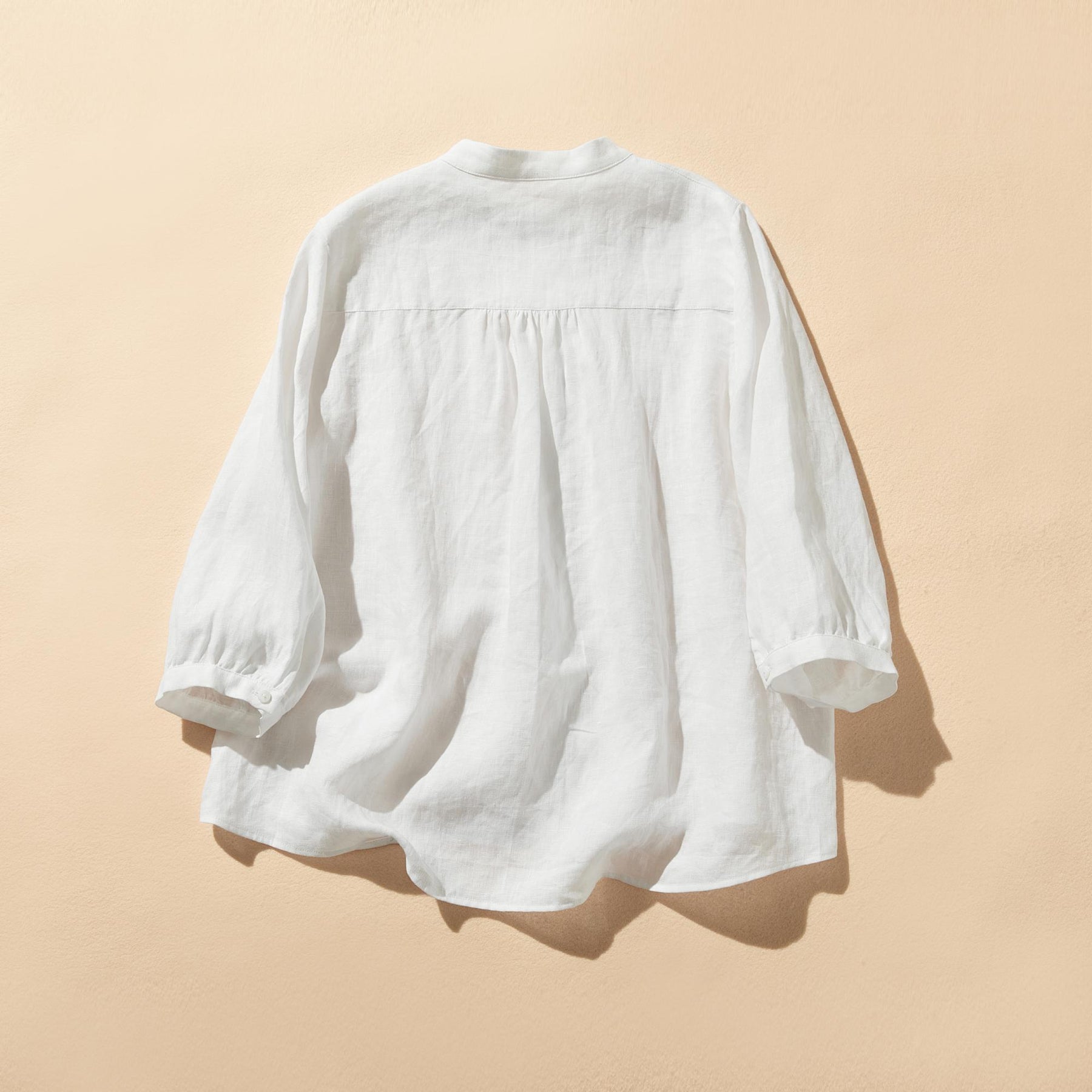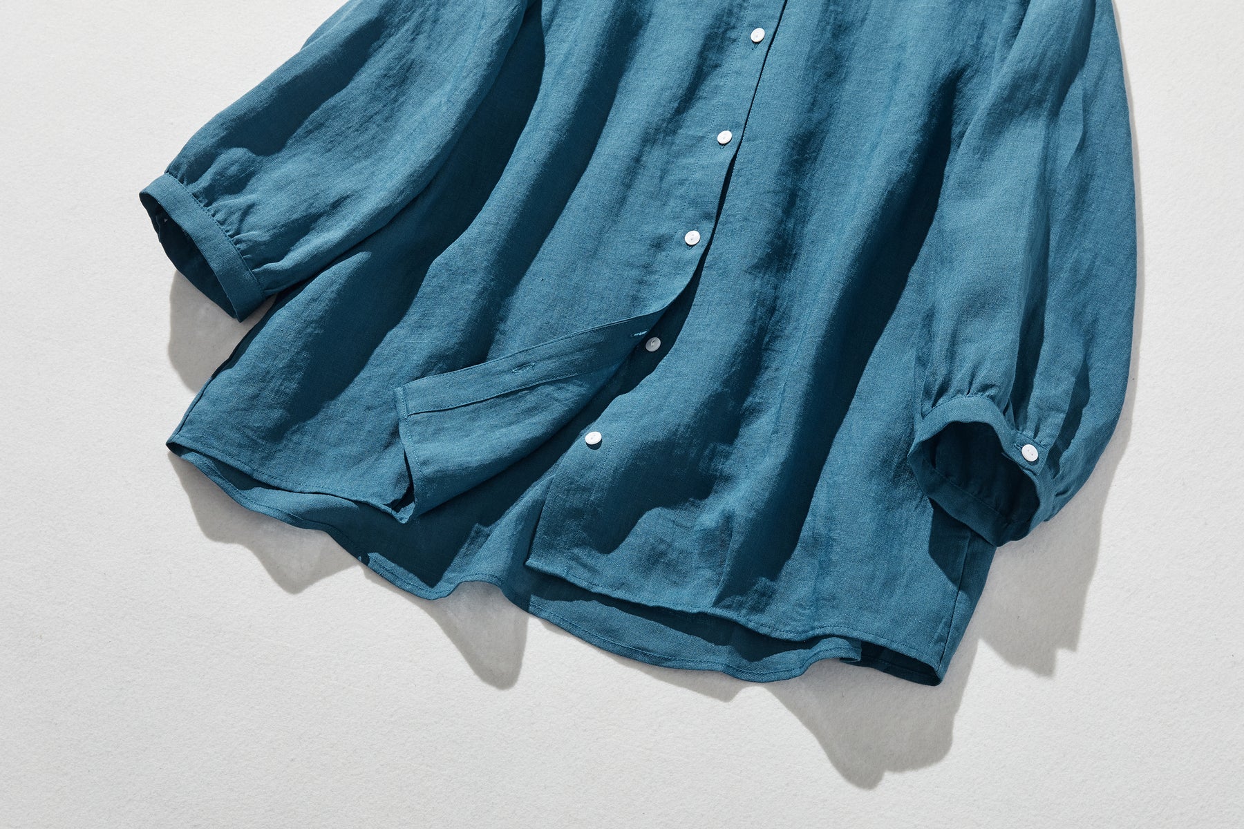 採用優質亞麻布料製成的襯衫,具有自然紋理四分之三袖襯衫 240503。 ★這款襯衫採用亞麻布料製成,為您的成人風格帶來清爽的感覺。 ★ 整齊的領子讓你平常的休閒風格顯得端莊。 ★衣身寬度較寬,後擺設有可擺動的大台階,營造出便於活動的輕鬆輪廓。 ★後下擺稍長,在兩側營造出一種表情,即使上衣外穿也很好看。 ★從前下擺處露出的圖案內襯也很不錯,增添了時尚的層次感。材料: 100% 亞麻尺寸:長度 前62cm 後67cm胸圍 112 厘米肩寬39厘米袖長44cm 袖口26厘米頸圍37cm袖窿52厘米下擺120厘米透明度: 輕微透明襯裡: 無口袋:無彈性:無光澤度:無季節: 春季, 夏季