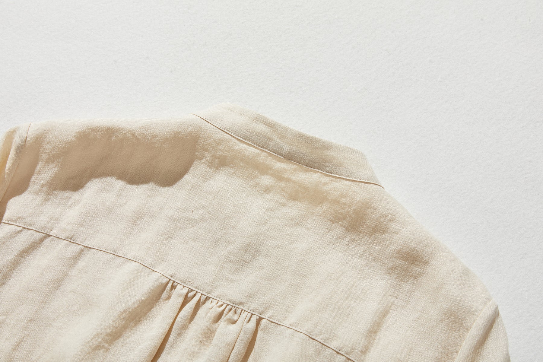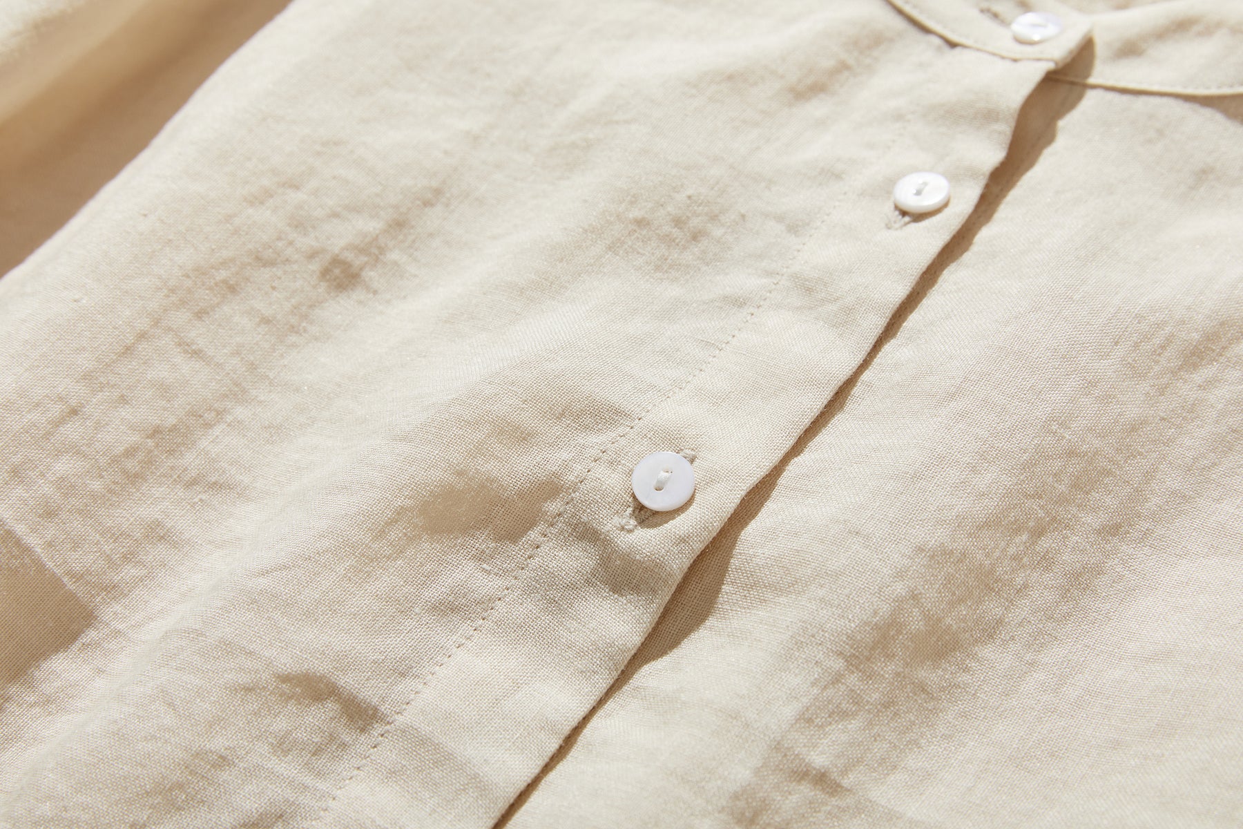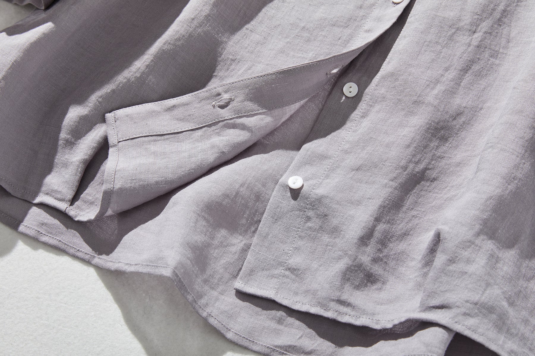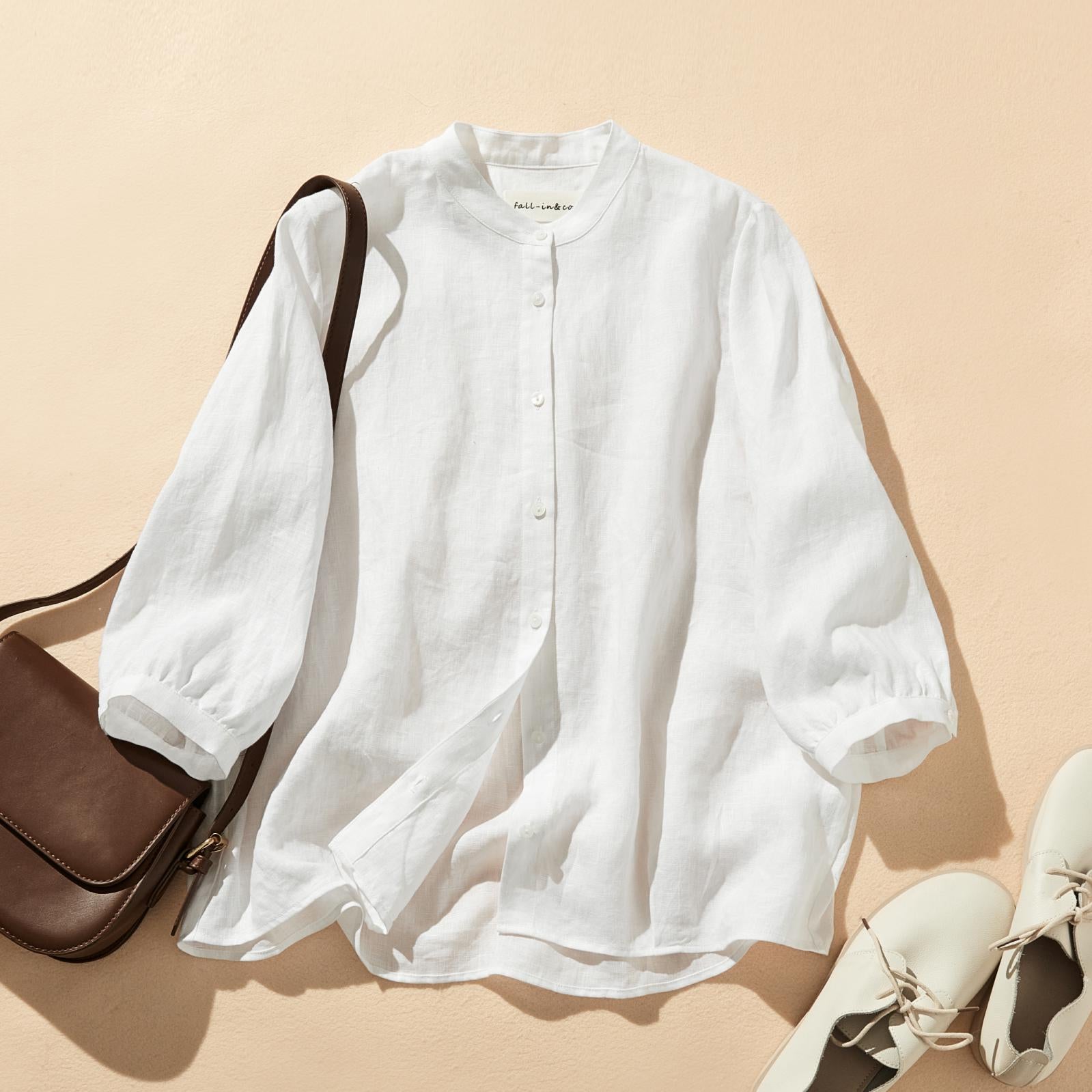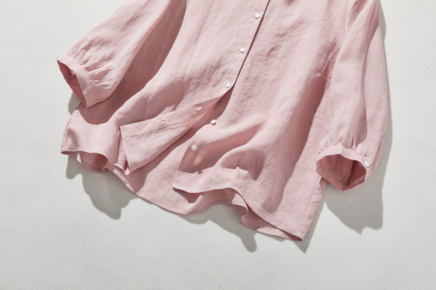 採用優質亞麻布料製成的襯衫,具有自然紋理四分之三袖襯衫 240503。 ★這款襯衫採用亞麻布料製成,為您的成人風格帶來清爽的感覺。 ★ 整齊的領子讓你平常的休閒風格顯得端莊。 ★衣身寬度較寬,後擺設有可擺動的大台階,營造出便於活動的輕鬆輪廓。 ★後下擺稍長,在兩側營造出一種表情,即使上衣外穿也很好看。 ★從前下擺處露出的圖案內襯也很不錯,增添了時尚的層次感。材料: 100% 亞麻尺寸:長度 前62cm 後67cm胸圍 112 厘米肩寬39厘米袖長44cm 袖口26厘米頸圍37cm袖窿52厘米下擺120厘米透明度: 輕微透明襯裡: 無口袋:無彈性:無光澤度:無季節: 春季, 夏季