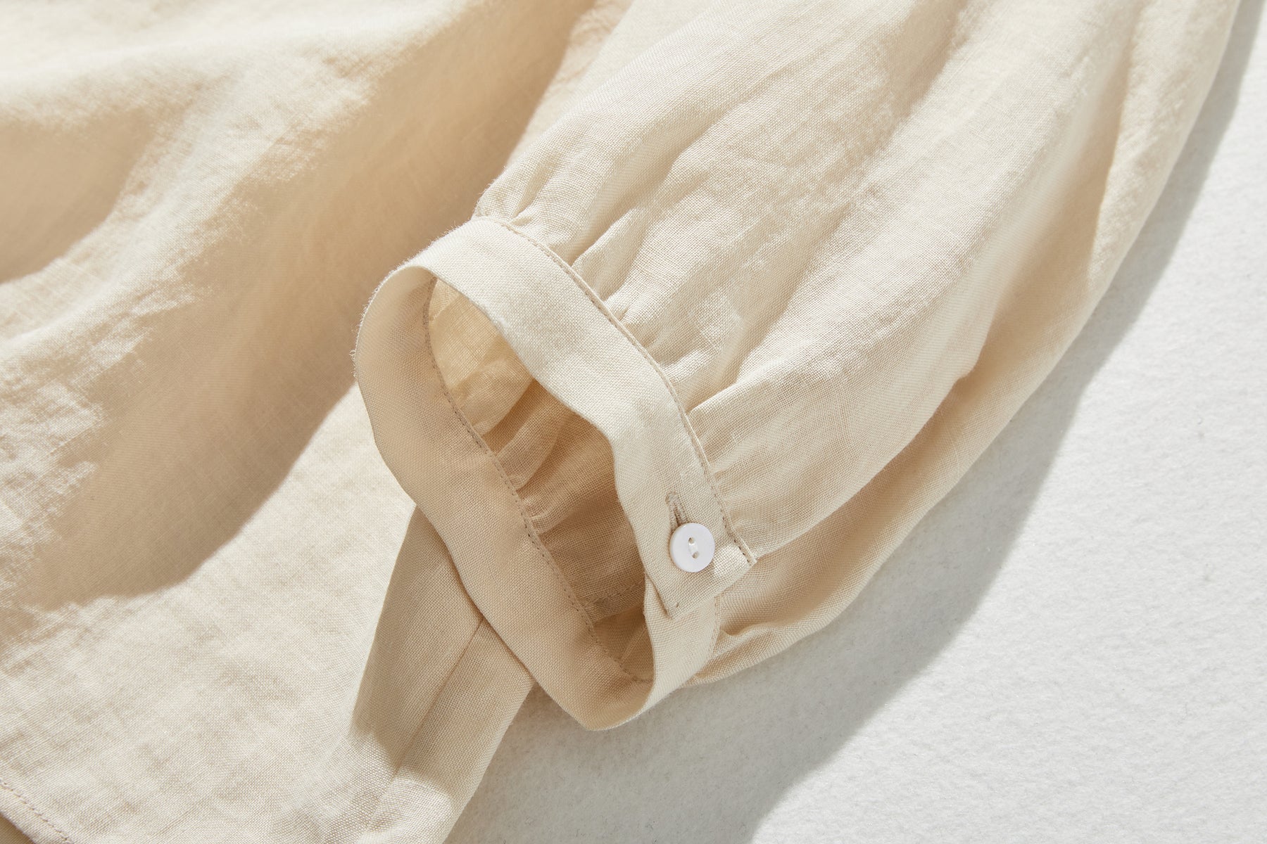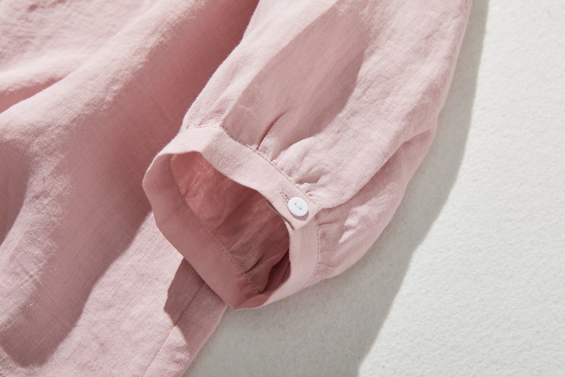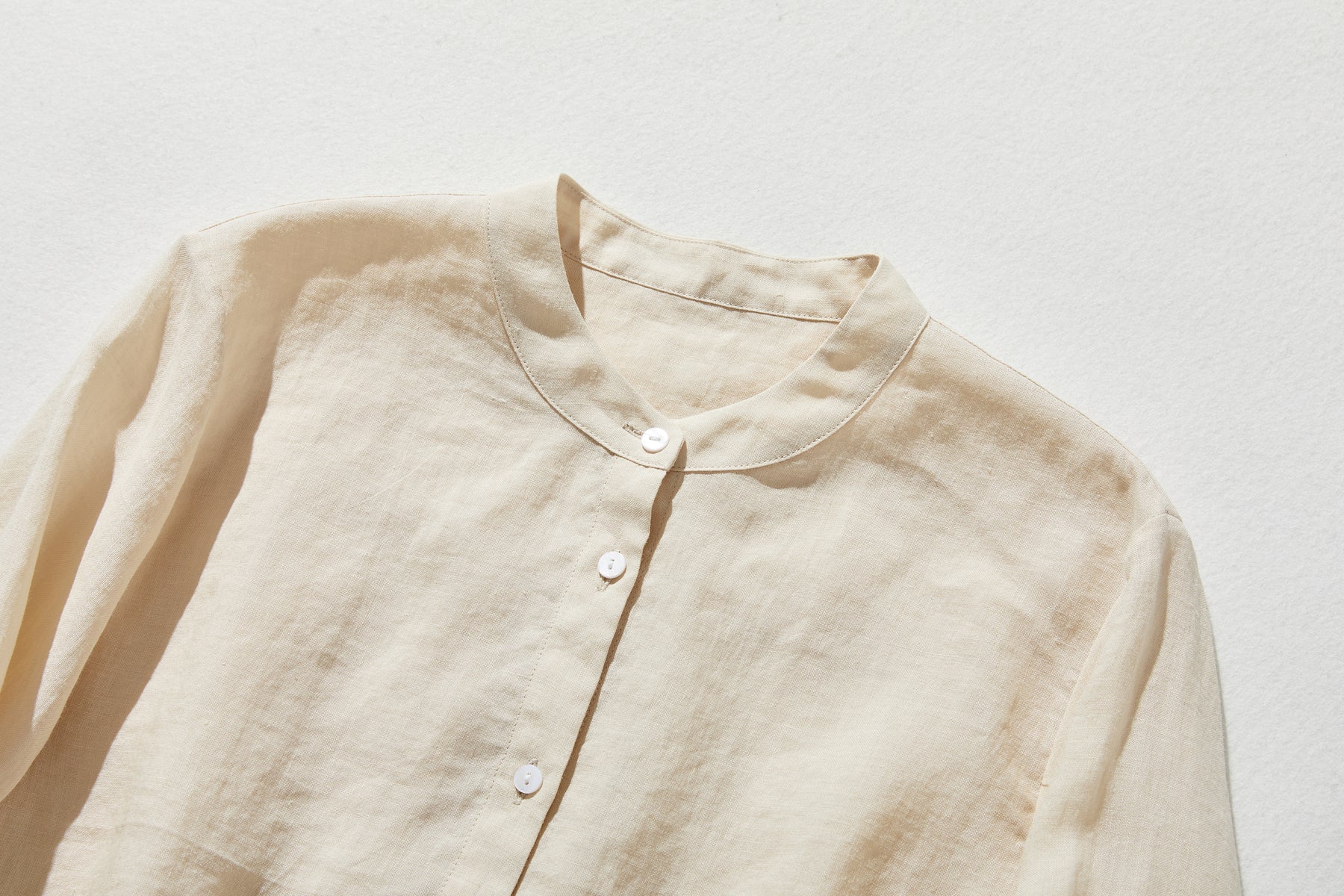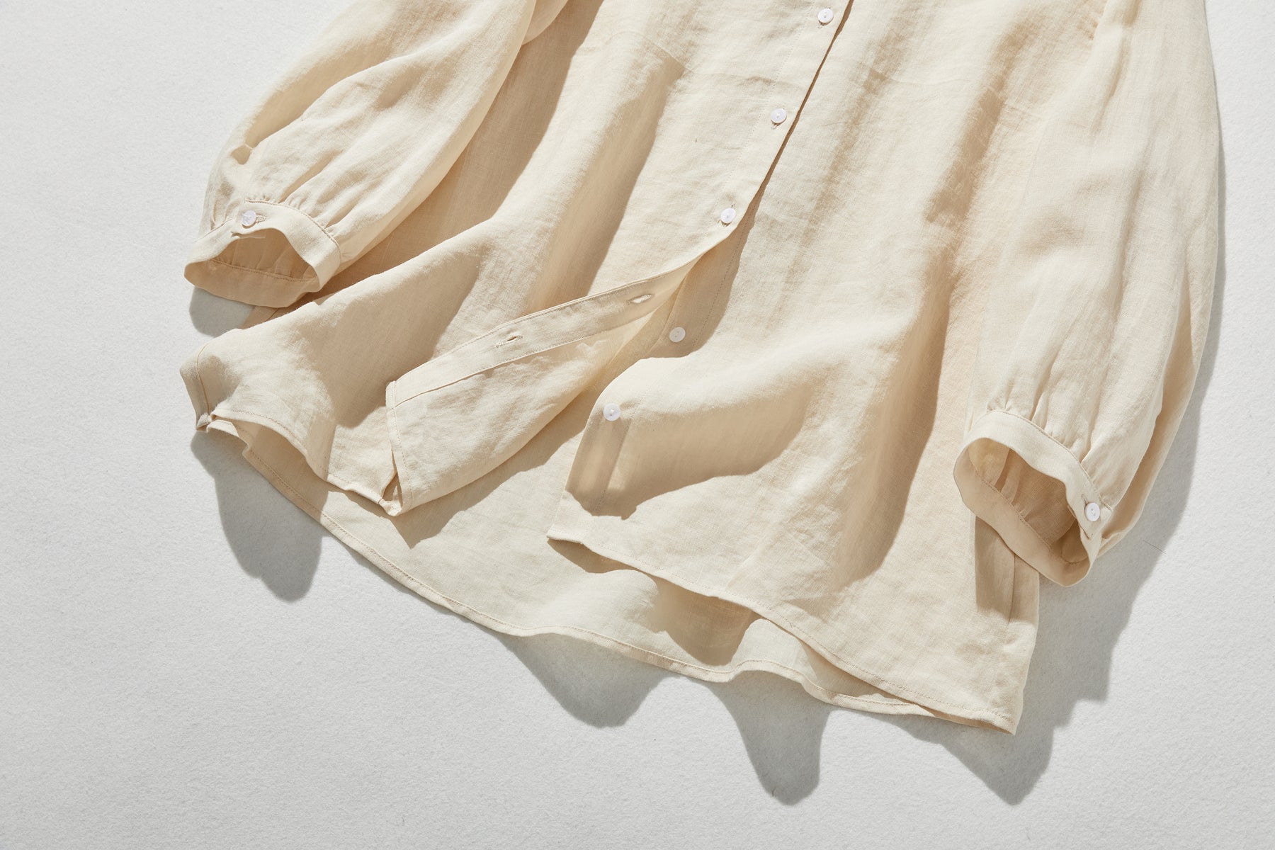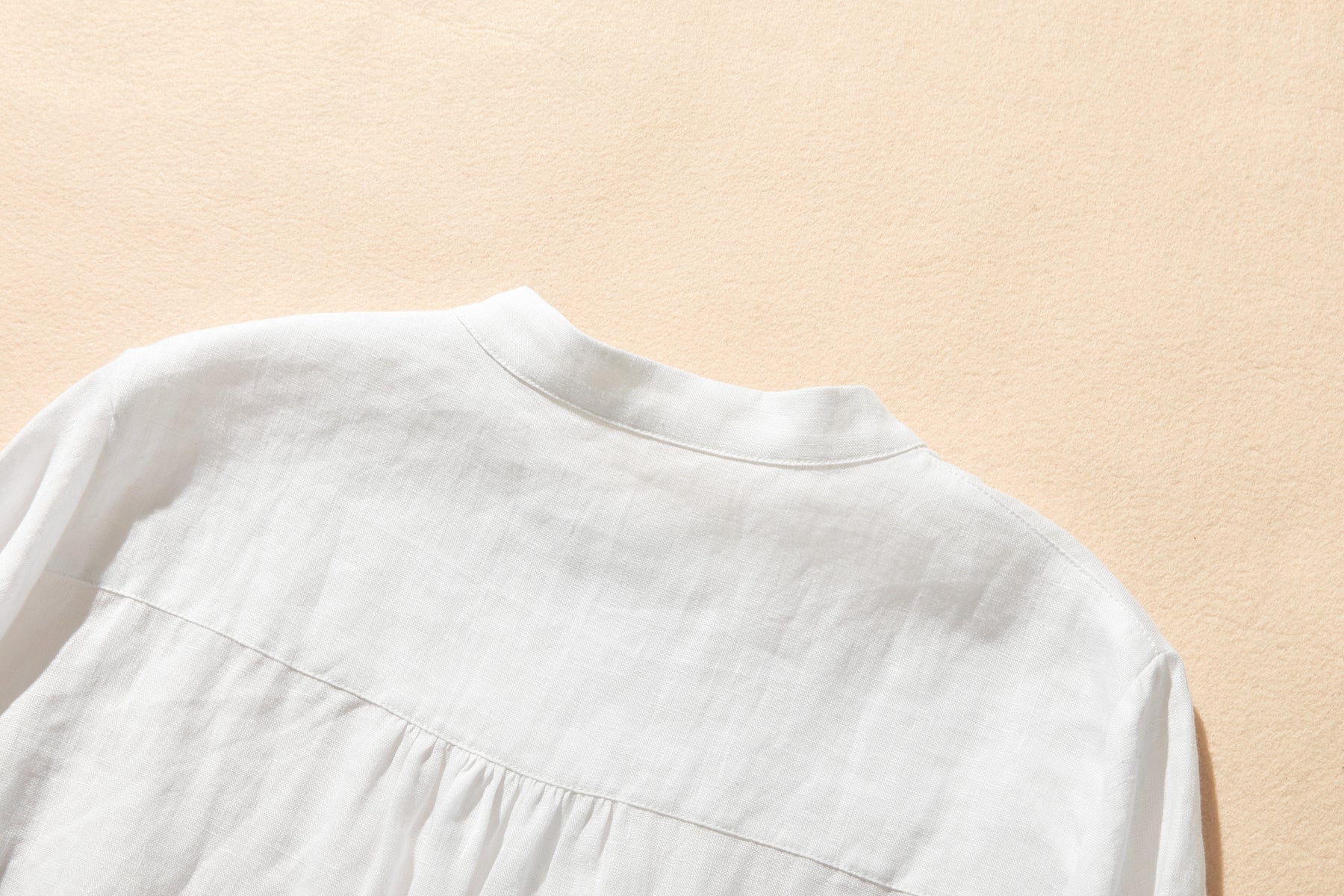 採用優質亞麻布料製成的襯衫,具有自然紋理四分之三袖襯衫 240503。 ★這款襯衫採用亞麻布料製成,為您的成人風格帶來清爽的感覺。 ★ 整齊的領子讓你平常的休閒風格顯得端莊。 ★衣身寬度較寬,後擺設有可擺動的大台階,營造出便於活動的輕鬆輪廓。 ★後下擺稍長,在兩側營造出一種表情,即使上衣外穿也很好看。 ★從前下擺處露出的圖案內襯也很不錯,增添了時尚的層次感。材料: 100% 亞麻尺寸:長度 前62cm 後67cm胸圍 112 厘米肩寬39厘米袖長44cm 袖口26厘米頸圍37cm袖窿52厘米下擺120厘米透明度: 輕微透明襯裡: 無口袋:無彈性:無光澤度:無季節: 春季, 夏季