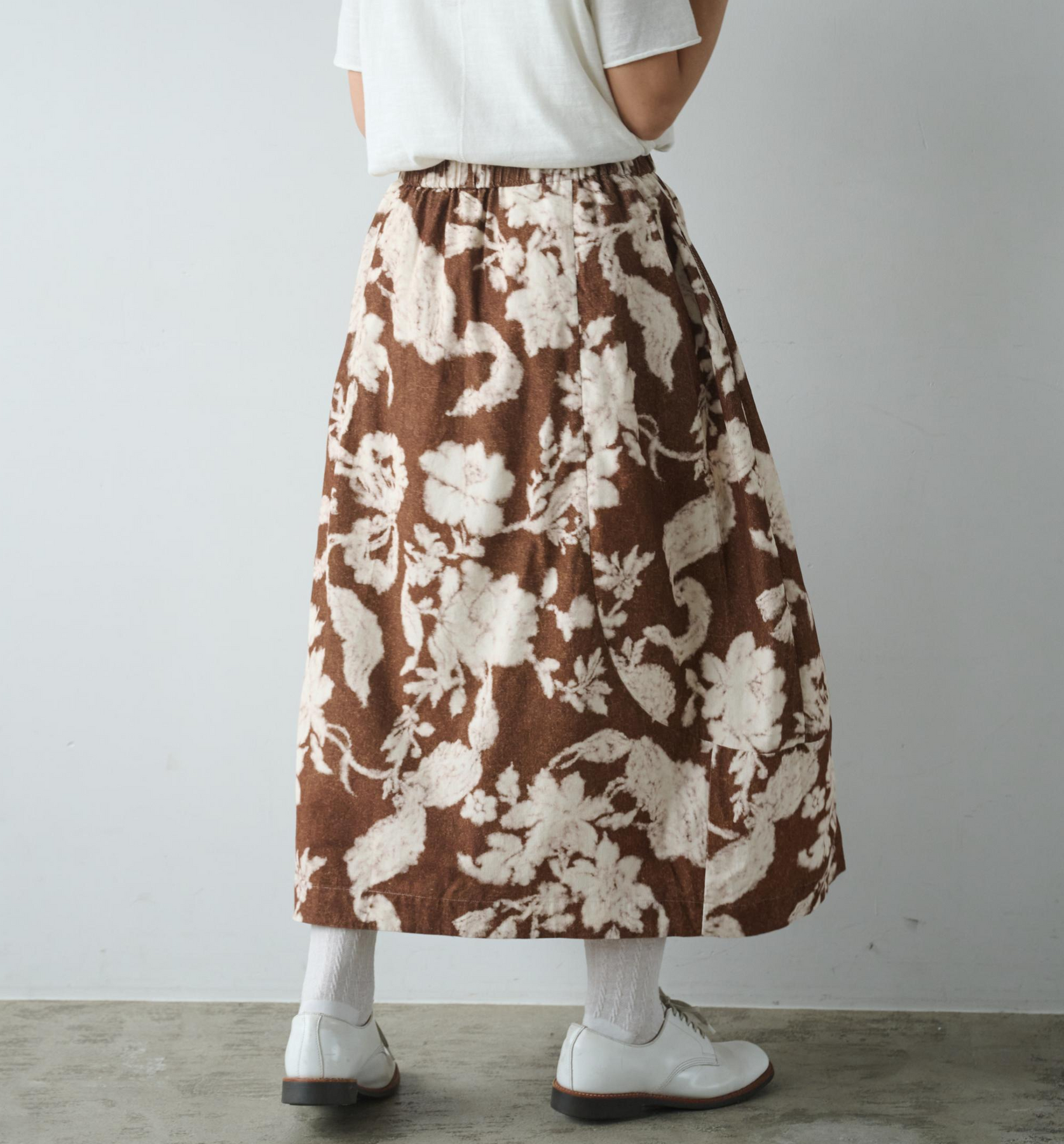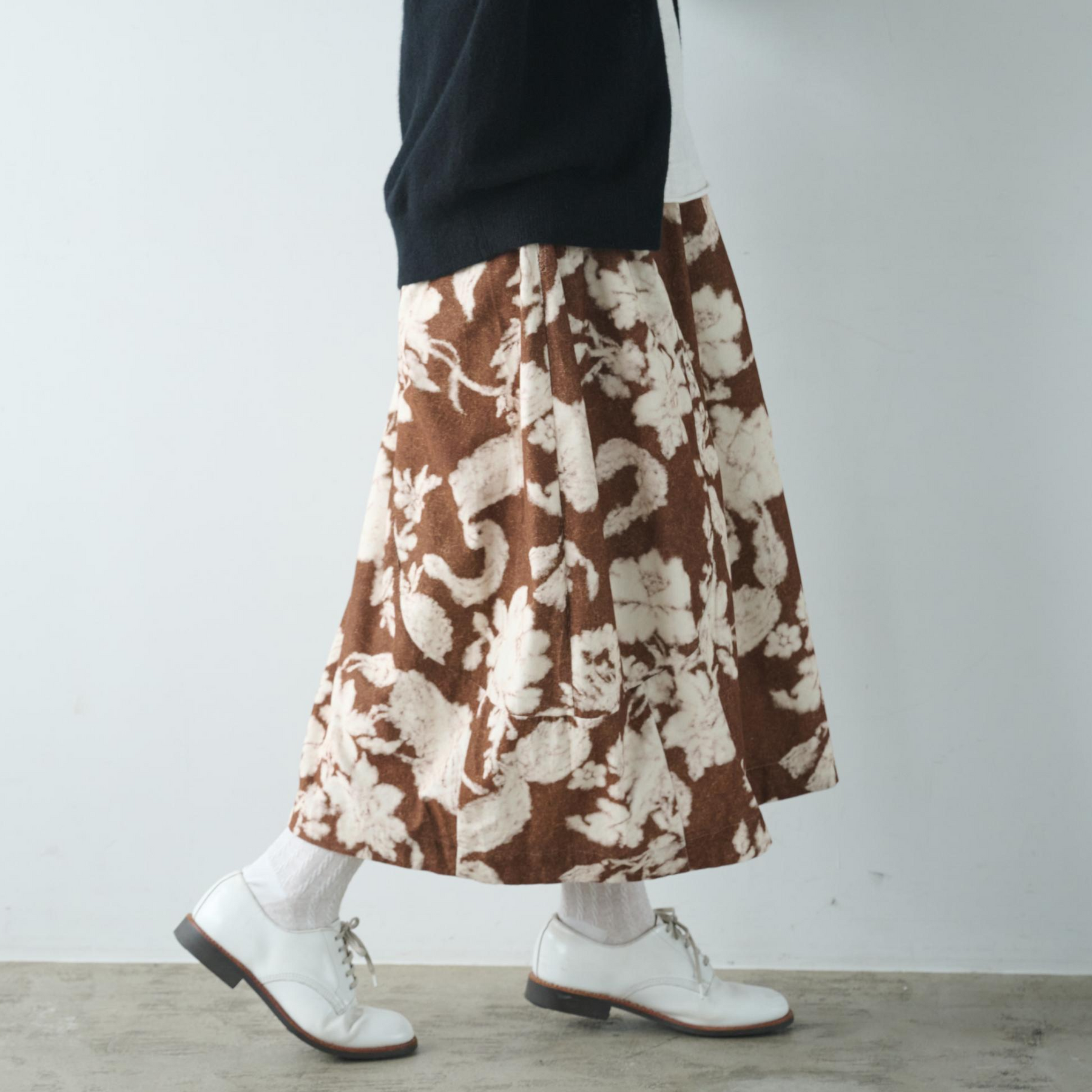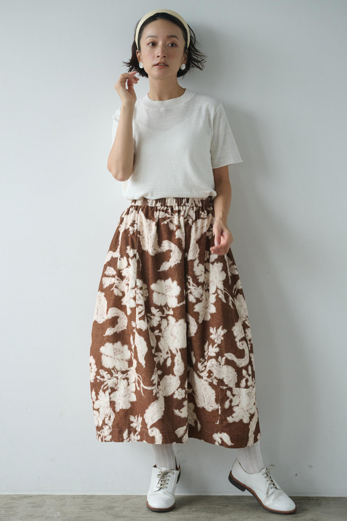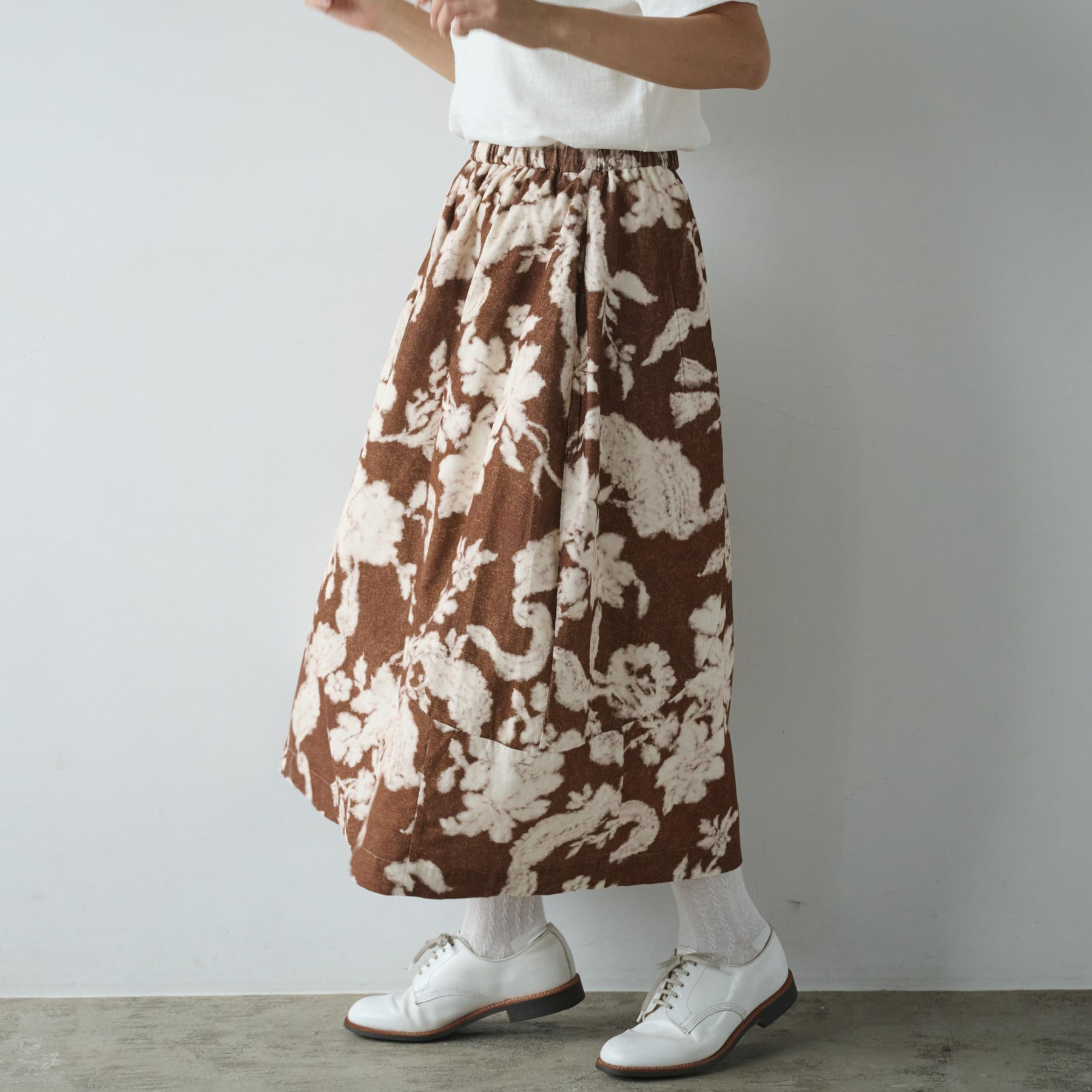 大胆なプリントが視線を集めるフレアスカート。