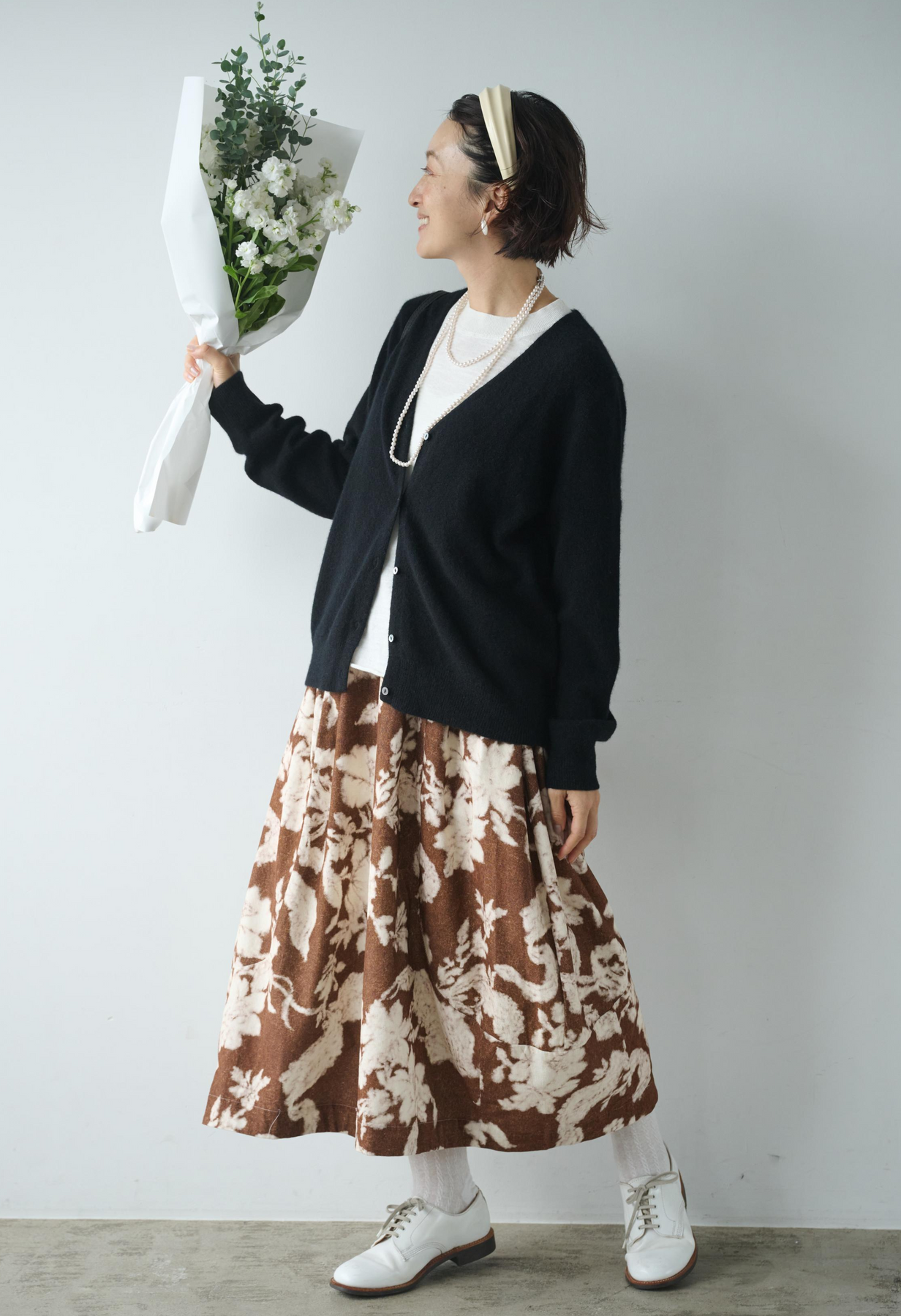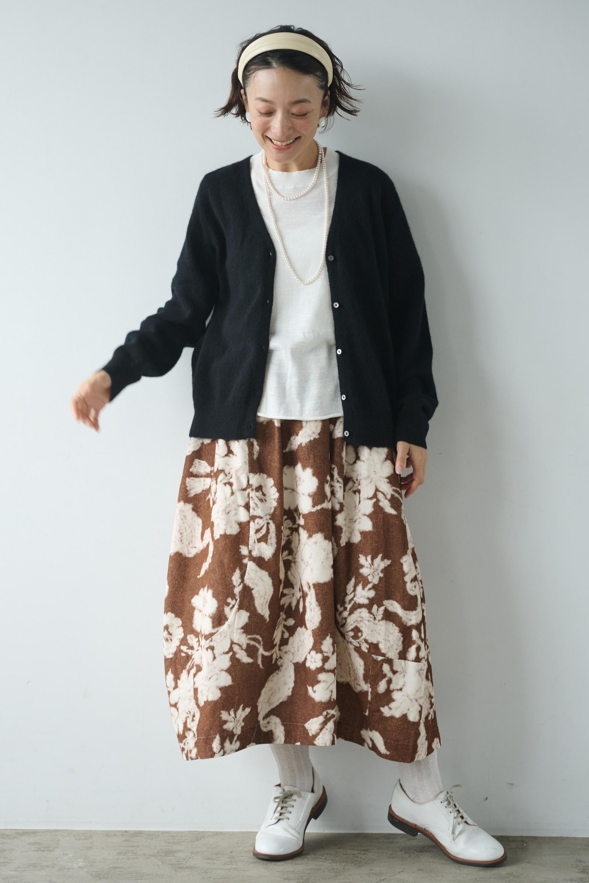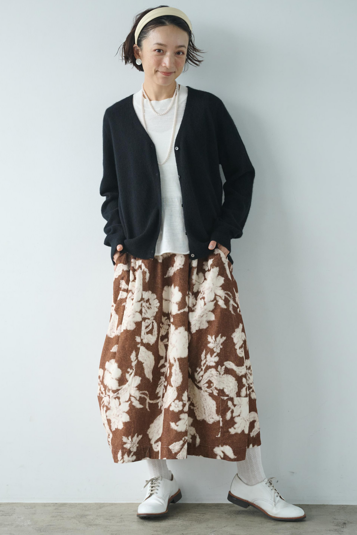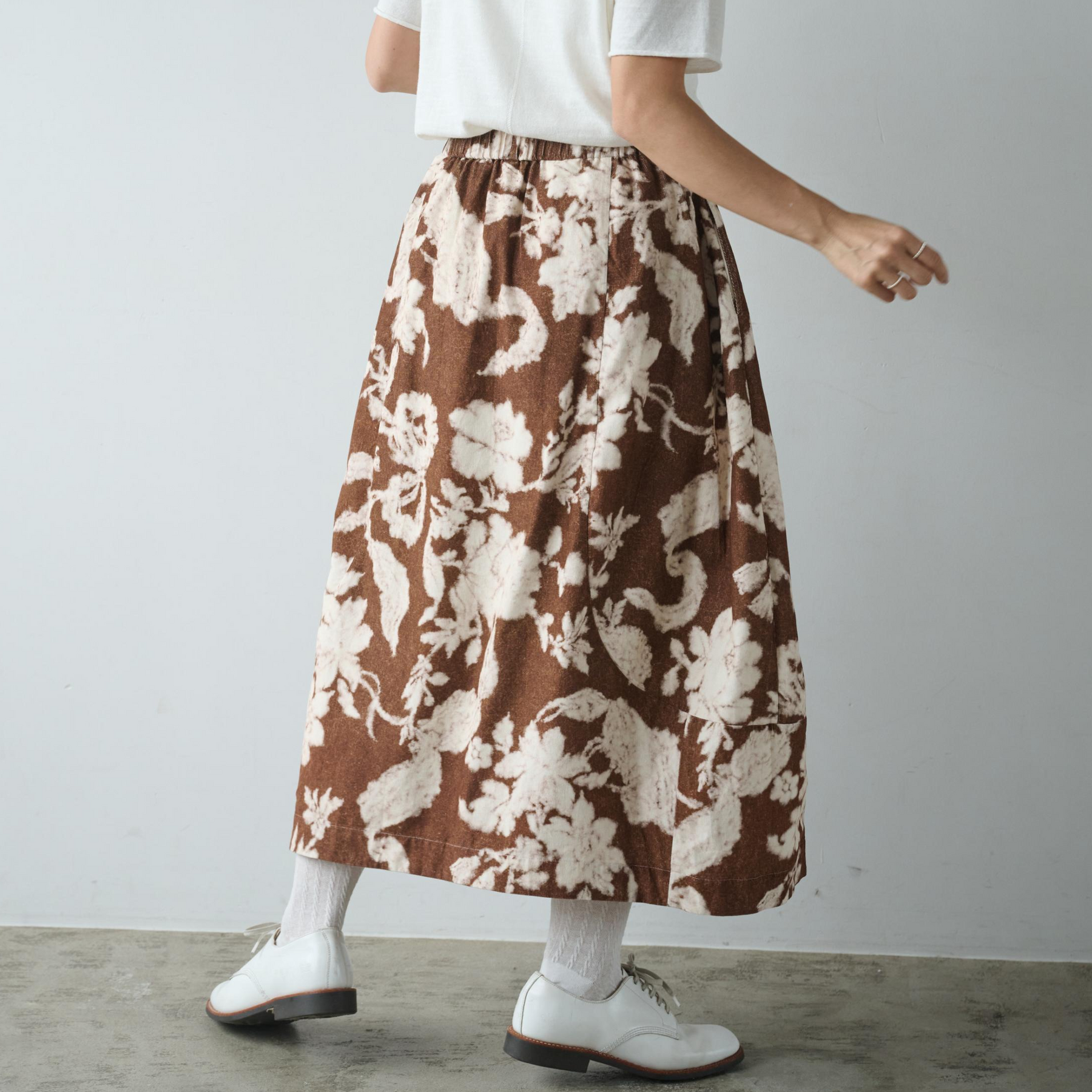 大胆なプリントが視線を集めるフレアスカート。