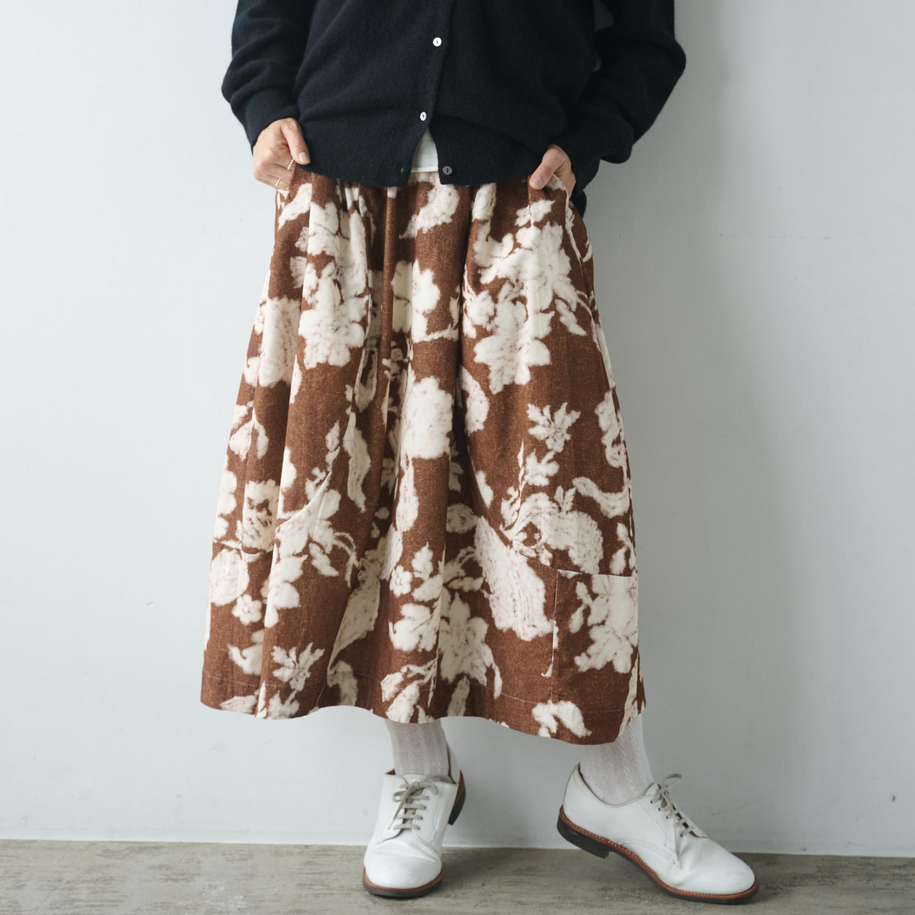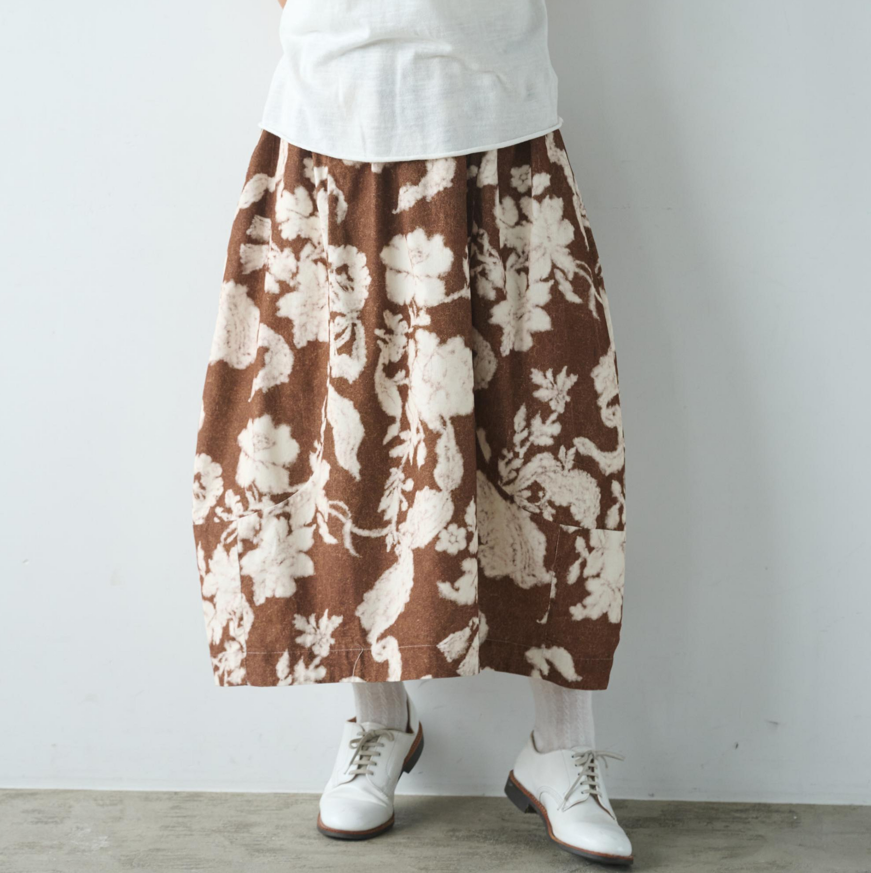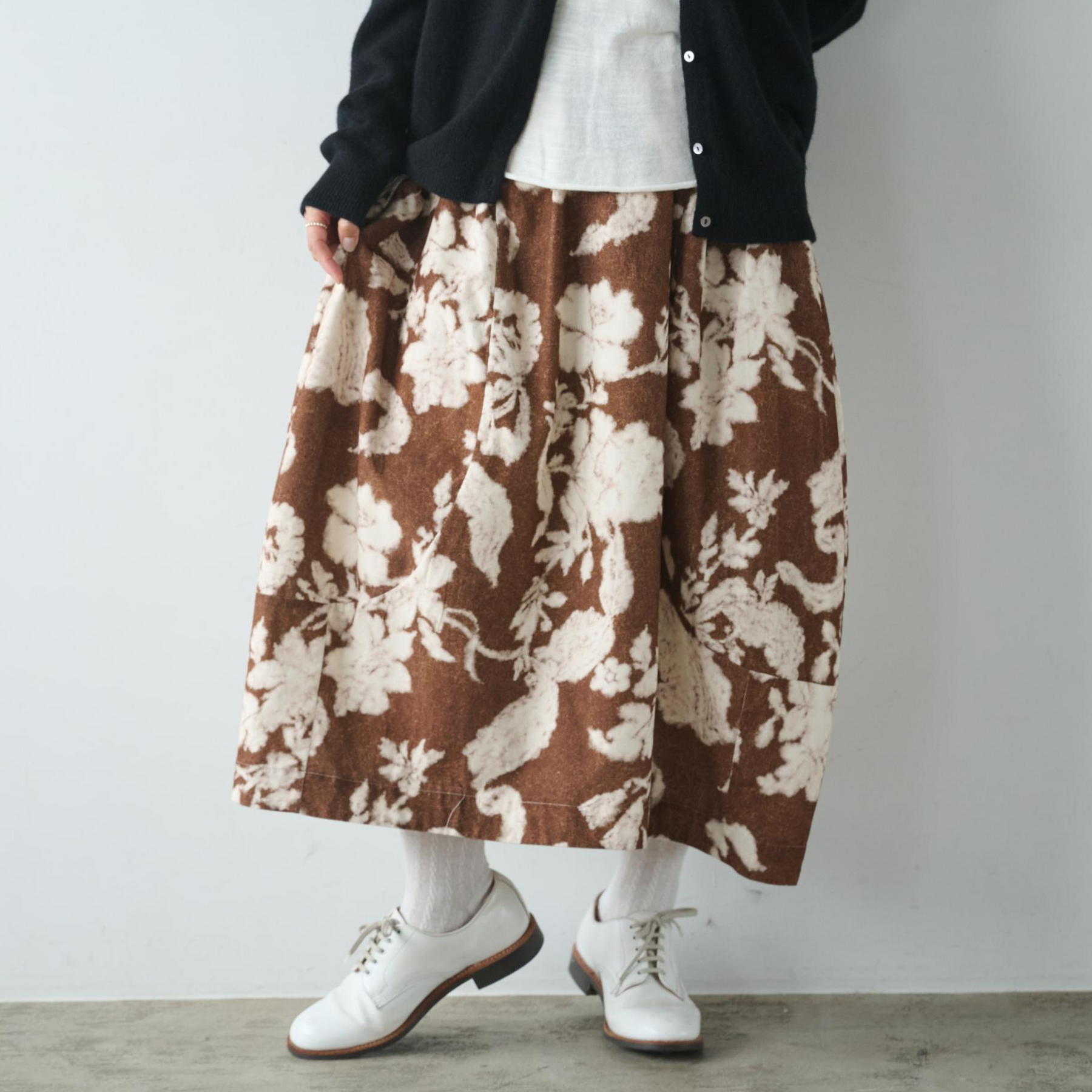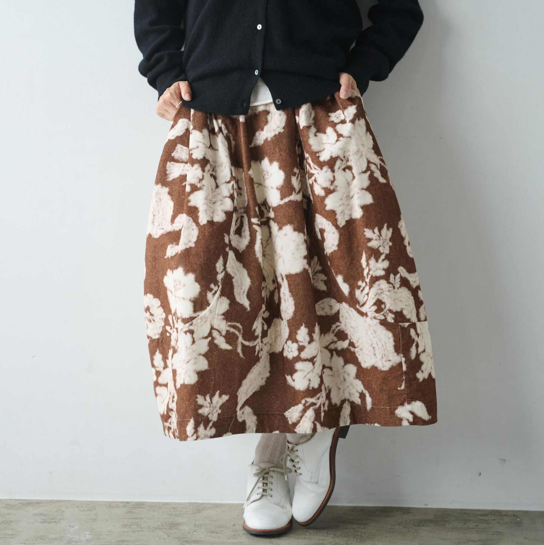 印象的でロングシーズンで様々なコーデを彩るコクーン型スカート 裏地付き ロングスカート 250210-1