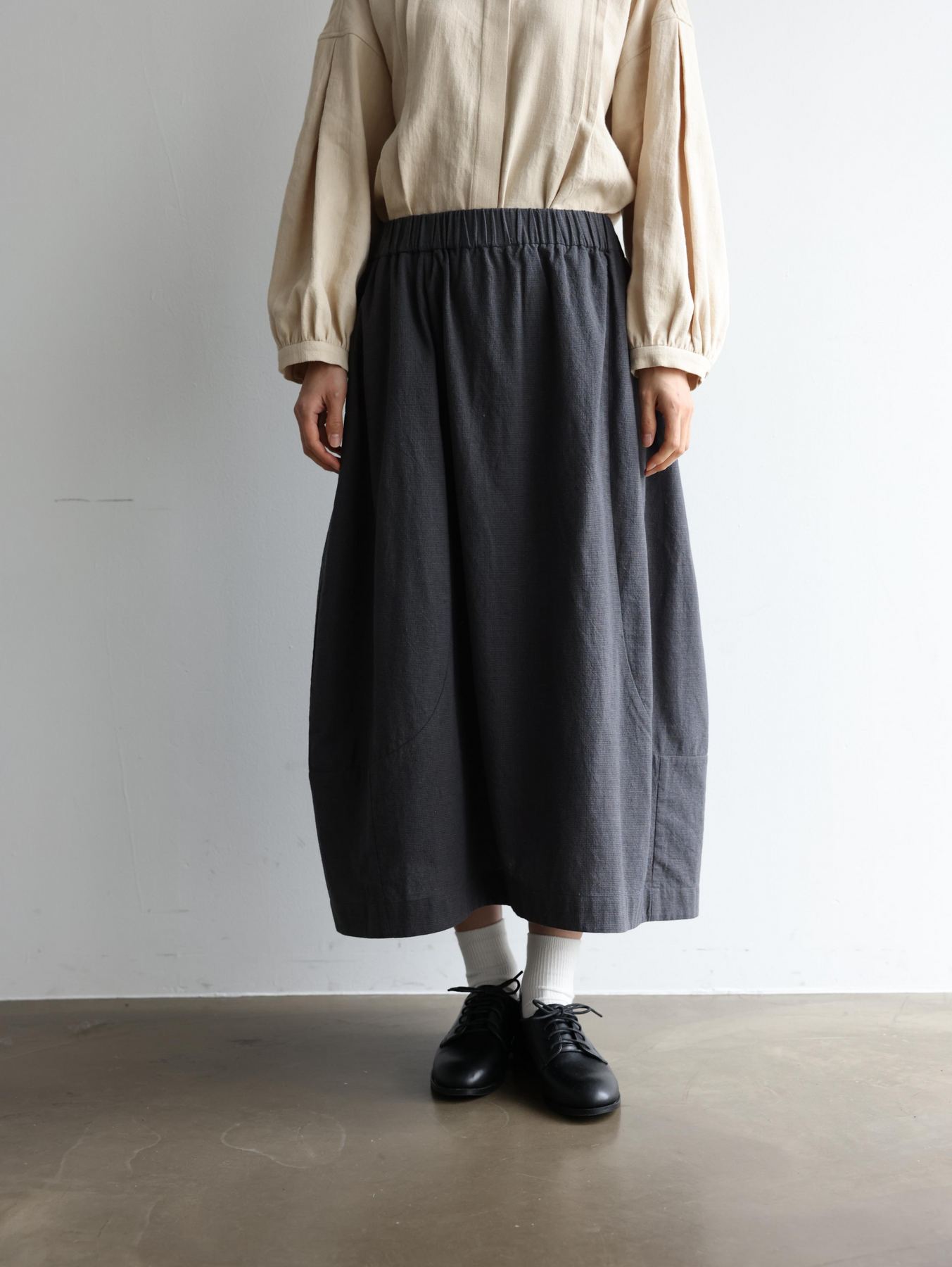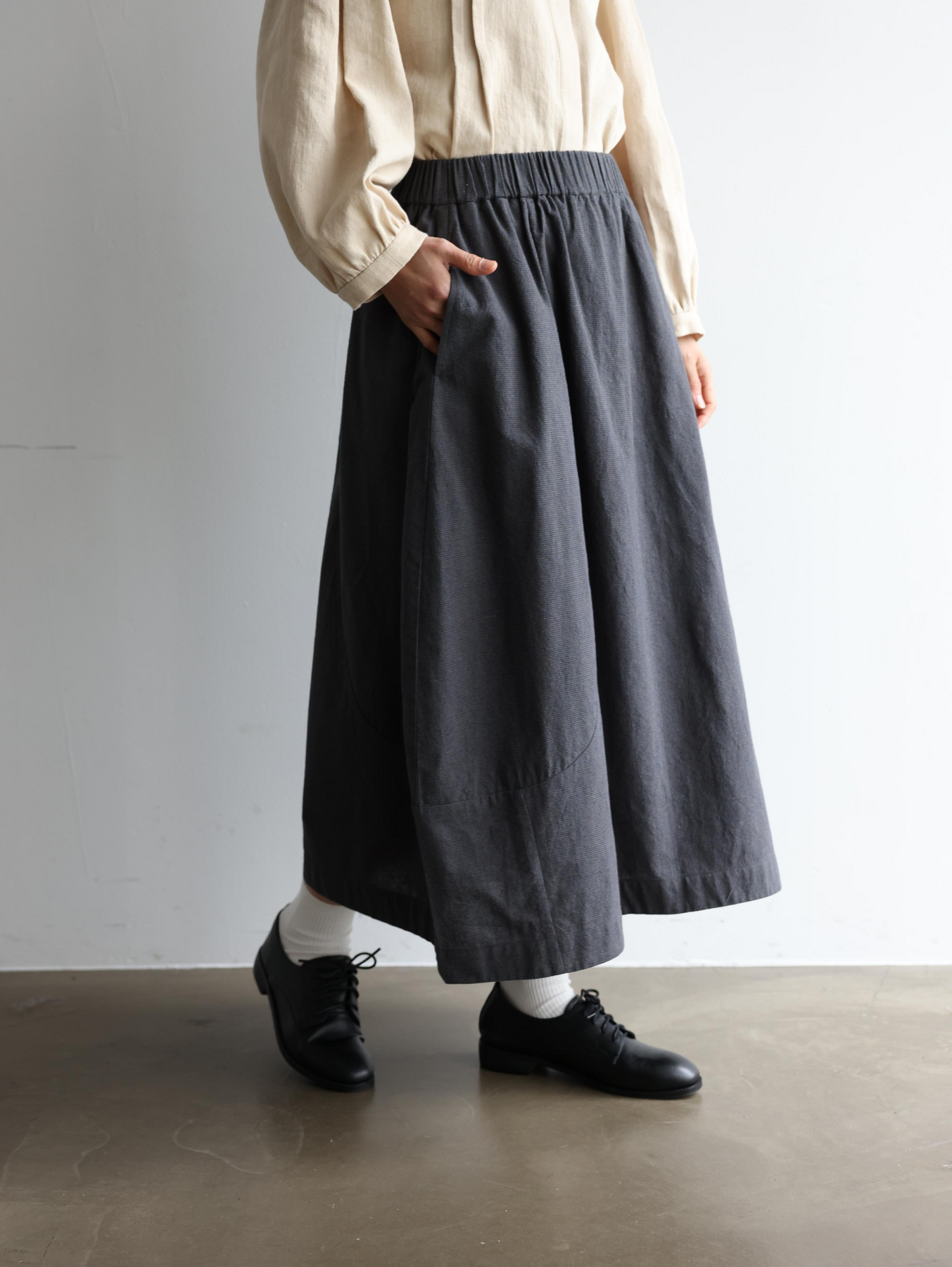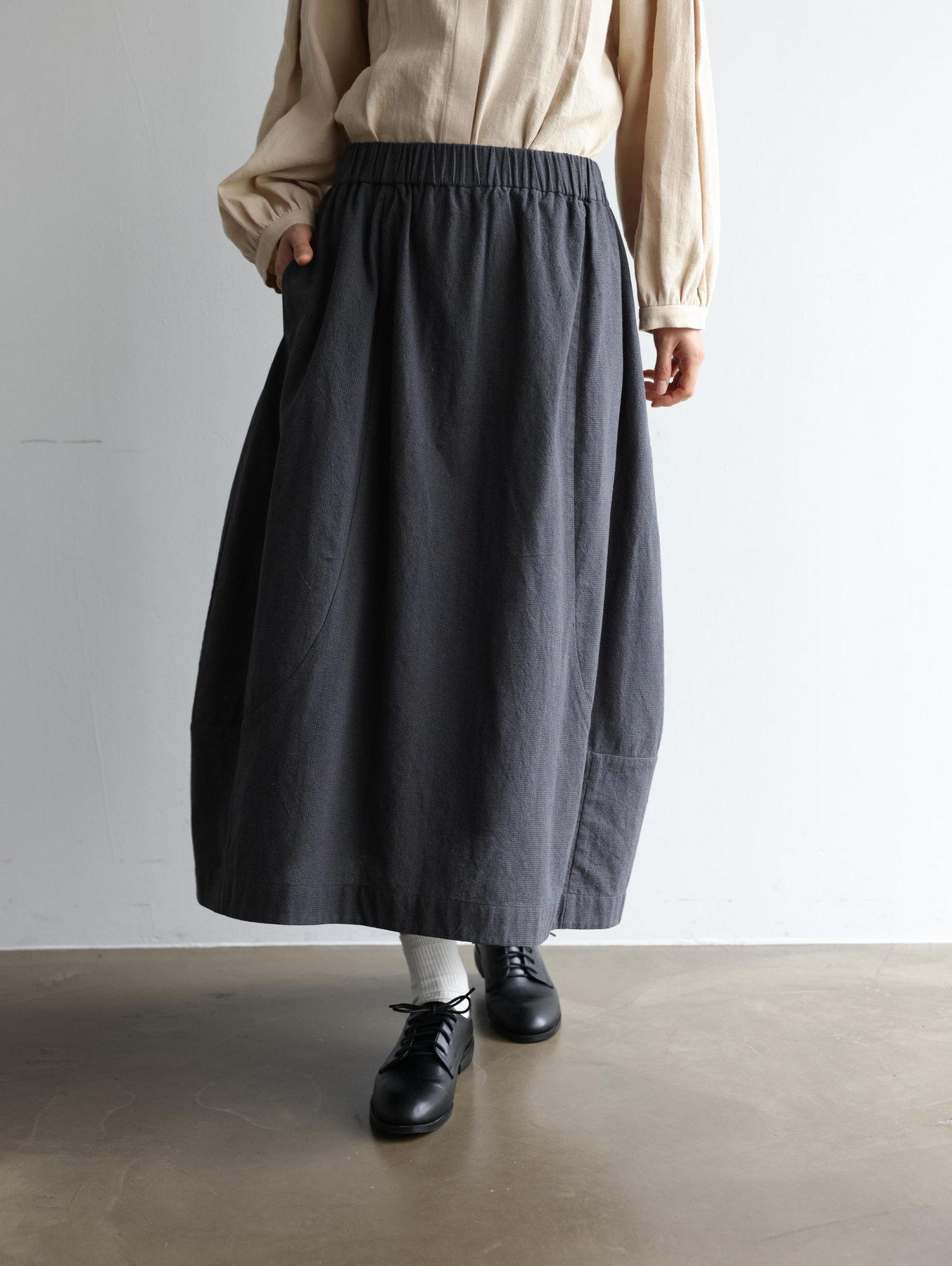 季節を超えた着心地の良さ コクーン型スカート コットンリネン千鳥格子生地 裏地付き ロングスカート 250401-1【素材の魅力】天然のコットンとリネンをブレンドした表地に、吸湿性に優れた純綿裏地を採用。・表地:通気性に優れ、さらりとした肌触り・裏地:肌に優しい綿100%で、一年中快適に着用可能夏は涼しく、冬は温かく、季節を問わず心地よい着心地が特徴です。【デザインのこだわり】・立体感のあるシルエット一段切り替えデザインでボリュームを調整。ほどよく広がるフレアスカートは、足元を優雅に演出しながらも、動きやすさを追求しました。・ストレスフリーな履き心地伸縮性のあるゴム仕様のウエストは、体型を選ばずフィット。食事後や長時間着用でも締め付けず、快適な着用感を実現しています。・上品な千鳥格子落ち着いたダークグレー地に、控えめな千鳥柄を散りばめたデザイン。シンプルなトップスと組み合わせるだけで、一気にスタイリッシュな印象に。【スタイリング提案】◎ カジュアル着こなしホワイトTシャツ+スニーカーと合わせて、リラックスした休日スタイルに。バッグはナチュラルな色味のトートバッグで統一すれば、よりナチュラルな雰囲気に。◎ オフィススタイルベージュのブラウスや薄手のニットと組み合わせ、ストラップサンダルやローヒールでまとめれば、きちんと感のある仕事着に。ジャケットを羽織ればさらにスマートに。◎ 秋冬のレイヤードスタイルセーターやロングカーディガンの下からスカートの裾を覗かせて。ブーツやアンクルブーツと合わせれば、温かみのある冬コーデが完成します。【こんな方におすすめ】✓ ナチュラルテイストが好きな方✓ 季節を問わず長く使えるアイテムが欲しい方✓ 動きやすさとおしゃれさを両立させたい方【コンセプトメッセージ】「毎日履きたくなる、そんなスカート。」自然素材がもたらす心地よさと、こだわりのシルエットで、何度でも手に取ってしまう愛着アイテムに。素材:表地:コットン45% リネン55%裏地:コットン100%サイズ:総丈81cmウェスト64〜80cm裾162cmモデルさんの身長:163cm透け感:なし裏地:ありポケット:あり伸縮性:なし光沢感:なしシーズン:春、秋、冬