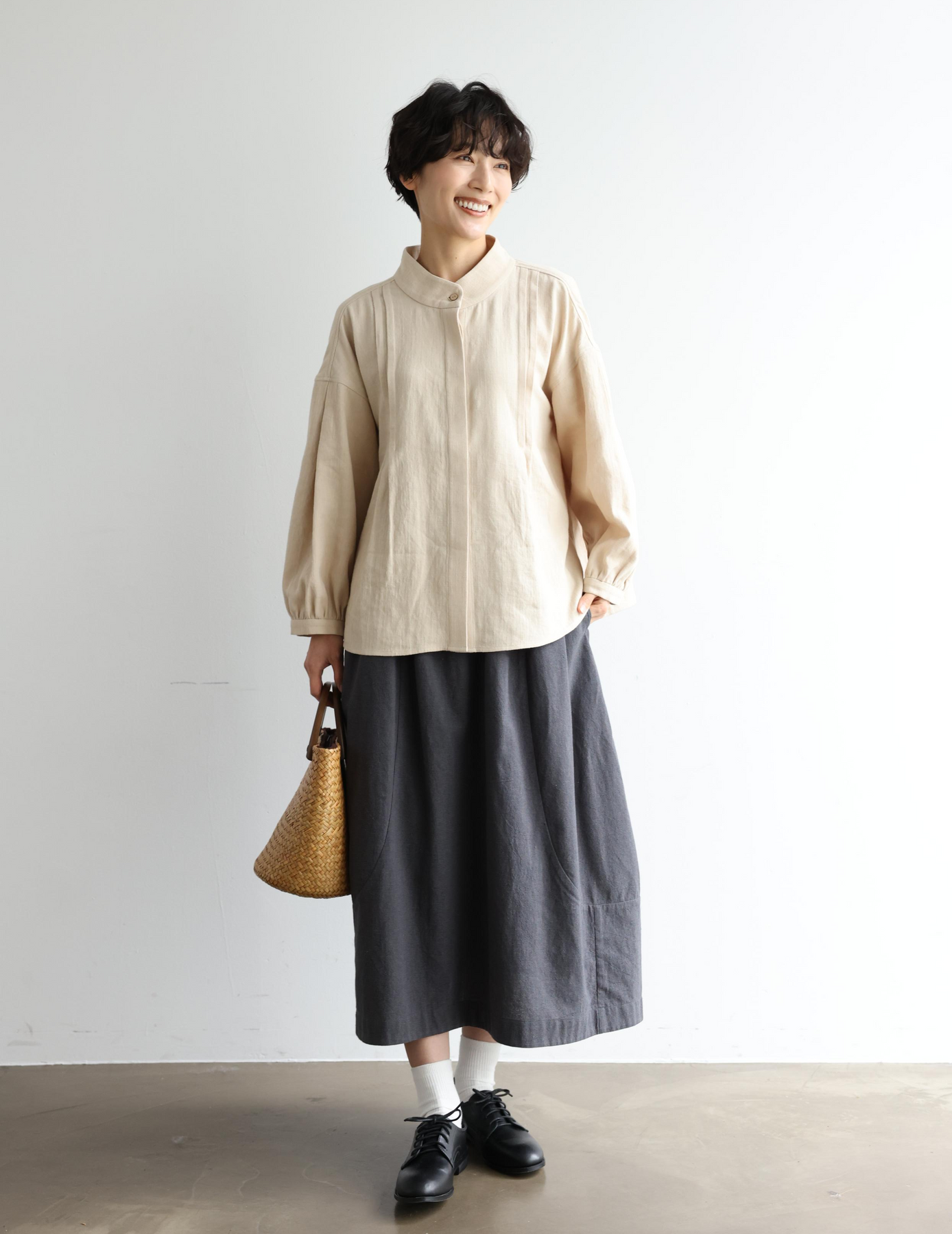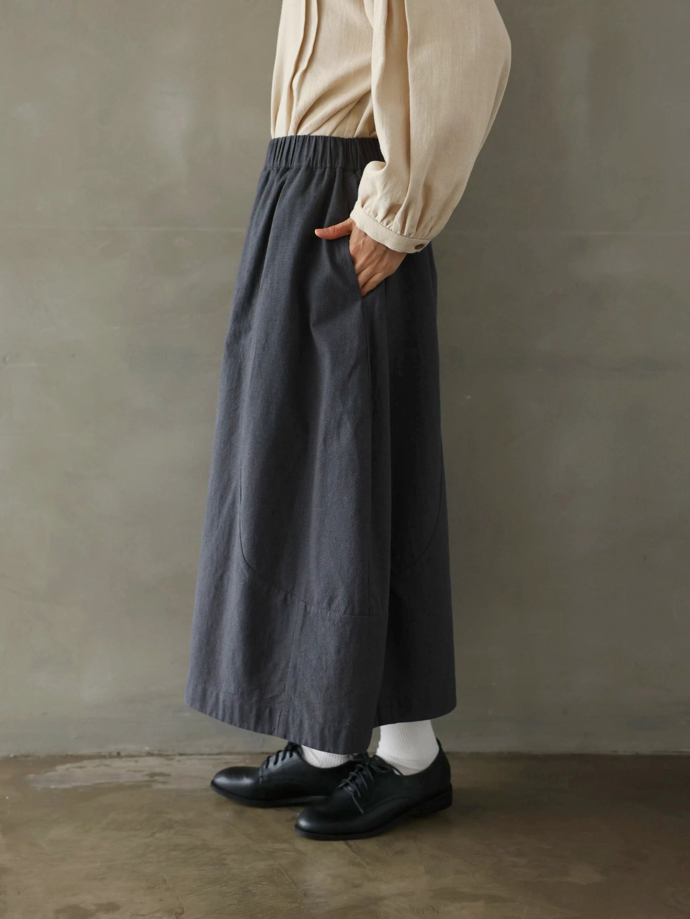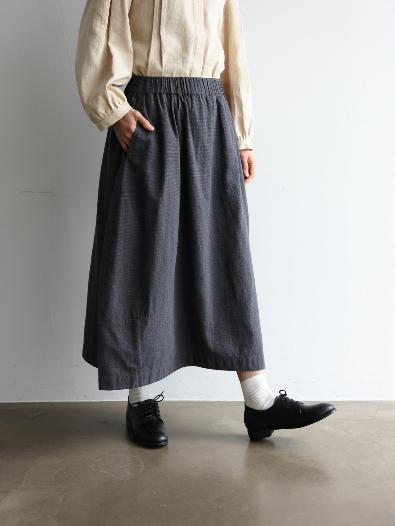 季節を超えた着心地の良さ コクーン型スカート コットンリネン千鳥格子生地 裏地付き ロングスカート 250401-1【素材の魅力】天然のコットンとリネンをブレンドした表地に、吸湿性に優れた純綿裏地を採用。・表地:通気性に優れ、さらりとした肌触り・裏地:肌に優しい綿100%で、一年中快適に着用可能夏は涼しく、冬は温かく、季節を問わず心地よい着心地が特徴です。【デザインのこだわり】・立体感のあるシルエット一段切り替えデザインでボリュームを調整。ほどよく広がるフレアスカートは、足元を優雅に演出しながらも、動きやすさを追求しました。・ストレスフリーな履き心地伸縮性のあるゴム仕様のウエストは、体型を選ばずフィット。食事後や長時間着用でも締め付けず、快適な着用感を実現しています。・上品な千鳥格子落ち着いたダークグレー地に、控えめな千鳥柄を散りばめたデザイン。シンプルなトップスと組み合わせるだけで、一気にスタイリッシュな印象に。【スタイリング提案】◎ カジュアル着こなしホワイトTシャツ+スニーカーと合わせて、リラックスした休日スタイルに。バッグはナチュラルな色味のトートバッグで統一すれば、よりナチュラルな雰囲気に。◎ オフィススタイルベージュのブラウスや薄手のニットと組み合わせ、ストラップサンダルやローヒールでまとめれば、きちんと感のある仕事着に。ジャケットを羽織ればさらにスマートに。◎ 秋冬のレイヤードスタイルセーターやロングカーディガンの下からスカートの裾を覗かせて。ブーツやアンクルブーツと合わせれば、温かみのある冬コーデが完成します。【こんな方におすすめ】✓ ナチュラルテイストが好きな方✓ 季節を問わず長く使えるアイテムが欲しい方✓ 動きやすさとおしゃれさを両立させたい方【コンセプトメッセージ】「毎日履きたくなる、そんなスカート。」自然素材がもたらす心地よさと、こだわりのシルエットで、何度でも手に取ってしまう愛着アイテムに。素材:表地:コットン45% リネン55%裏地:コットン100%サイズ:総丈81cmウェスト64〜80cm裾162cmモデルさんの身長:163cm透け感:なし裏地:ありポケット:あり伸縮性:なし光沢感:なしシーズン:春、秋、冬