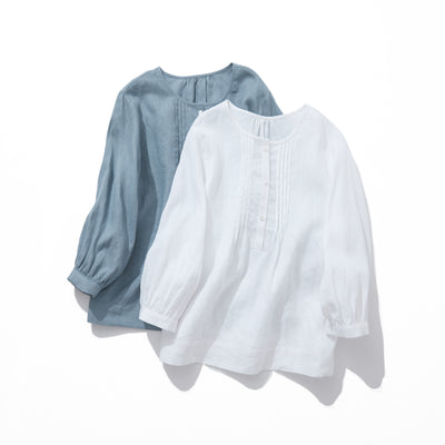 享受穿著 Yoke switch 縮褶襯衫女襯衫 100% 亞麻 220203-1
