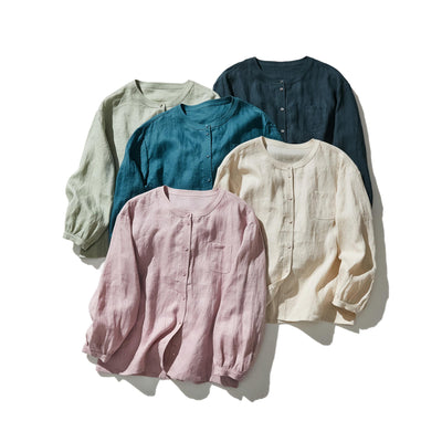 休閒甜美美襯衫 100% 亞麻布料亞麻襯衫襯衫 210804