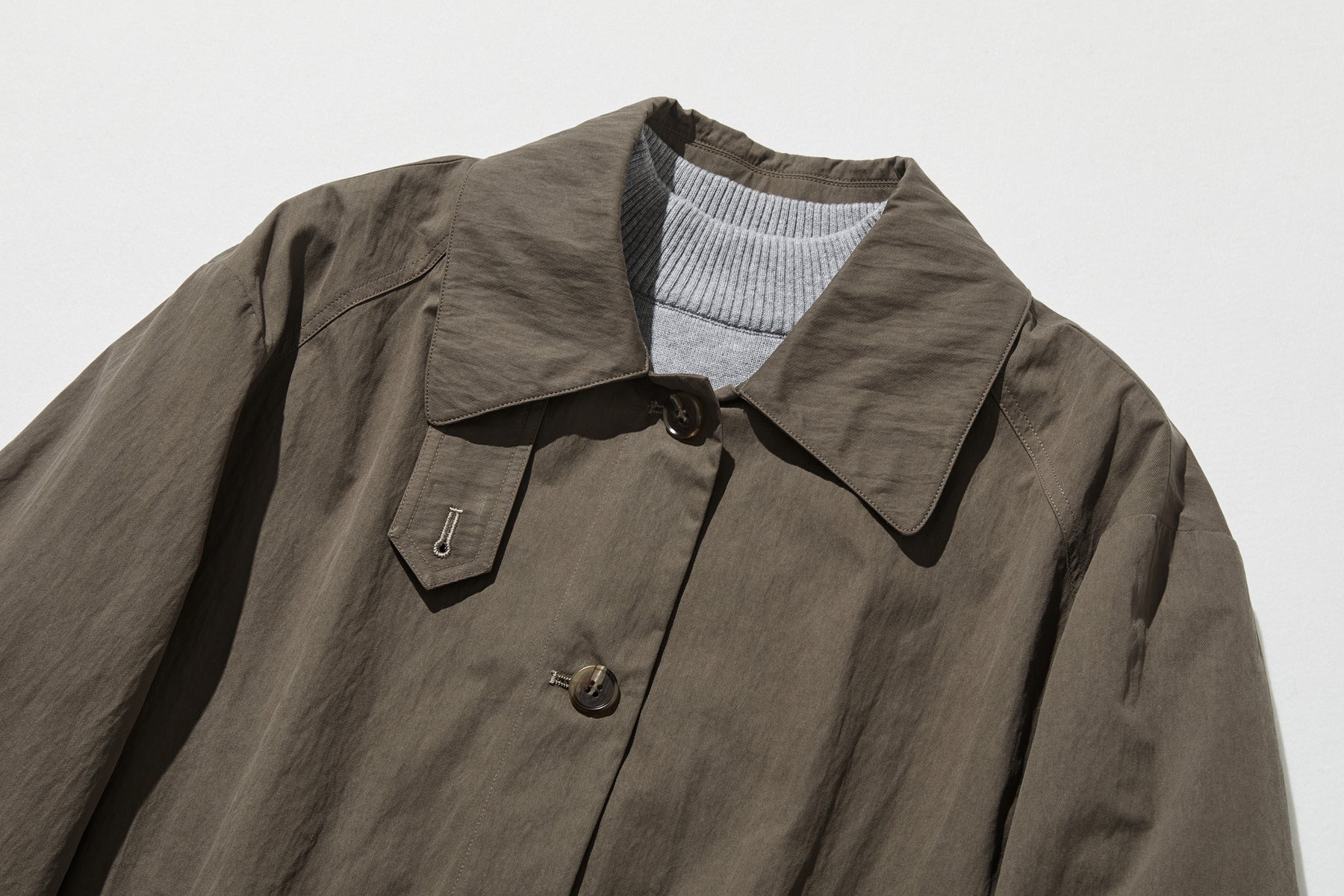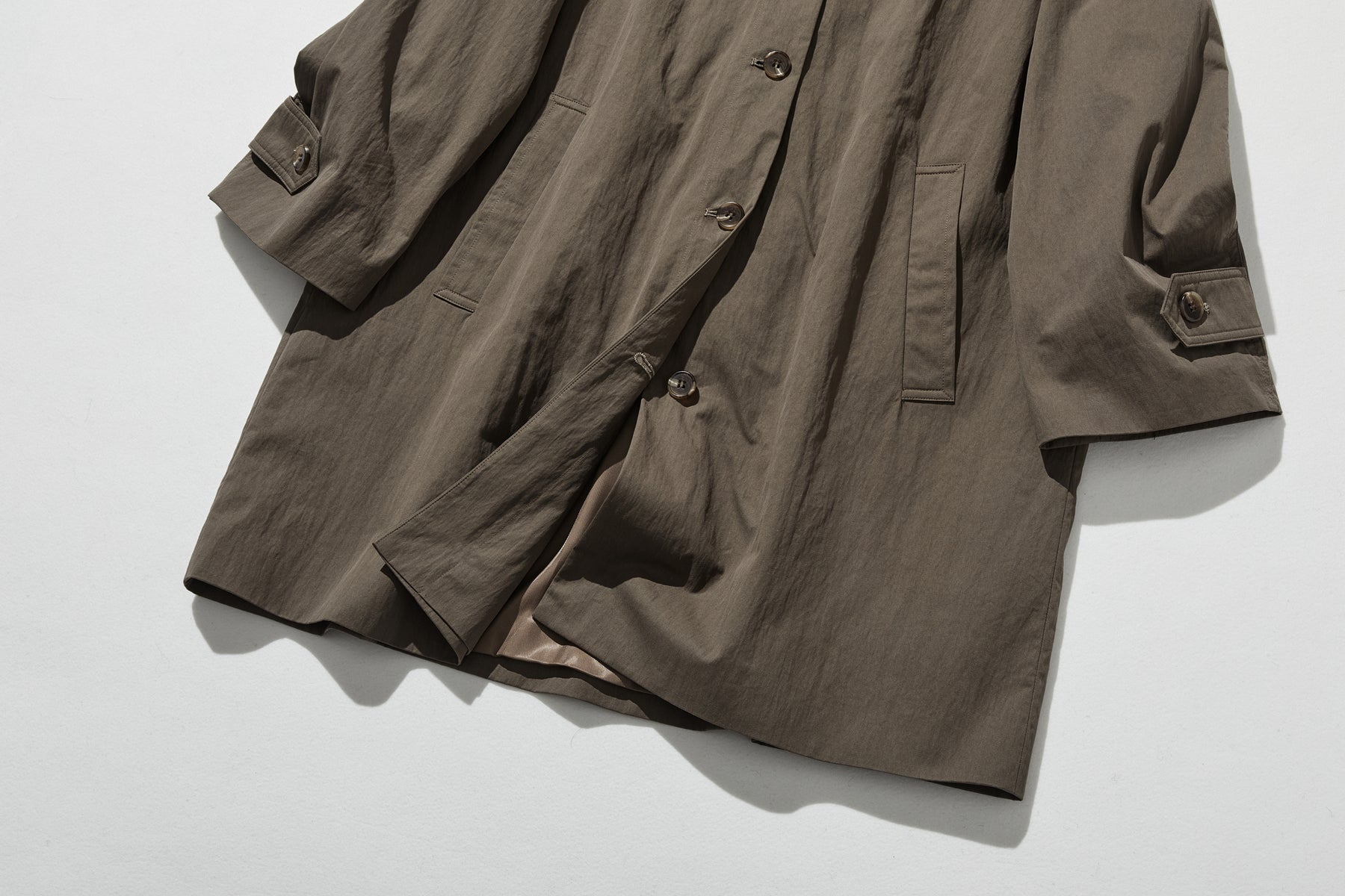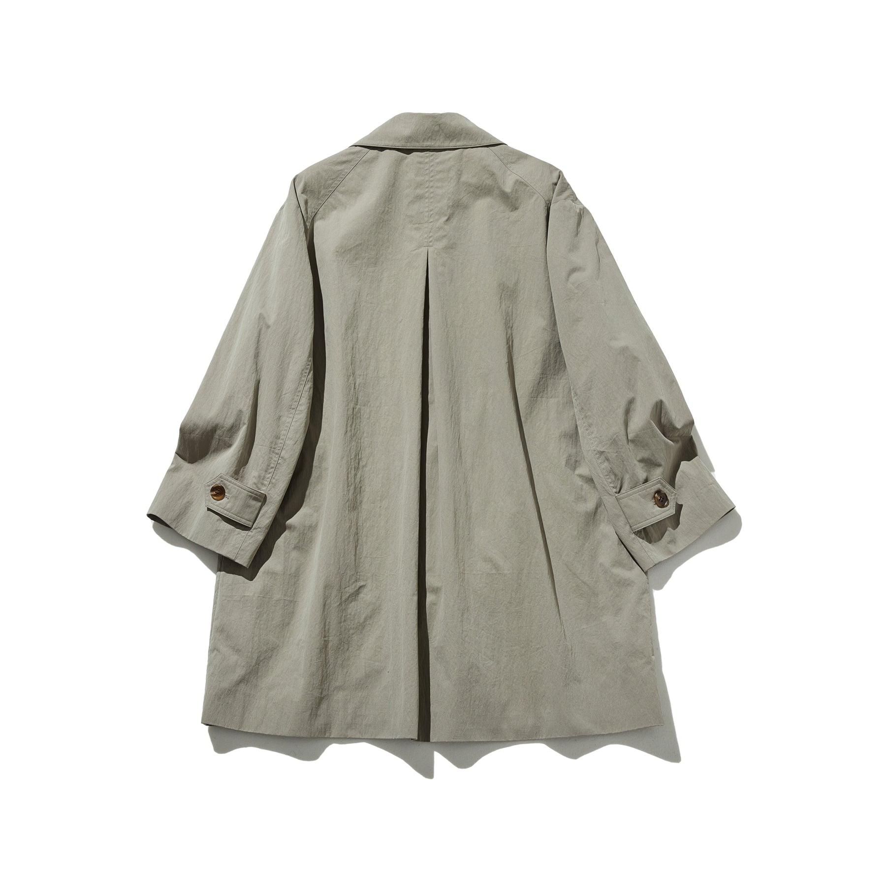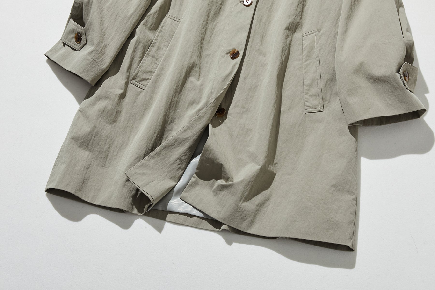 ロングシーズン着まわせる優秀アイテム トレンチコート ミドル丈コート 251003★シャリのあるドライな風合いでハリ感を出した、コットンの軽やかな着心地のコート。★ルーズになりすぎない絶妙なシルエットにこだわったミドル丈。★さらっとした滑りやすい裏地付き&襟はベーシックなステンカラーで、きれいめの着こなしにもぴったり。★首もとをそっと包み込むゆとりを持たせたスタンド襟も◎。★背中のタックでバックスタイルがすらりときれい。★シンプルなデザインで、シーンを問わず大人のワードローブにマッチ。素材:表地:コットン64% ナイロン36%裏地:ポリエステル55% レ-ヨン45%サイズ:身丈84cm肩幅50cm袖丈51cmバスト118cmアームホール54cm袖口36cm裾125cm透け感:なし裏地:ありポケット:あり伸縮性:なし光沢感:なしシーズン:春、秋、冬
