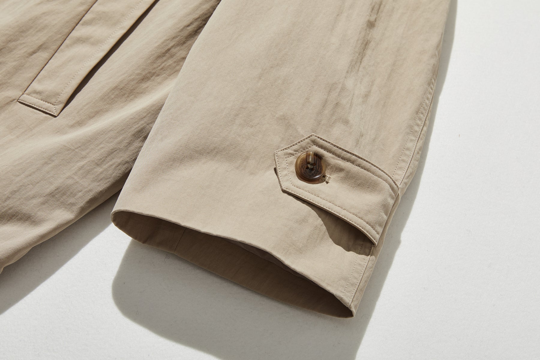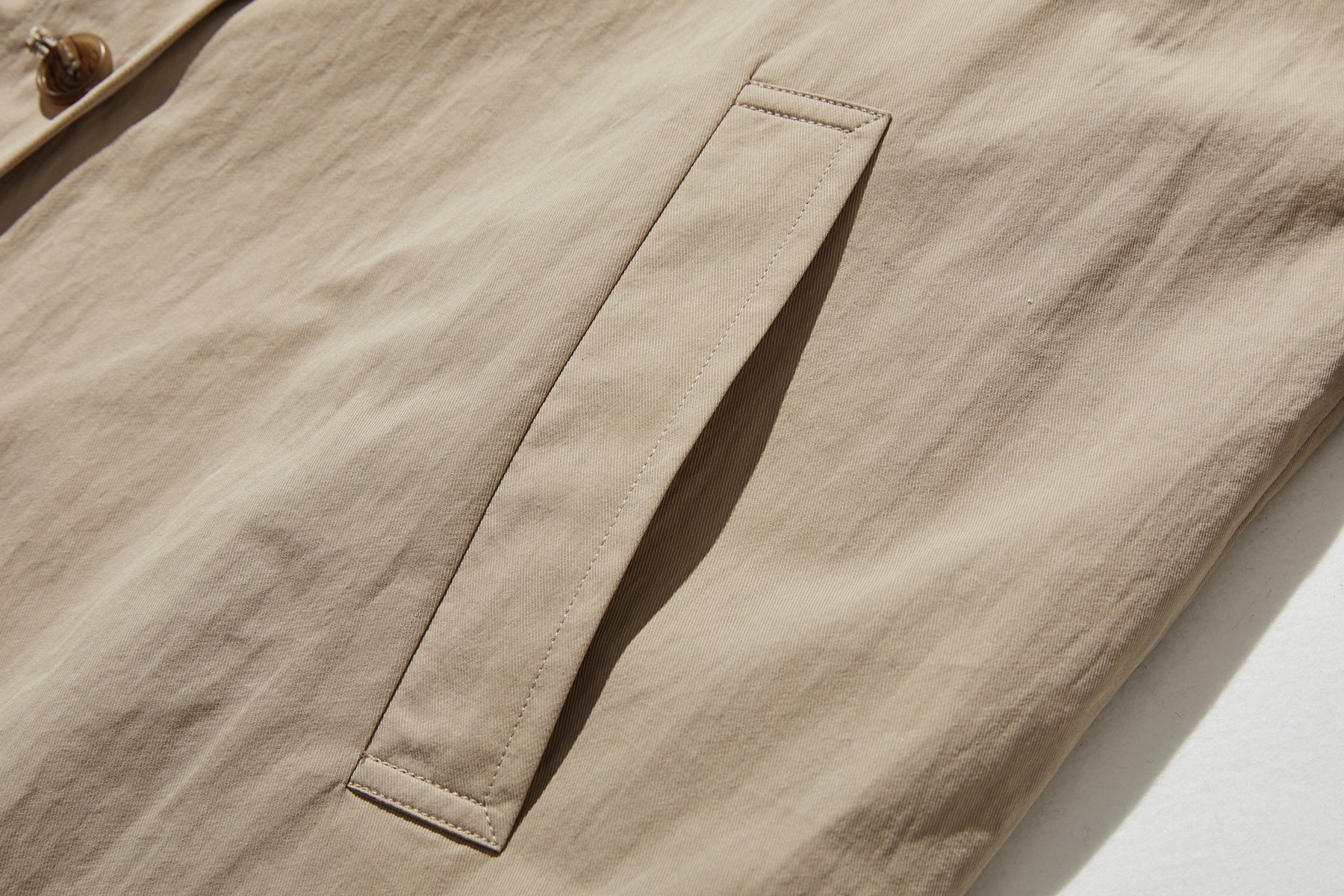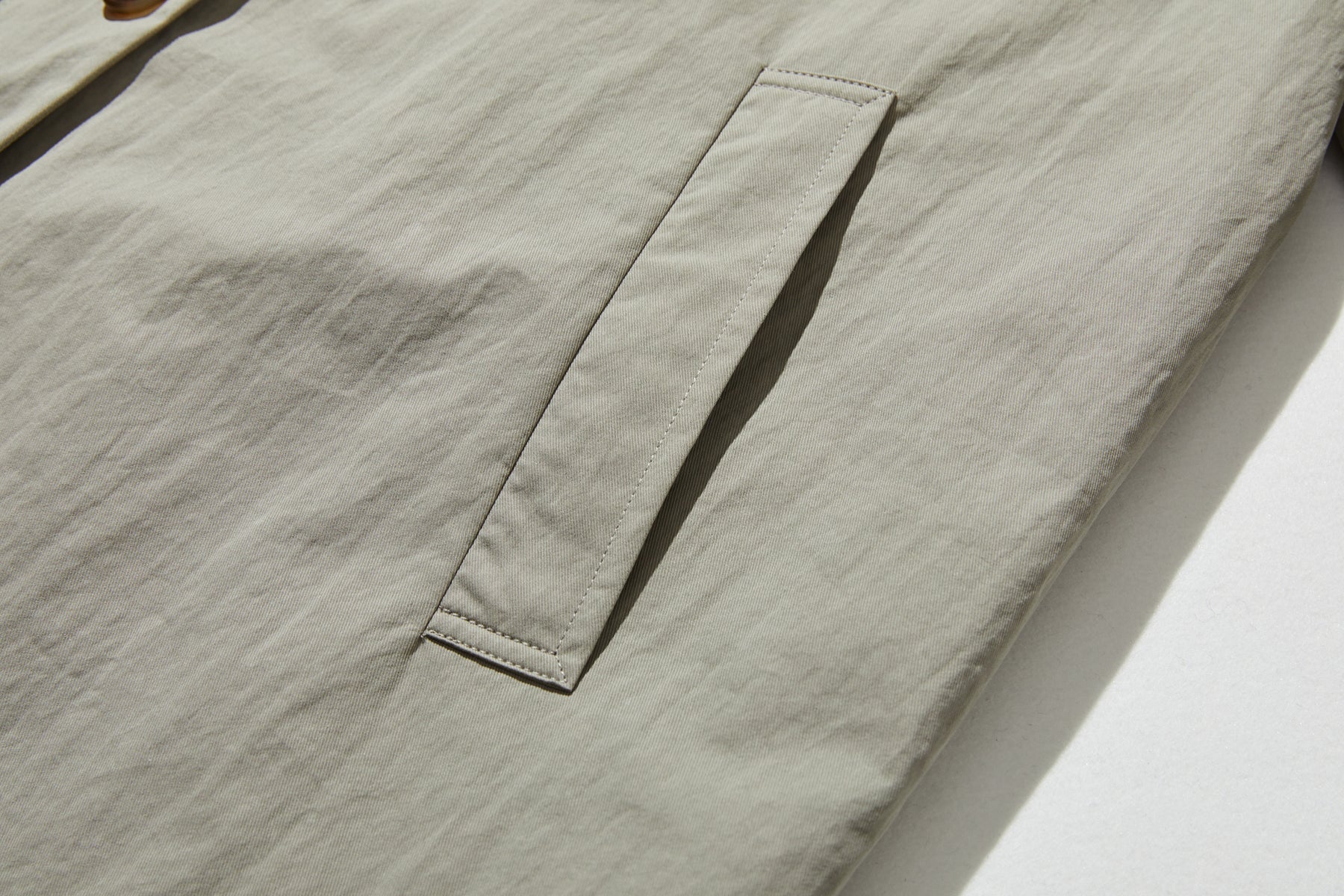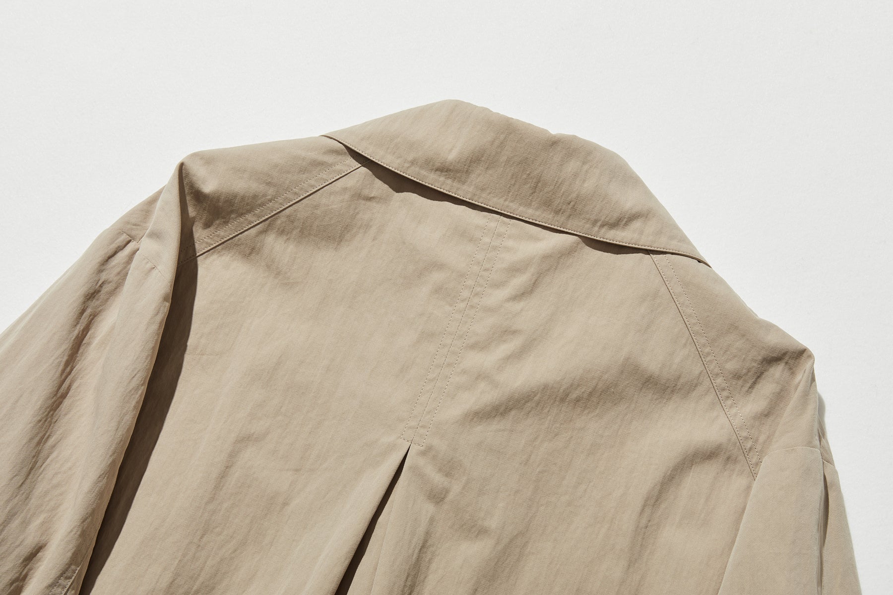 ロングシーズン着まわせる優秀アイテム トレンチコート ミドル丈コート 251003★シャリのあるドライな風合いでハリ感を出した、コットンの軽やかな着心地のコート。★ルーズになりすぎない絶妙なシルエットにこだわったミドル丈。★さらっとした滑りやすい裏地付き&襟はベーシックなステンカラーで、きれいめの着こなしにもぴったり。★首もとをそっと包み込むゆとりを持たせたスタンド襟も◎。★背中のタックでバックスタイルがすらりときれい。★シンプルなデザインで、シーンを問わず大人のワードローブにマッチ。素材:表地:コットン64% ナイロン36%裏地:ポリエステル55% レ-ヨン45%サイズ:身丈84cm肩幅50cm袖丈51cmバスト118cmアームホール54cm袖口36cm裾125cm透け感:なし裏地:ありポケット:あり伸縮性:なし光沢感:なしシーズン:春、秋、冬