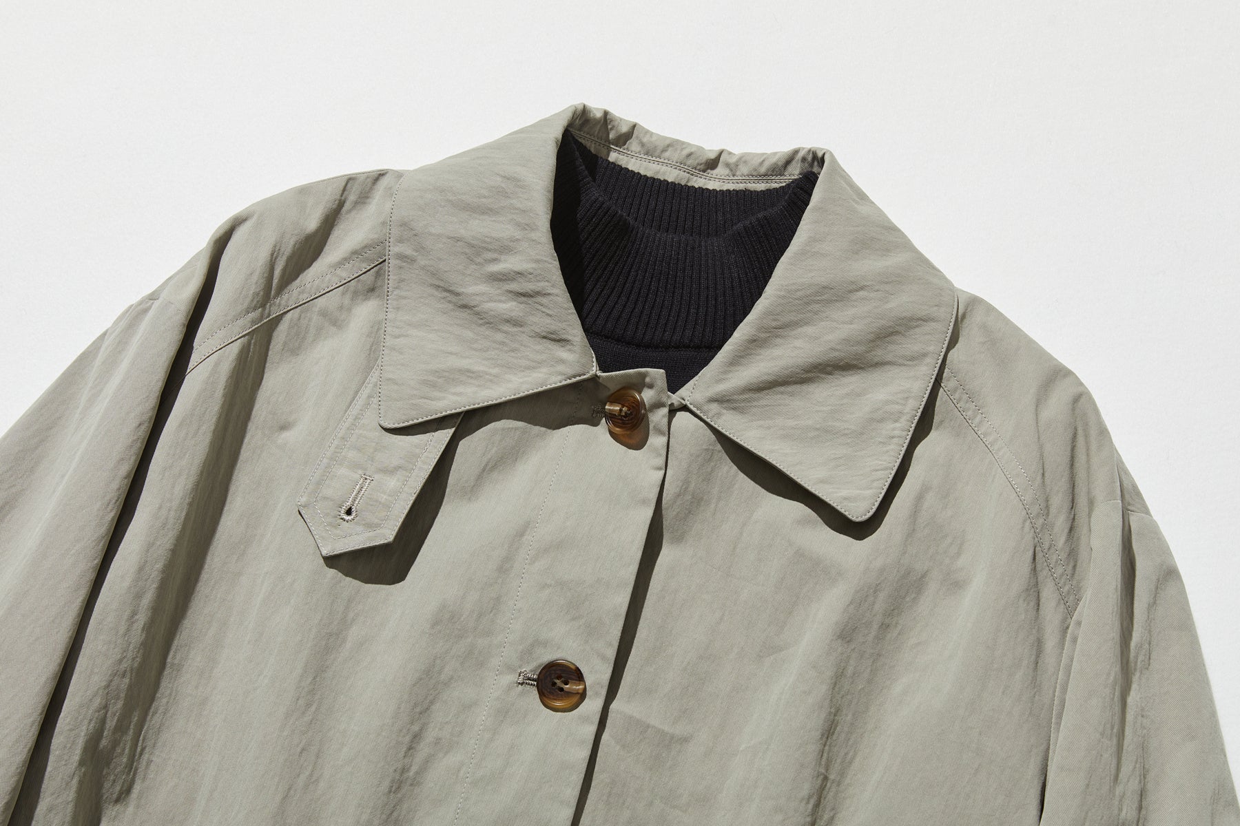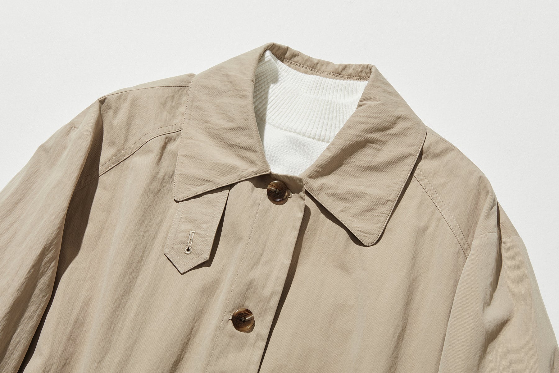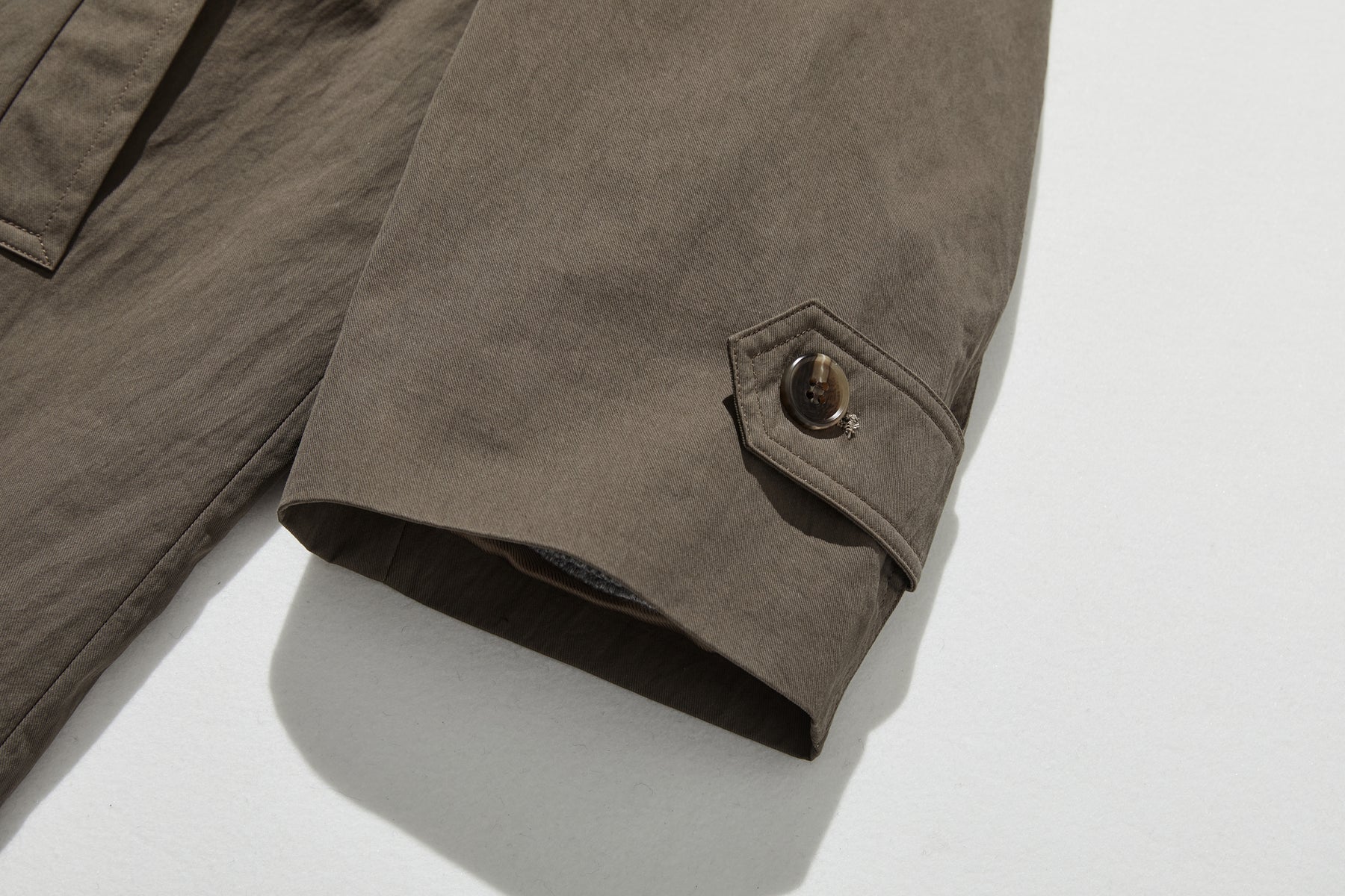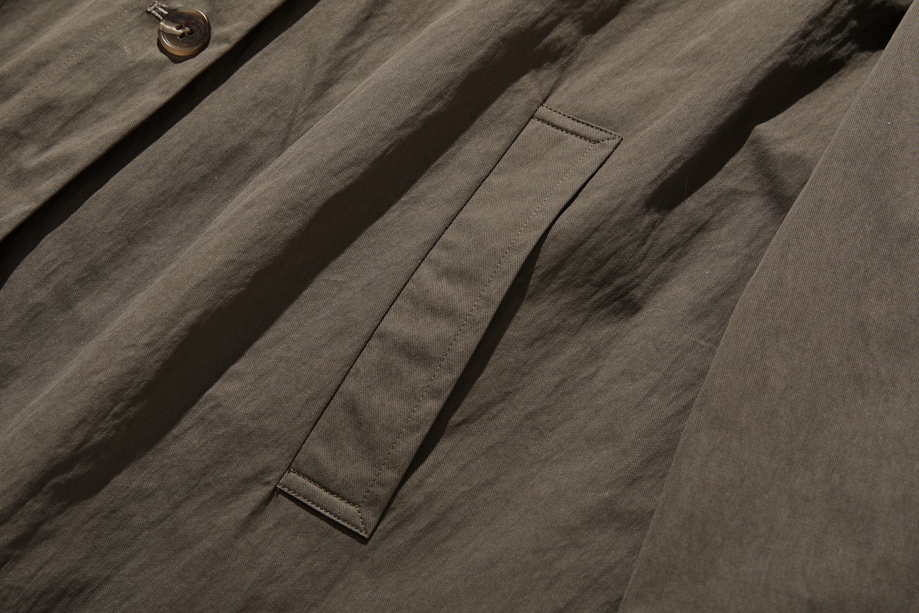 ロングシーズン着まわせる優秀アイテム トレンチコート ミドル丈コート 251003★シャリのあるドライな風合いでハリ感を出した、コットンの軽やかな着心地のコート。★ルーズになりすぎない絶妙なシルエットにこだわったミドル丈。★さらっとした滑りやすい裏地付き&襟はベーシックなステンカラーで、きれいめの着こなしにもぴったり。★首もとをそっと包み込むゆとりを持たせたスタンド襟も◎。★背中のタックでバックスタイルがすらりときれい。★シンプルなデザインで、シーンを問わず大人のワードローブにマッチ。素材:表地:コットン64% ナイロン36%裏地:ポリエステル55% レ-ヨン45%サイズ:身丈84cm肩幅50cm袖丈51cmバスト118cmアームホール54cm袖口36cm裾125cm透け感:なし裏地:ありポケット:あり伸縮性:なし光沢感:なしシーズン:春、秋、冬