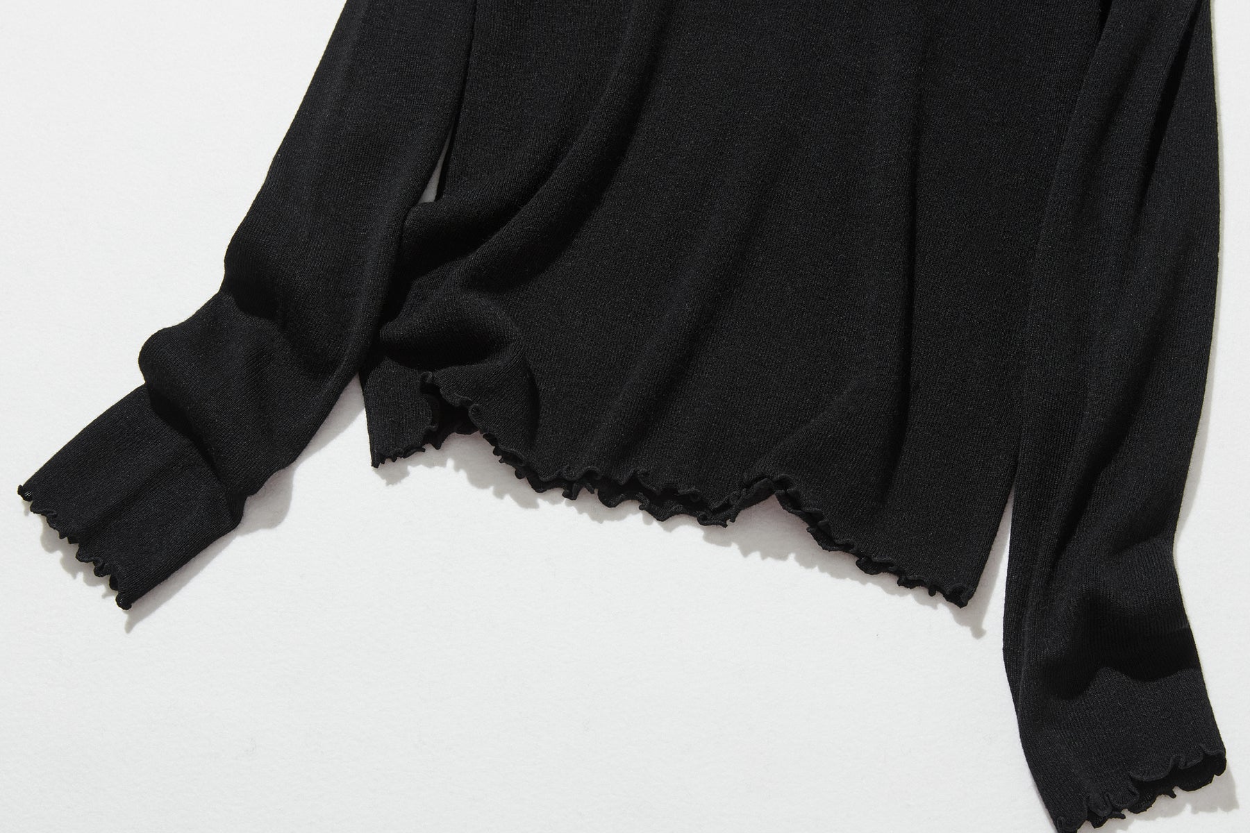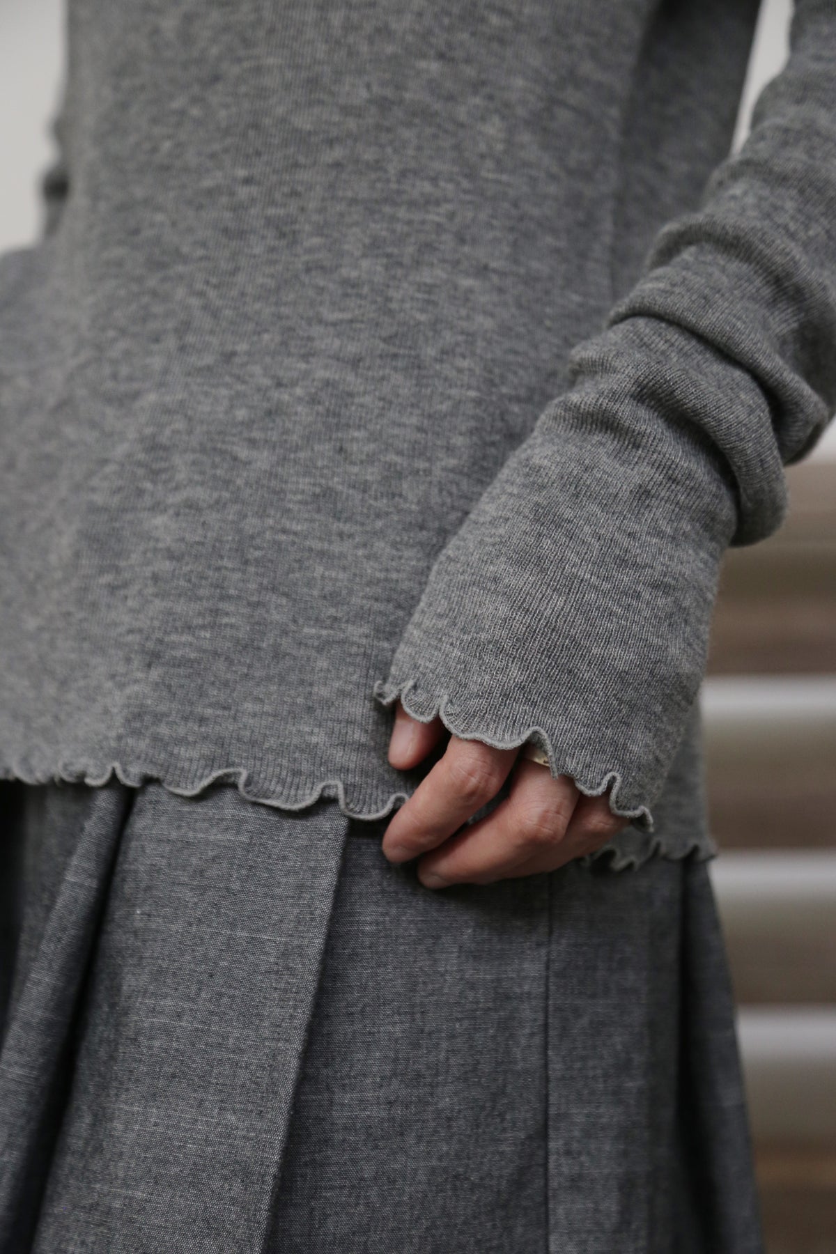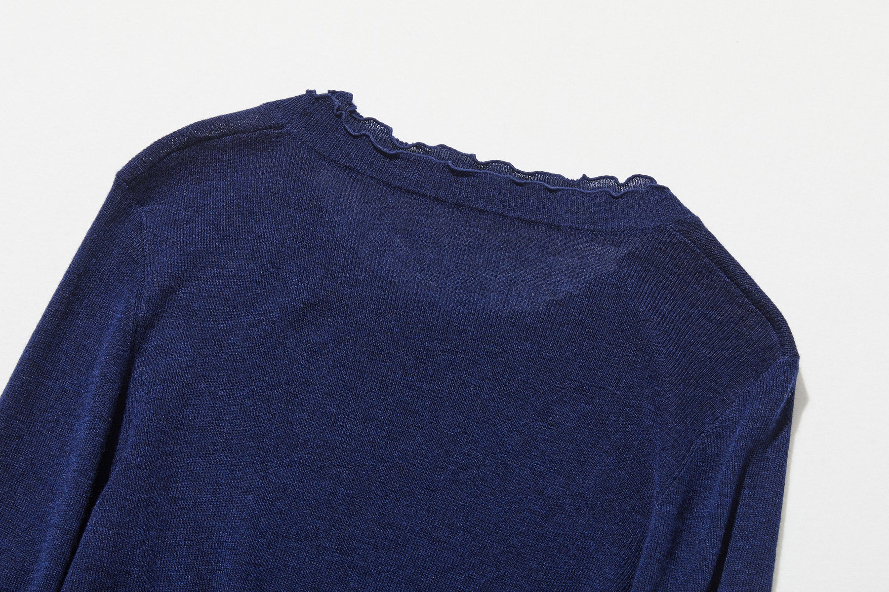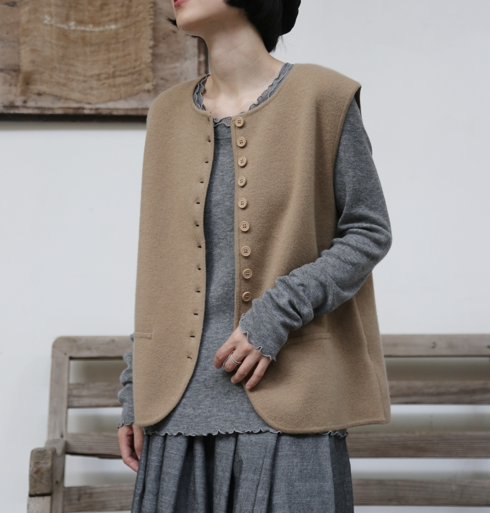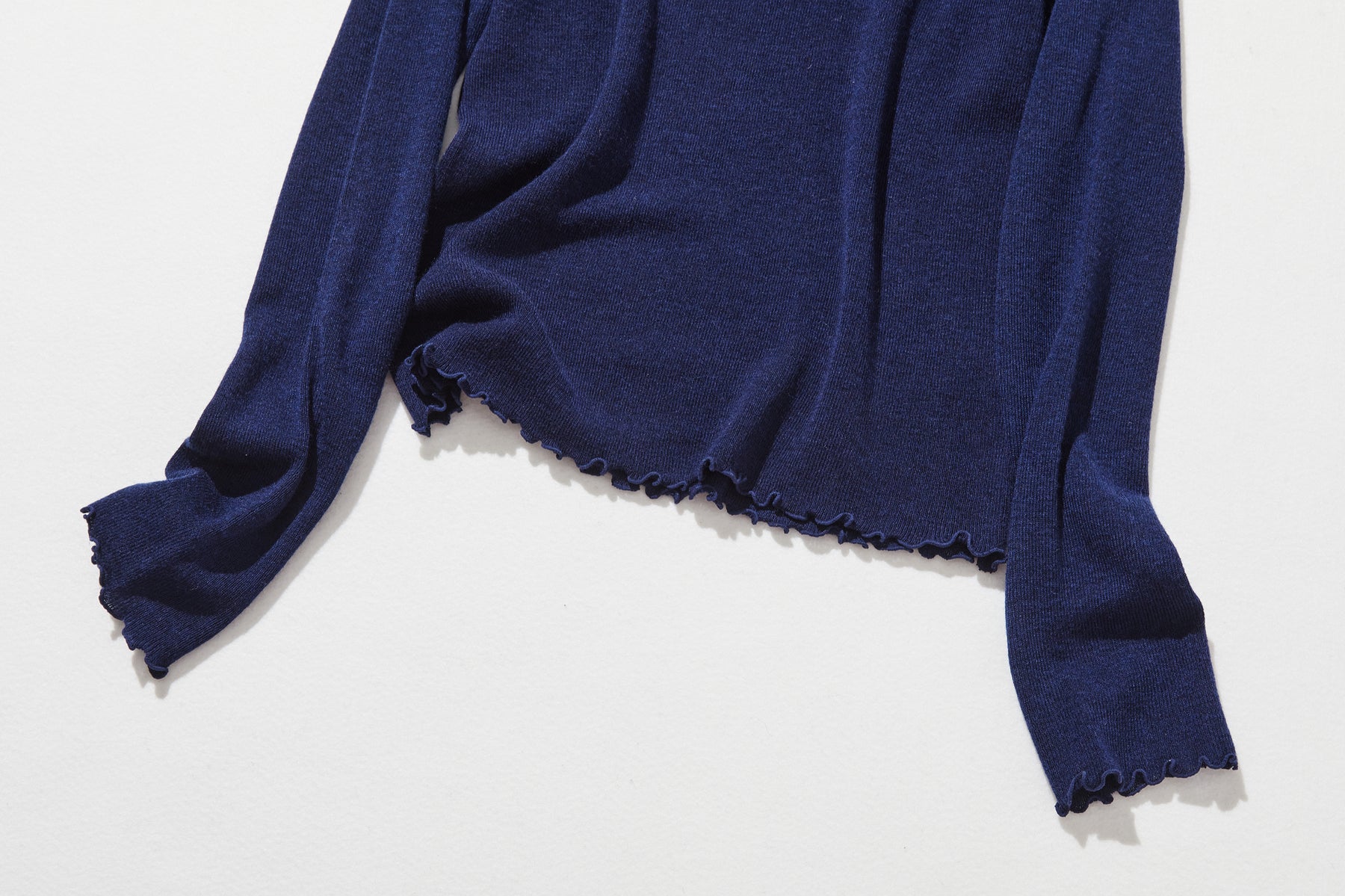 すっきり女性らしいシルエット。肌に寄り添う、軽くて暖かなハイゲージニット 251102こちらのプルオーバーは、女性らしいラインを描きながらも、きつすぎない絶妙なフィット感が魅力のリブニット。高品質なウール混糸を使用し、肌にチクチクしない、なめらかな肌触りに仕上げました。【商品の特徴】• 心地よいフィット感: 細かいリブ編みが身体に優しく寄り添い、美しいシルエットを演出します。適度な伸縮性で動きやすく、Lサイズの方まで快適にお召しいただけます。• 軽暖・快適素材: あたたかみのあるウール混糸を使用。軽くてやや薄手のため、季節を問わず活躍します。• こだわりのディテール: やや開きの広いクルーネックで首元をすっきり見せ、袖口と裾には可愛らしいピコデザインをあしらいました。【こんな方におすすめです】• すっきりと体にフィットするシルエットがお好きな方• チクチクせず、軽くて動きやすいニットをお探しの方• インナーにもメインにもなる、汎用性の高いアイテムが欲しい方◎ スタイリングアドバイス• シンプルに… ベーシックなデニムやスラックスに合わせて、すっきりカジュアルに。クルーネックが差し色のネックレスを引き立てます。• レイヤードに… シャツやブラウスの上から着れば、襟元と袖口から覗くピコデザインがアクセントに。オフィスカジュアルにもおすすめです。• アウターのインナーに… ジャケットやコートの下にすっきり収まるので、冬の定番インナーとして重宝します。リバーシブルコートと合わせれば、表裏で雰囲気が変えられてより便利です。素材:ウール32.8%ポリエステル43.6%アクリル23.6%サイズ:身丈60cm肩幅38cm袖丈64cm首回り56cmバスト80〜100cm(伸縮性あり)裾80〜100cm透け感:なし裏地:なしポケット:なし伸縮性:あり光沢感:なしシーズン:春、秋、冬